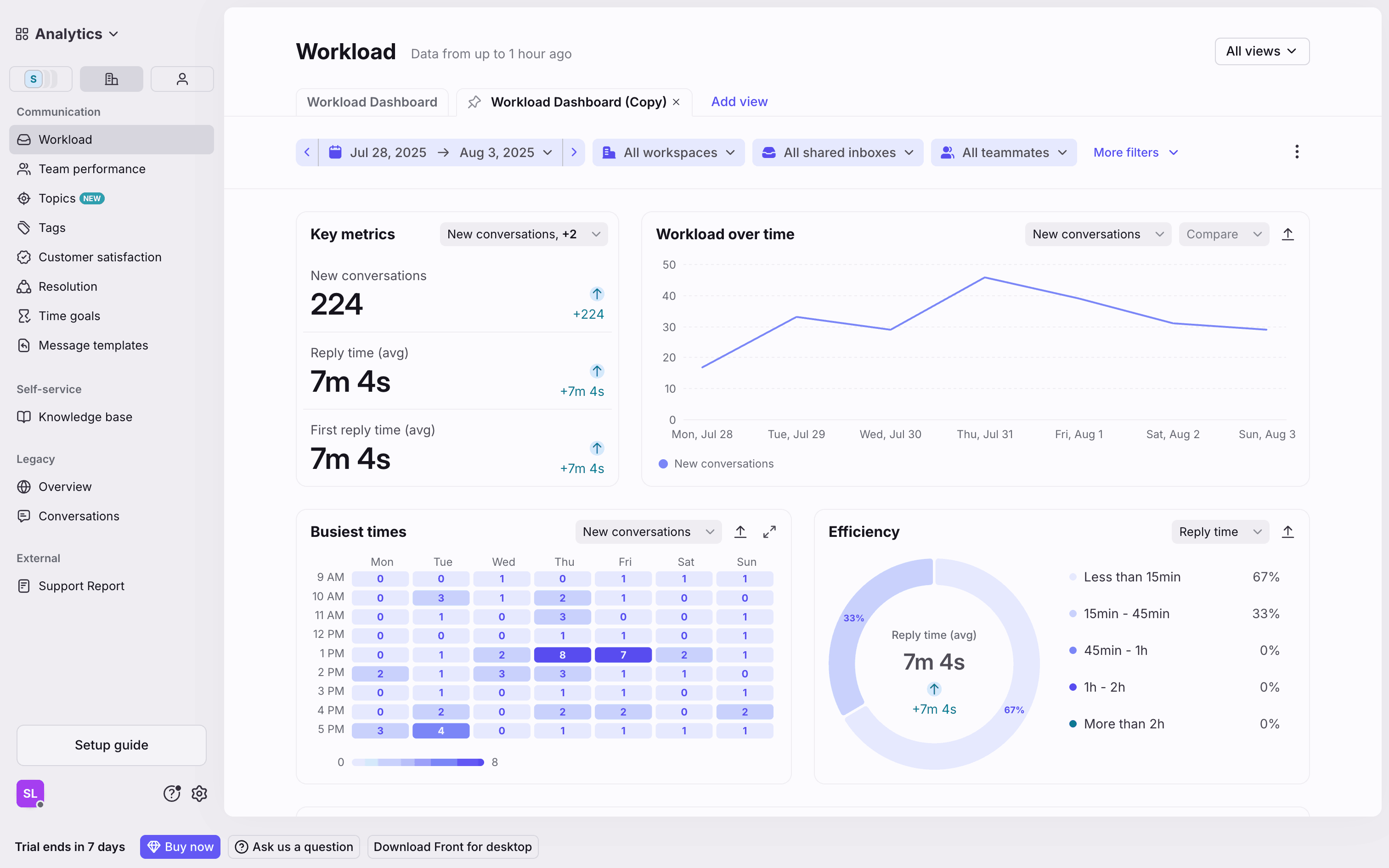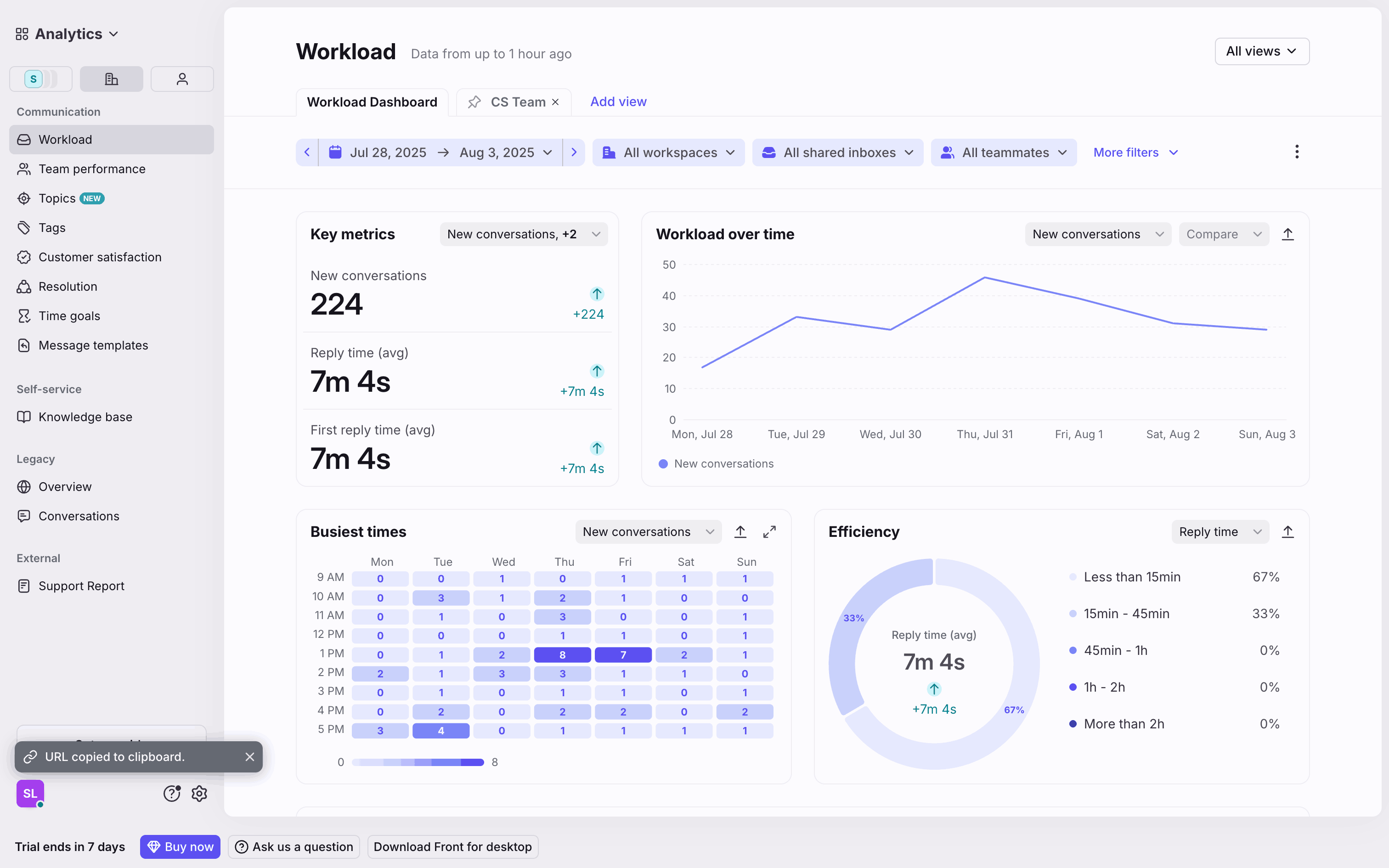 The user copies the URL of the workload dashboard. A confirmation message appears after the URL is copied.