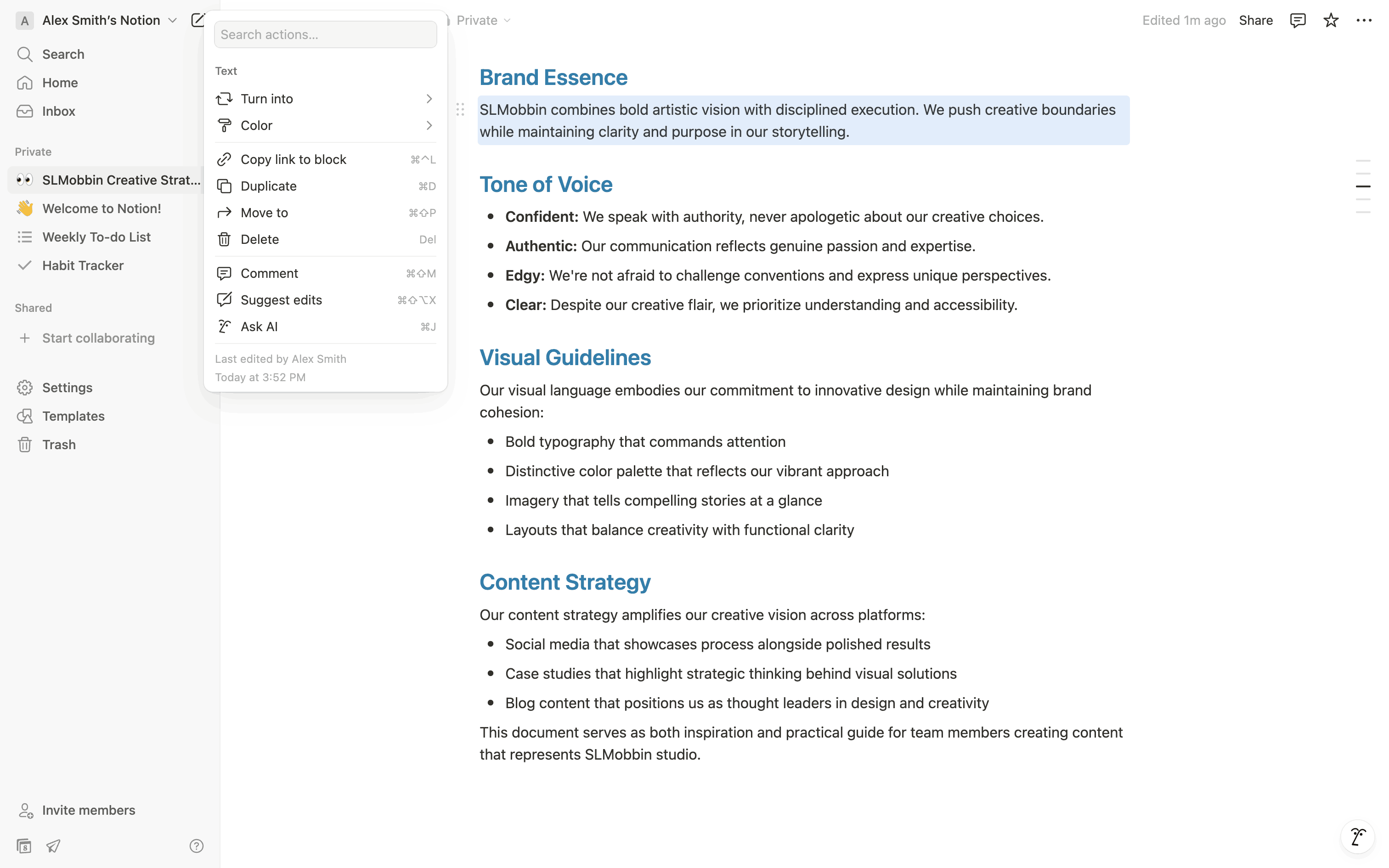 The user duplicates a block of text within a document. A context menu is used to trigger the duplication.