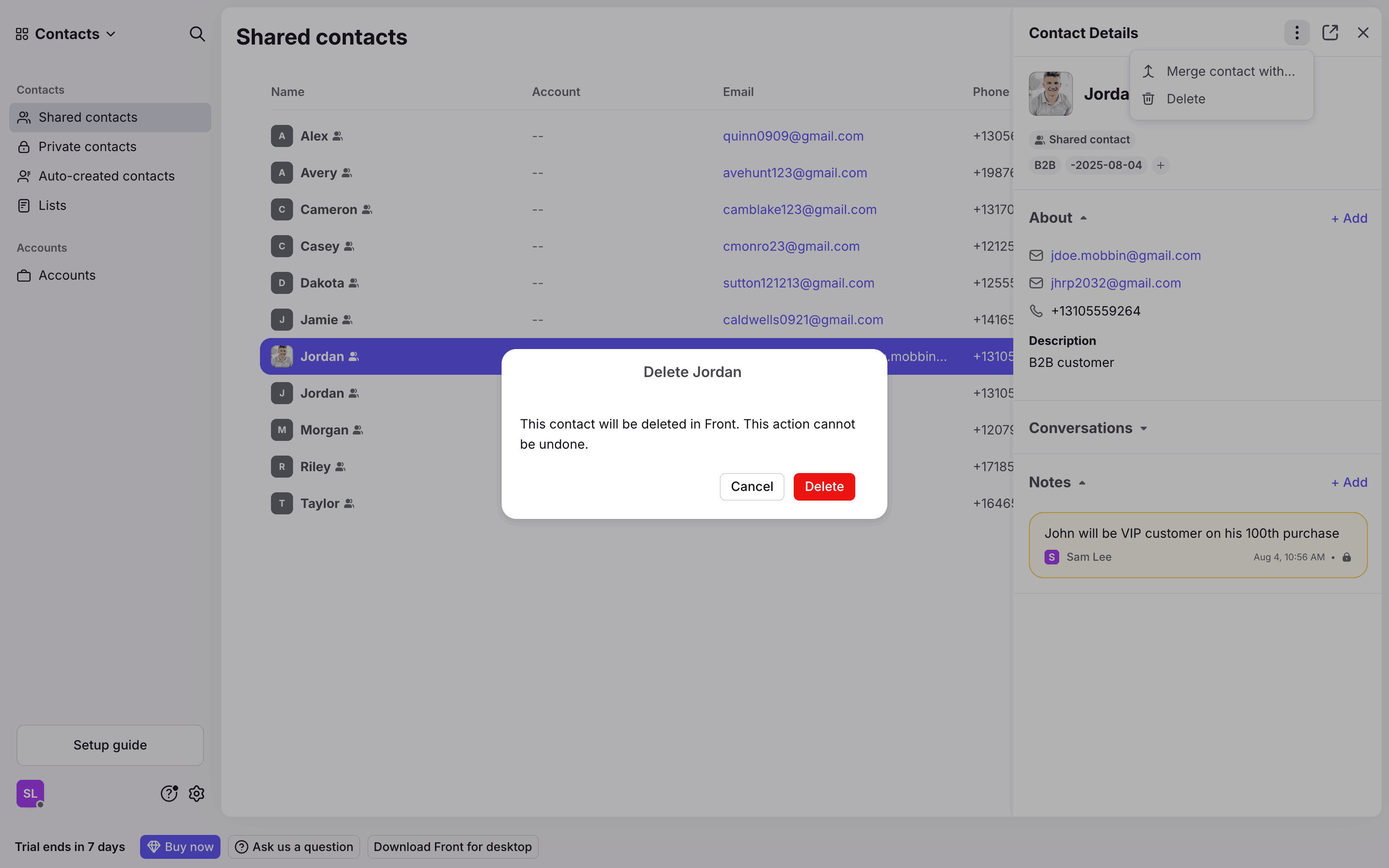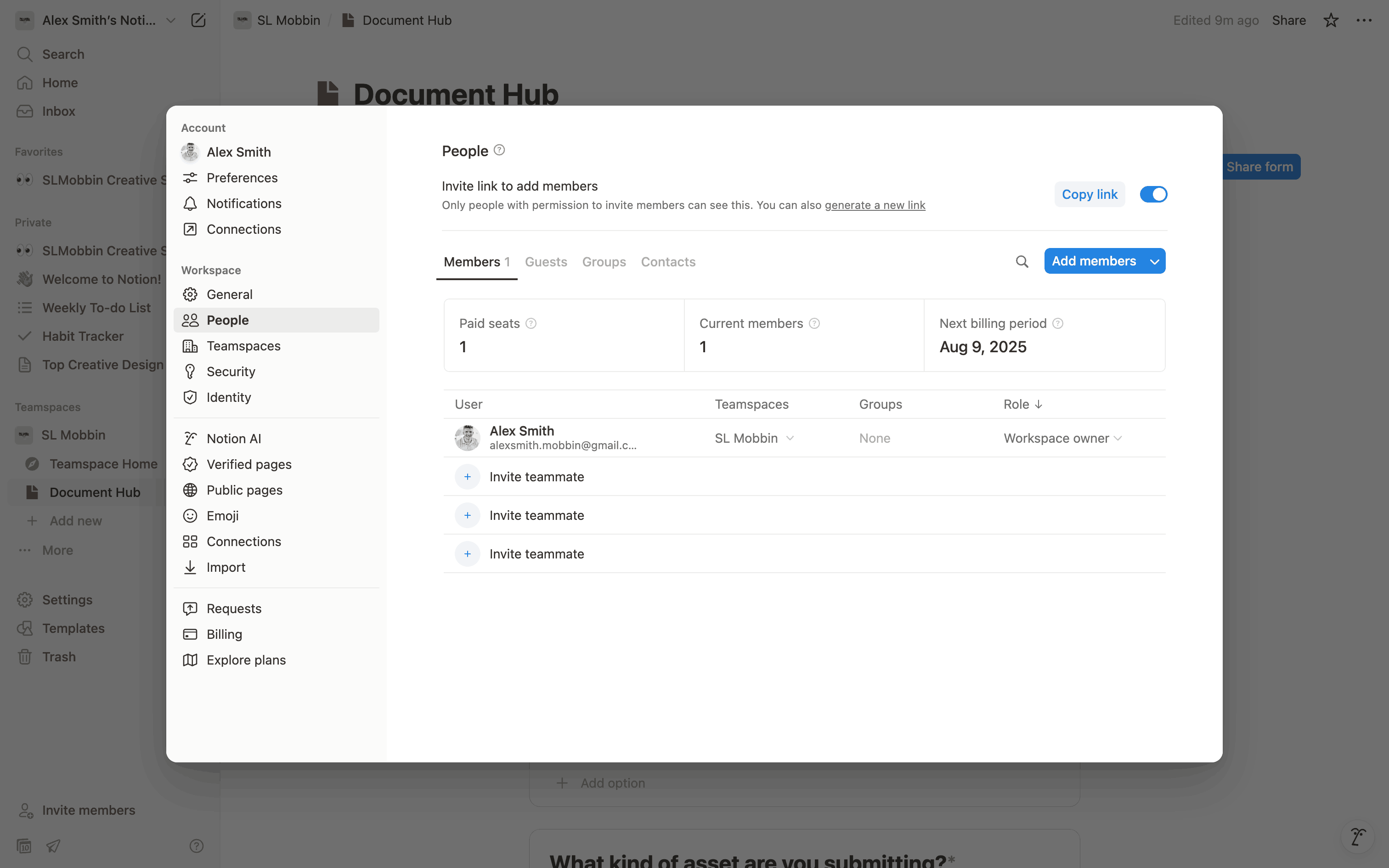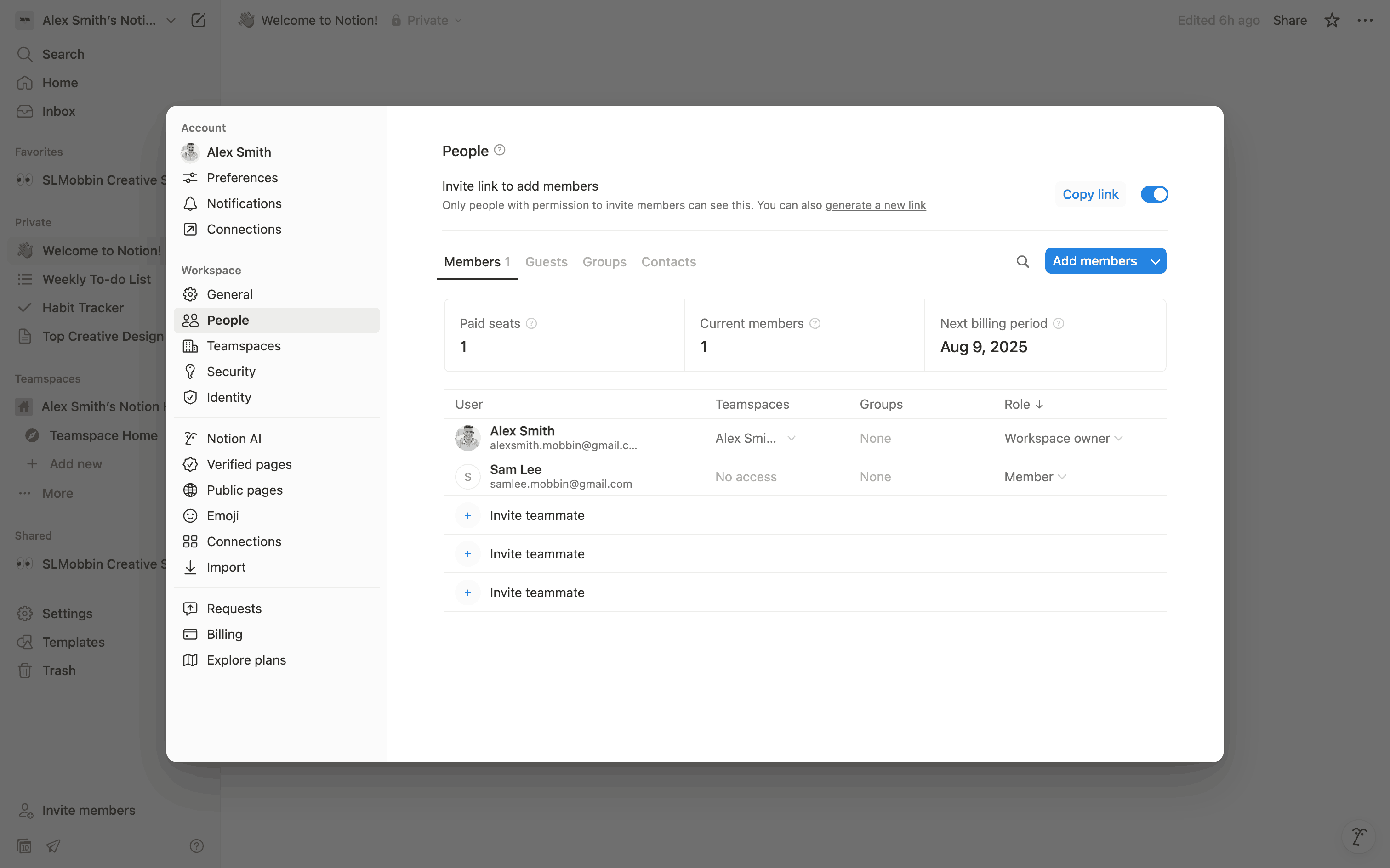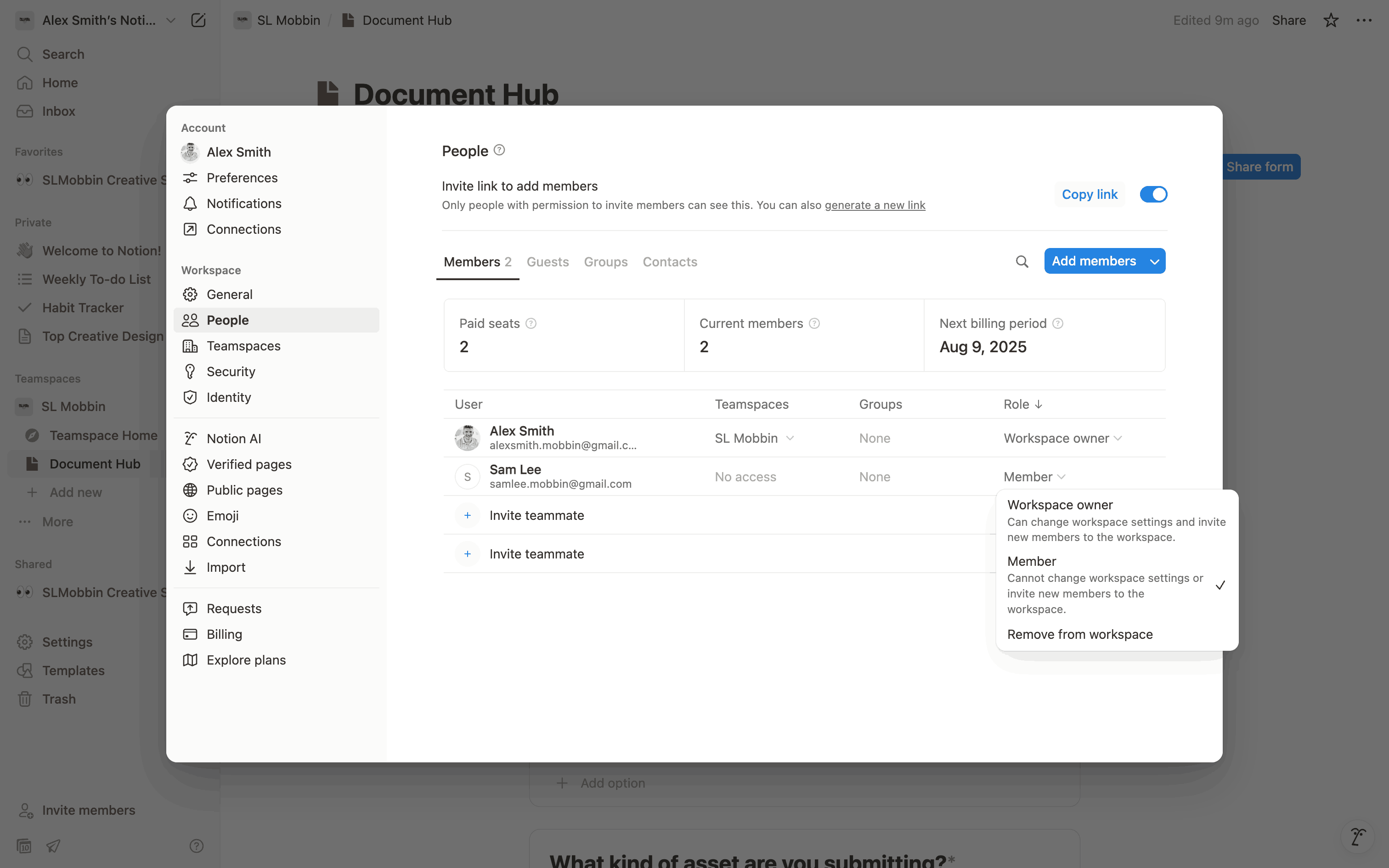 The user removes a member from the team. This involves selecting the remove option and confirming the action in a dialog.