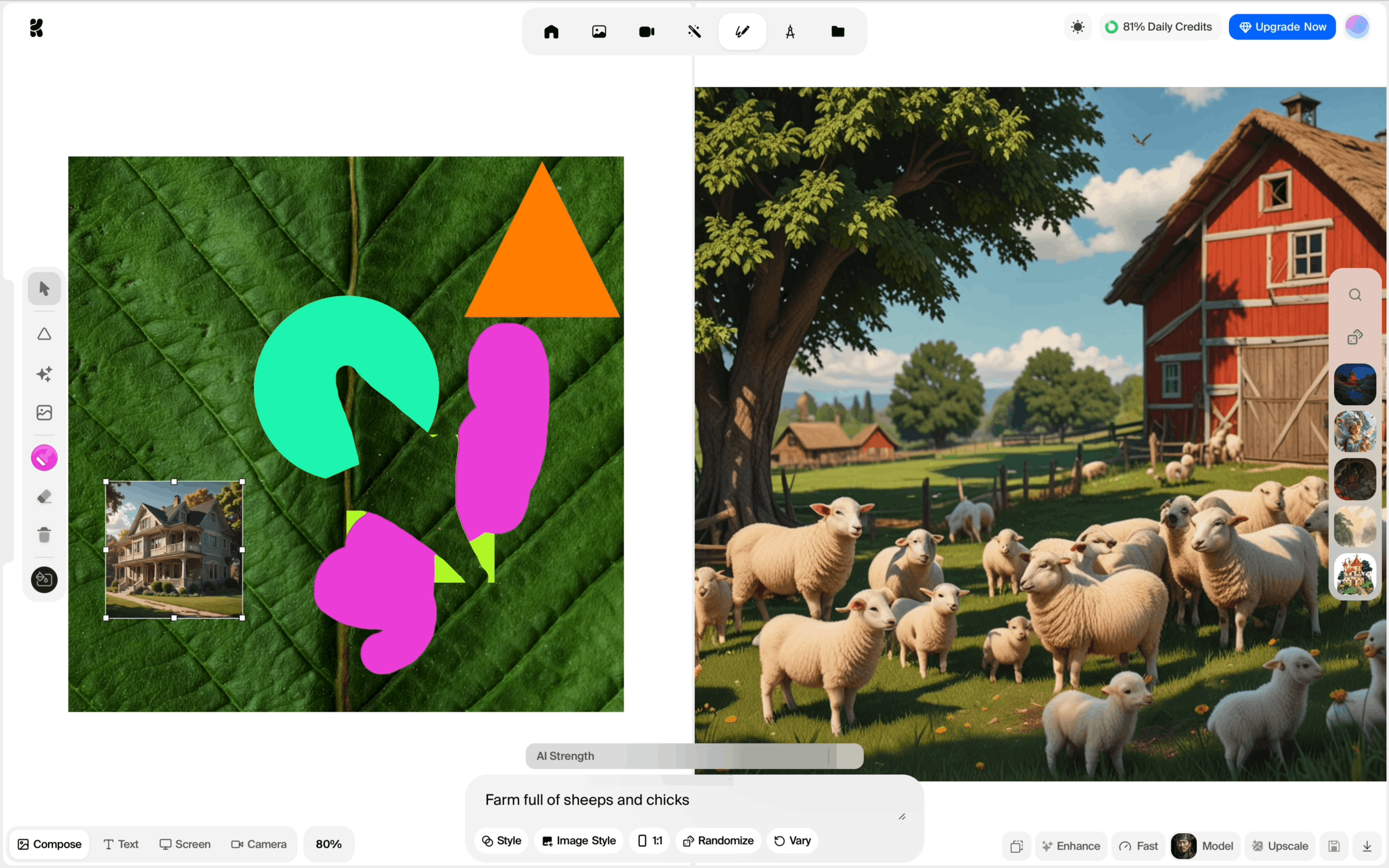 The user selects an image on the canvas and then proceeds to delete it. The canvas then updates to reflect the change.