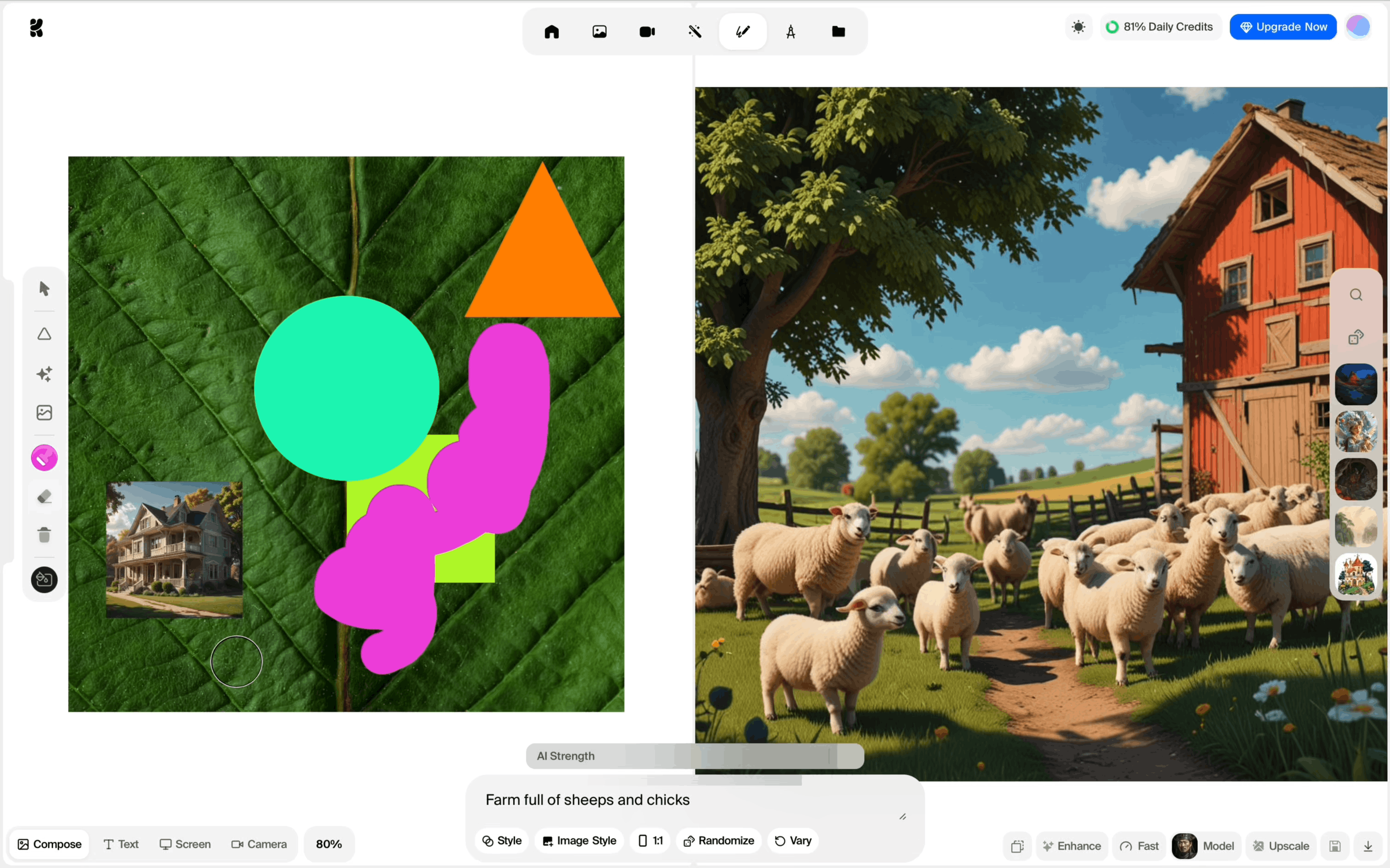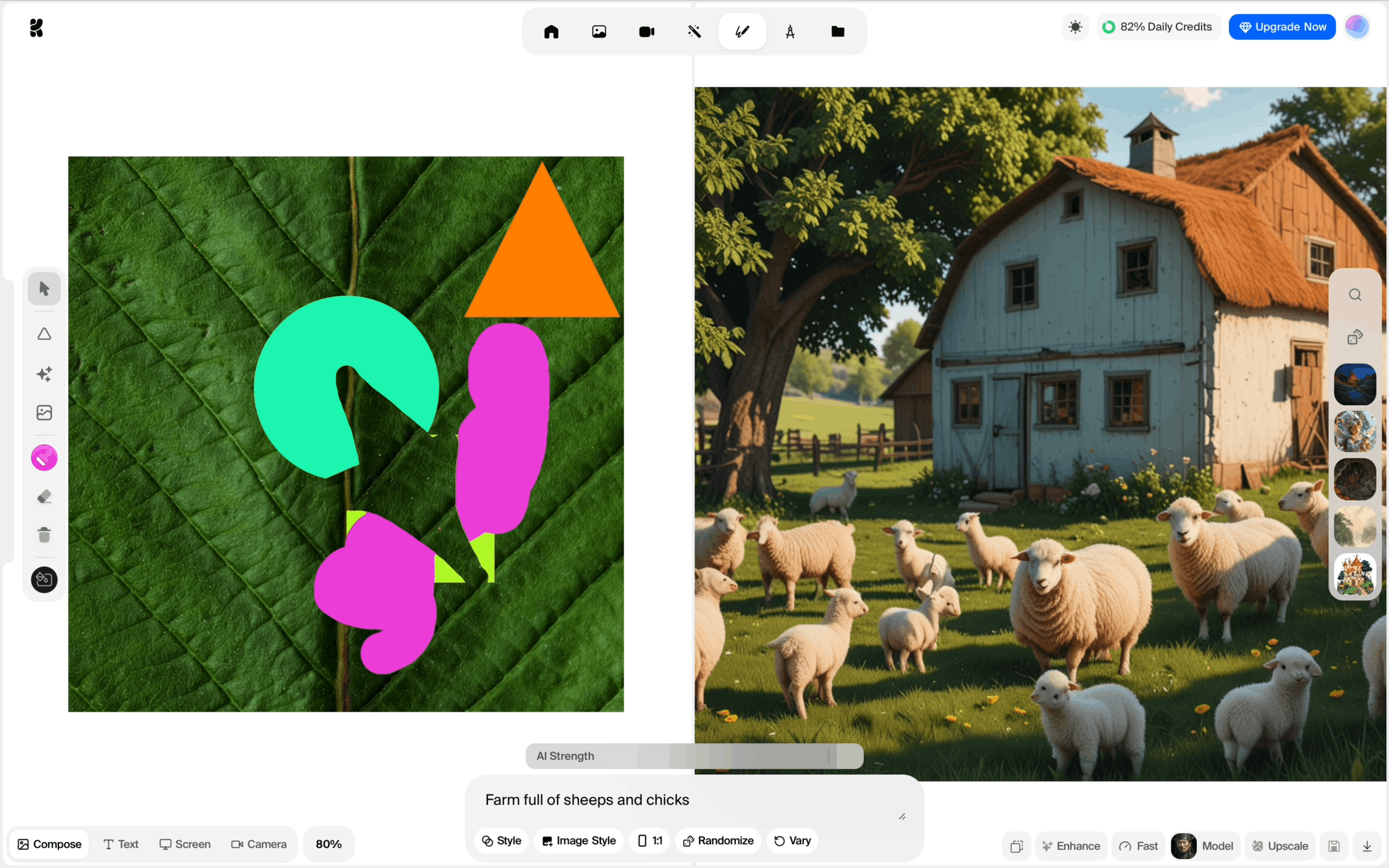 The user interacts with a canvas by erasing part of a shape. This demonstrates an image editing action.