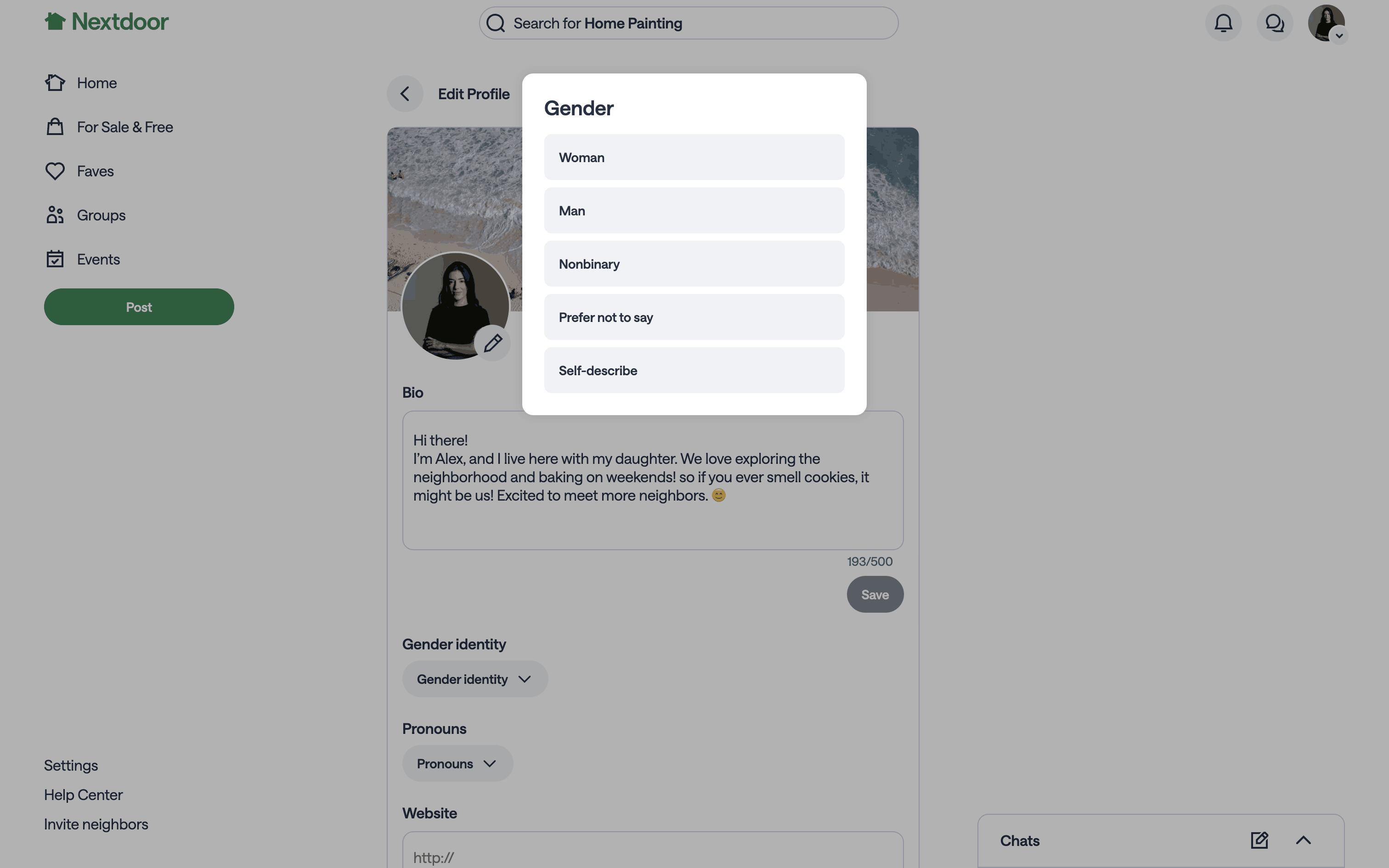 The user edits their profile to update their gender identity and pronouns. They then choose to display the selected pronouns on their profile.