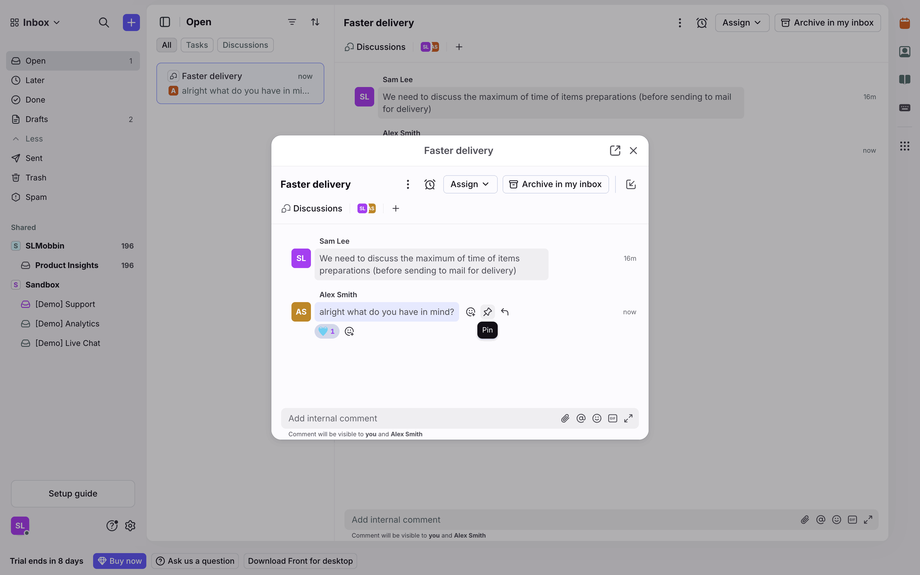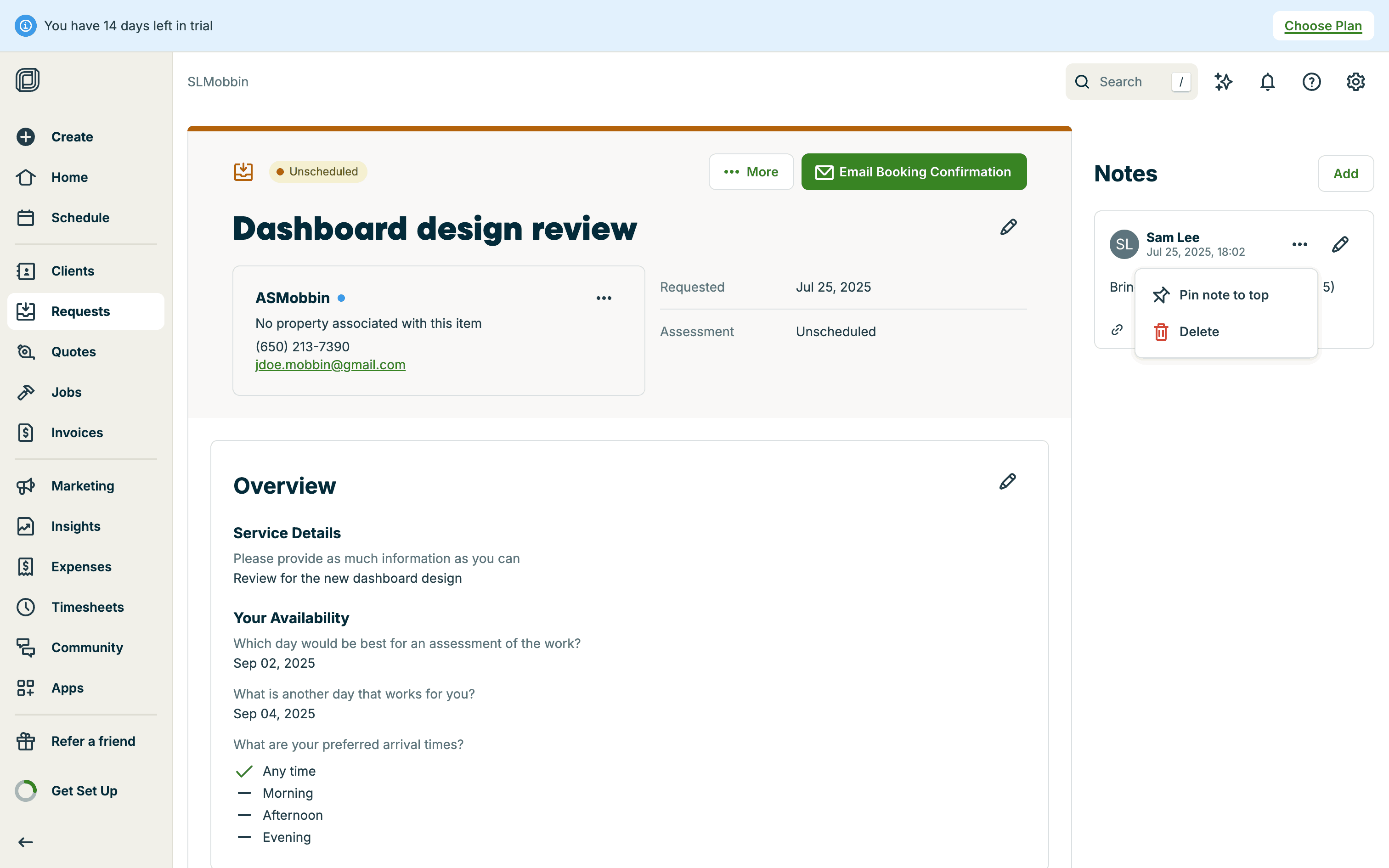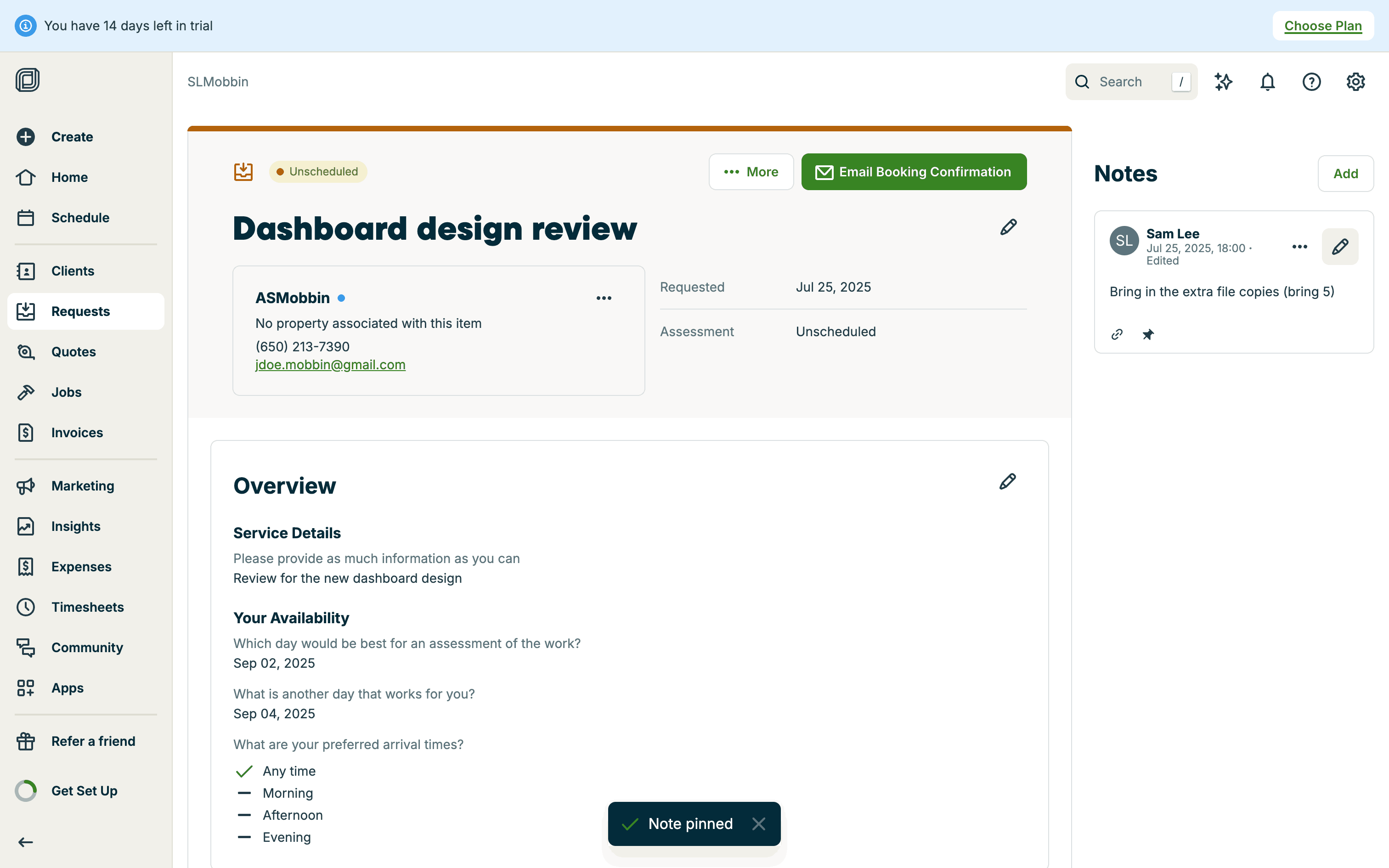 The user pins a note to the top. They select the pin option and the note is marked as pinned.