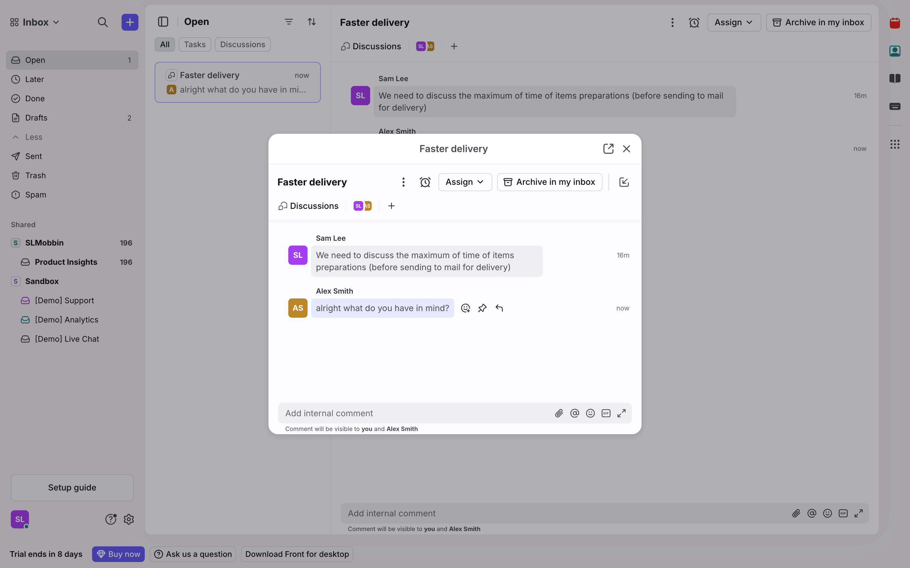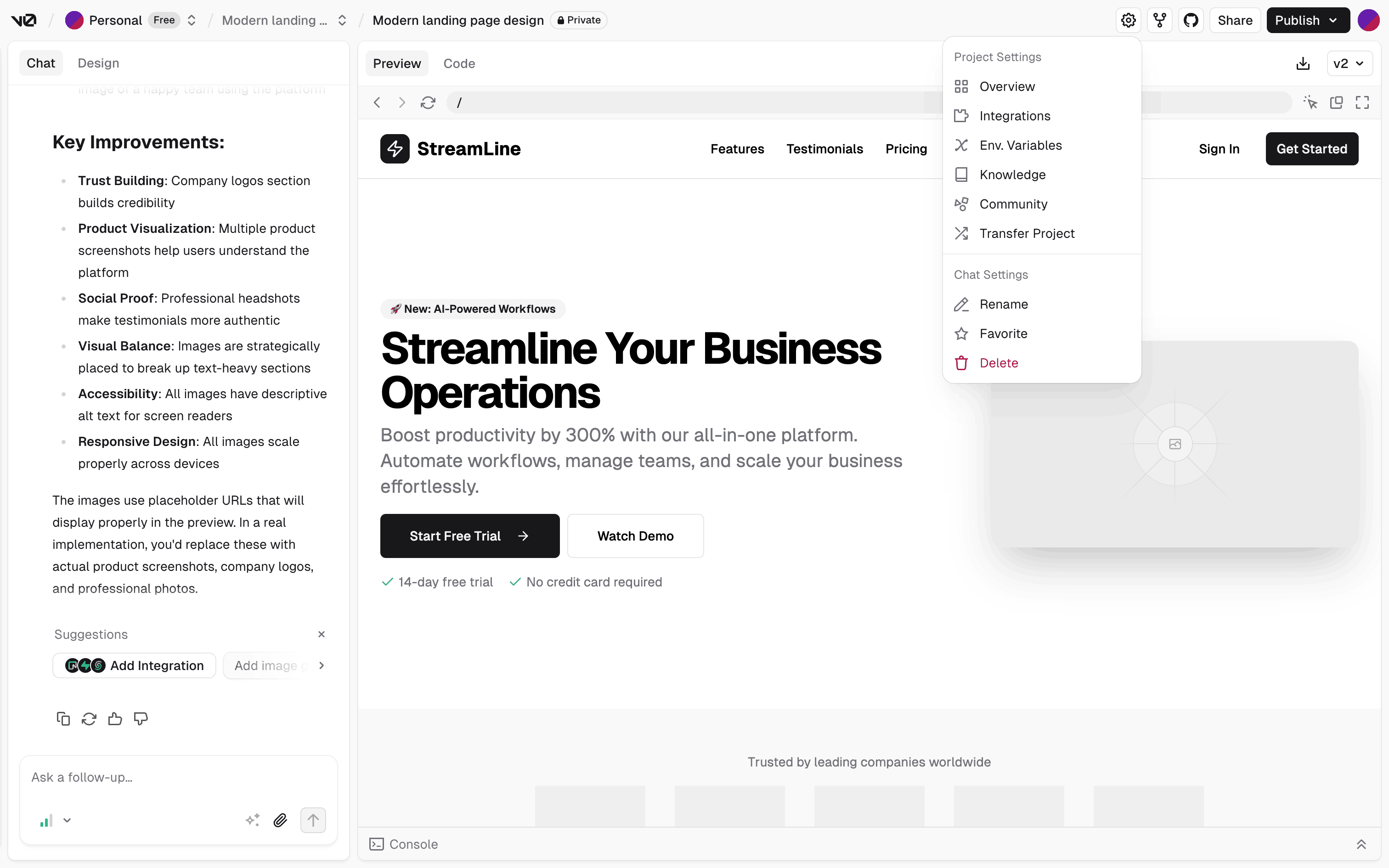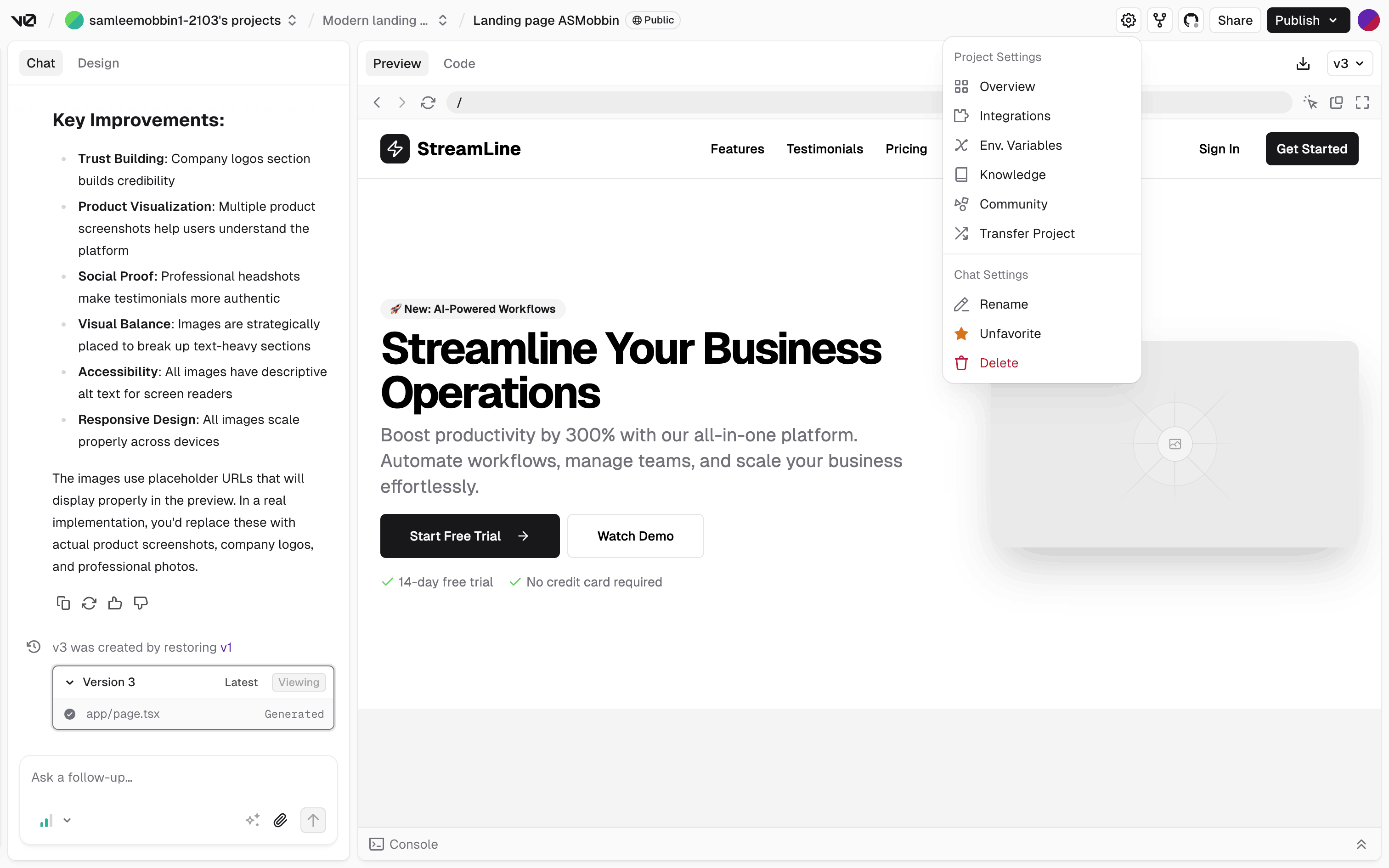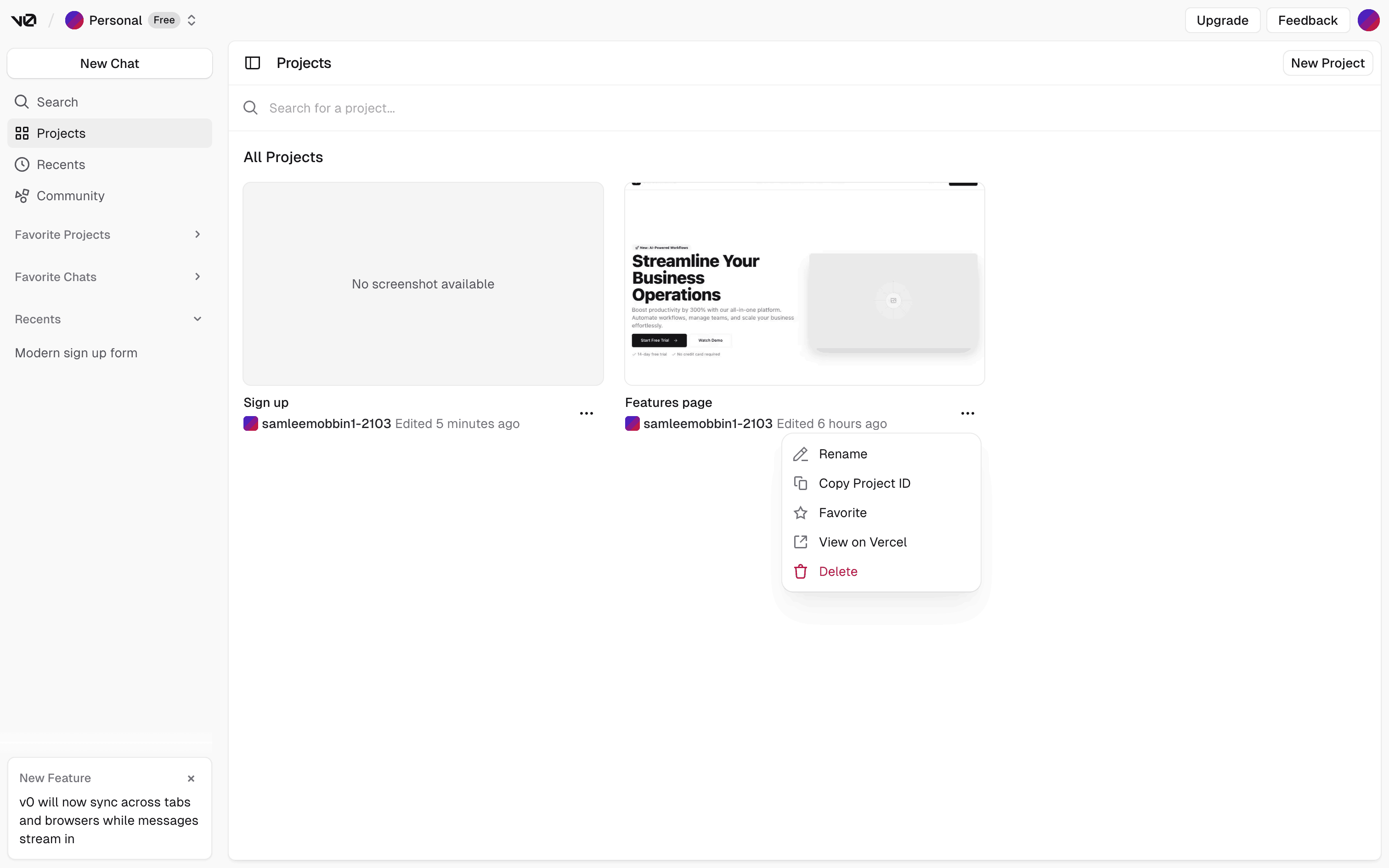 The user opens a dropdown menu and favorites a chat. The menu updates to show the option to unfavorite the chat.