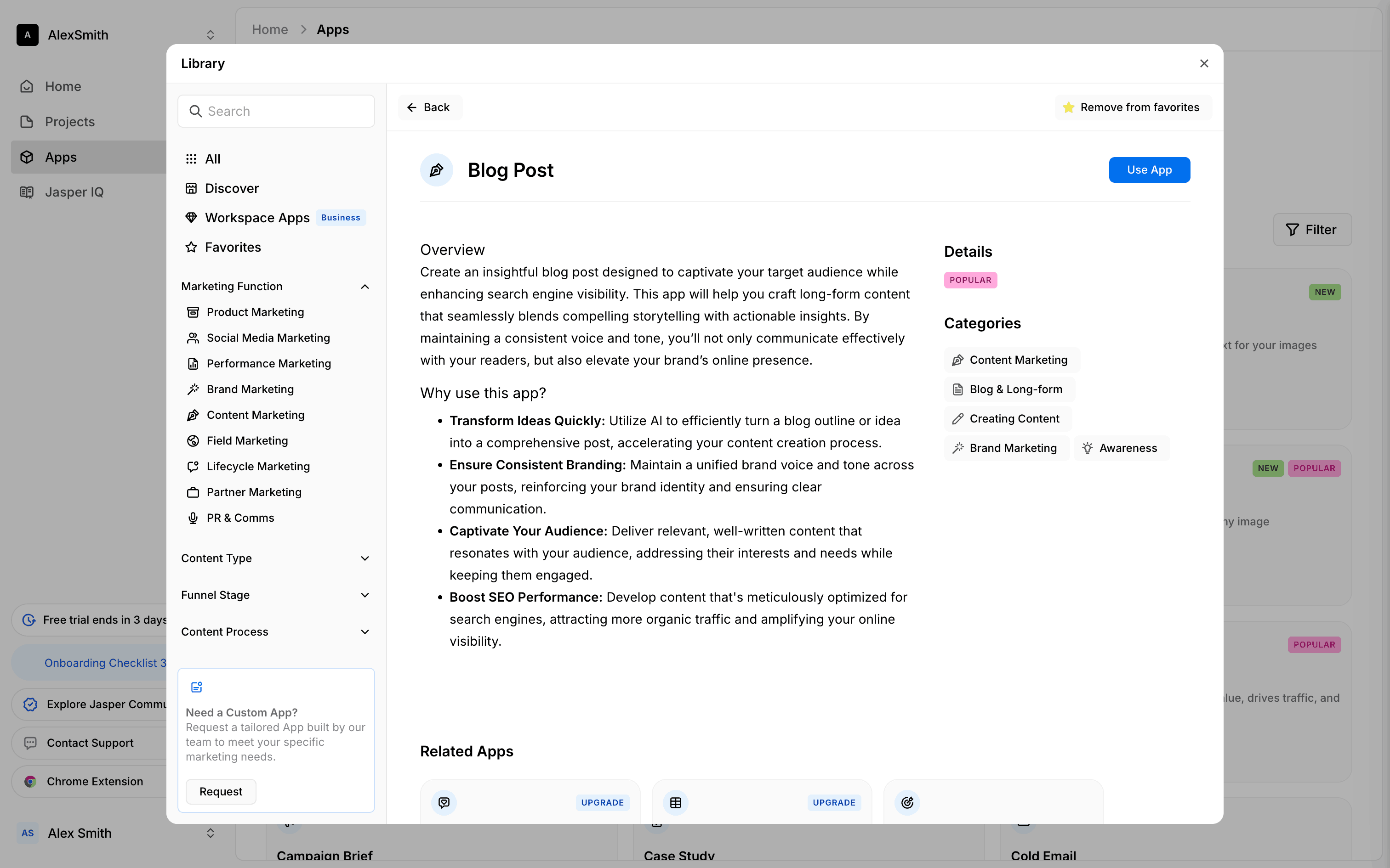 The user views an app's details and then favorites it. The "Add to favorites" button changes to "Remove from favorites" to reflect the action.