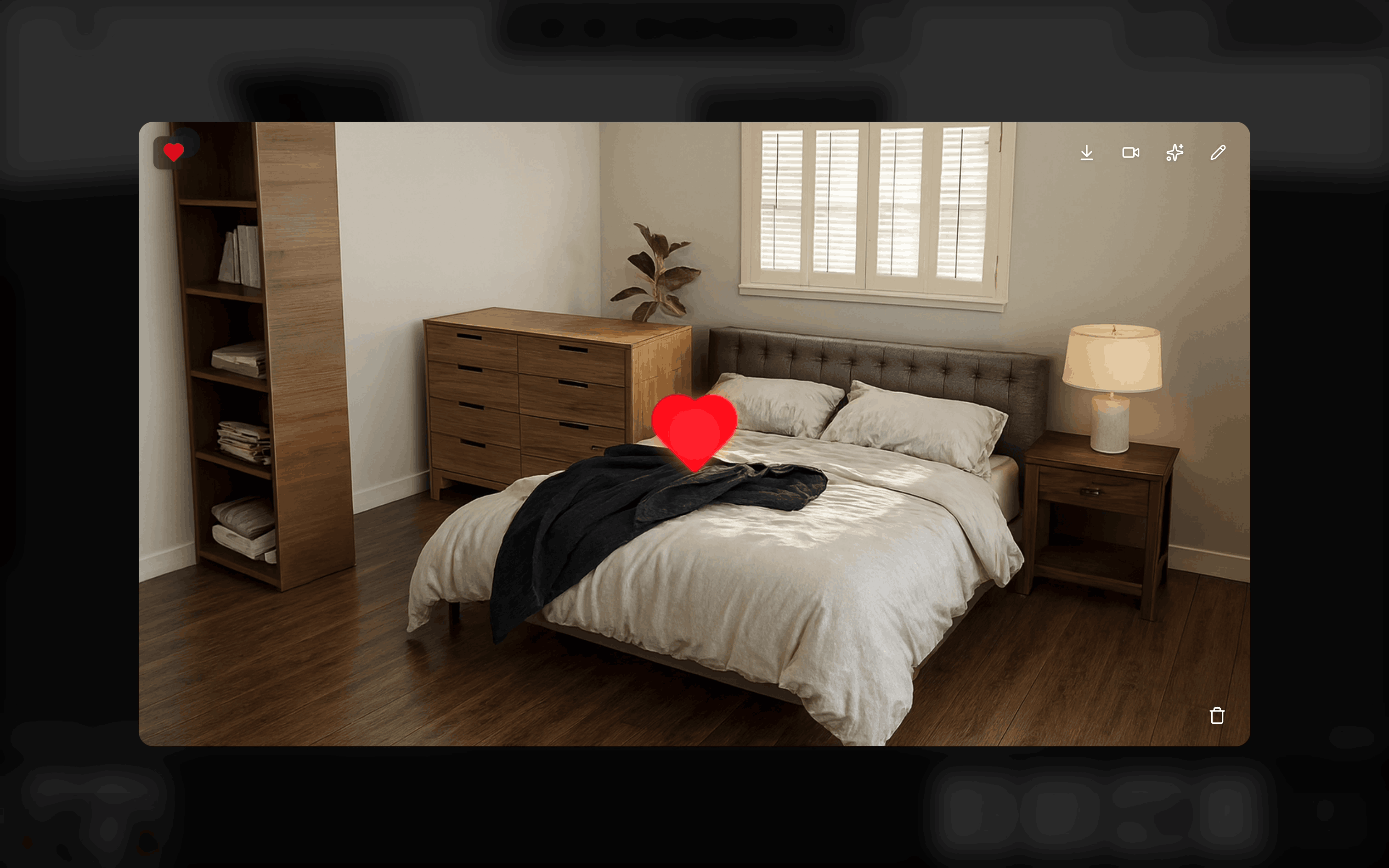 The user views an image and then likes it. The like action is confirmed with a heart animation and a change to the like button.