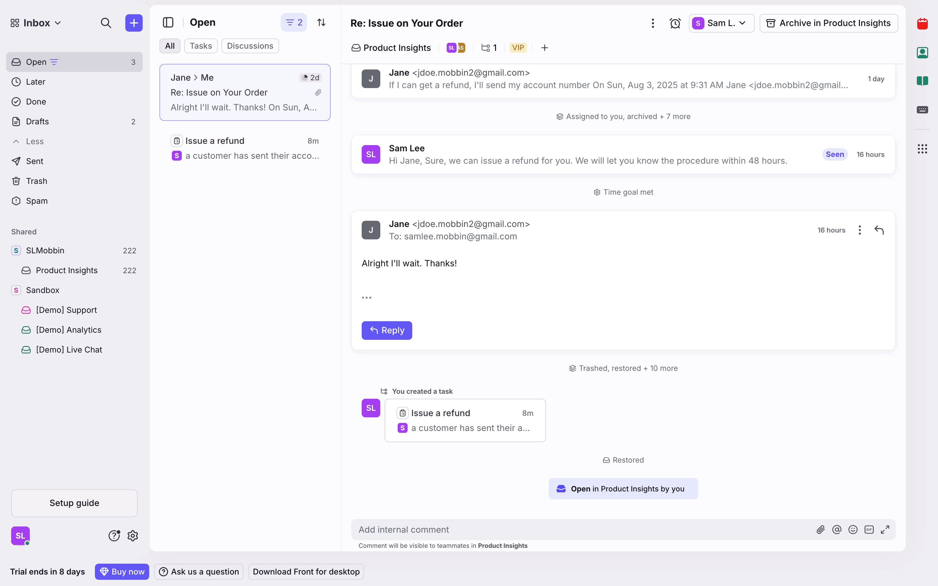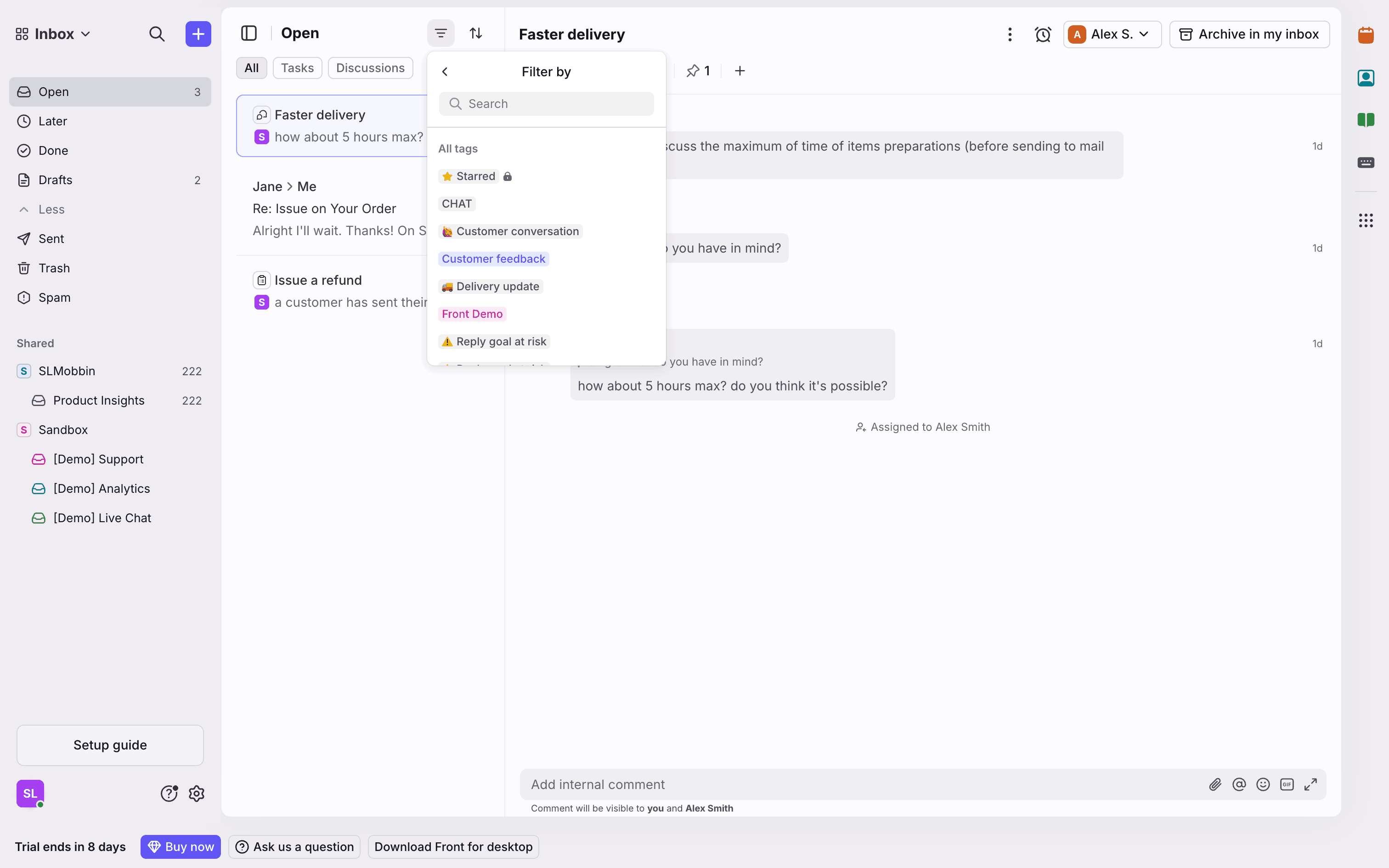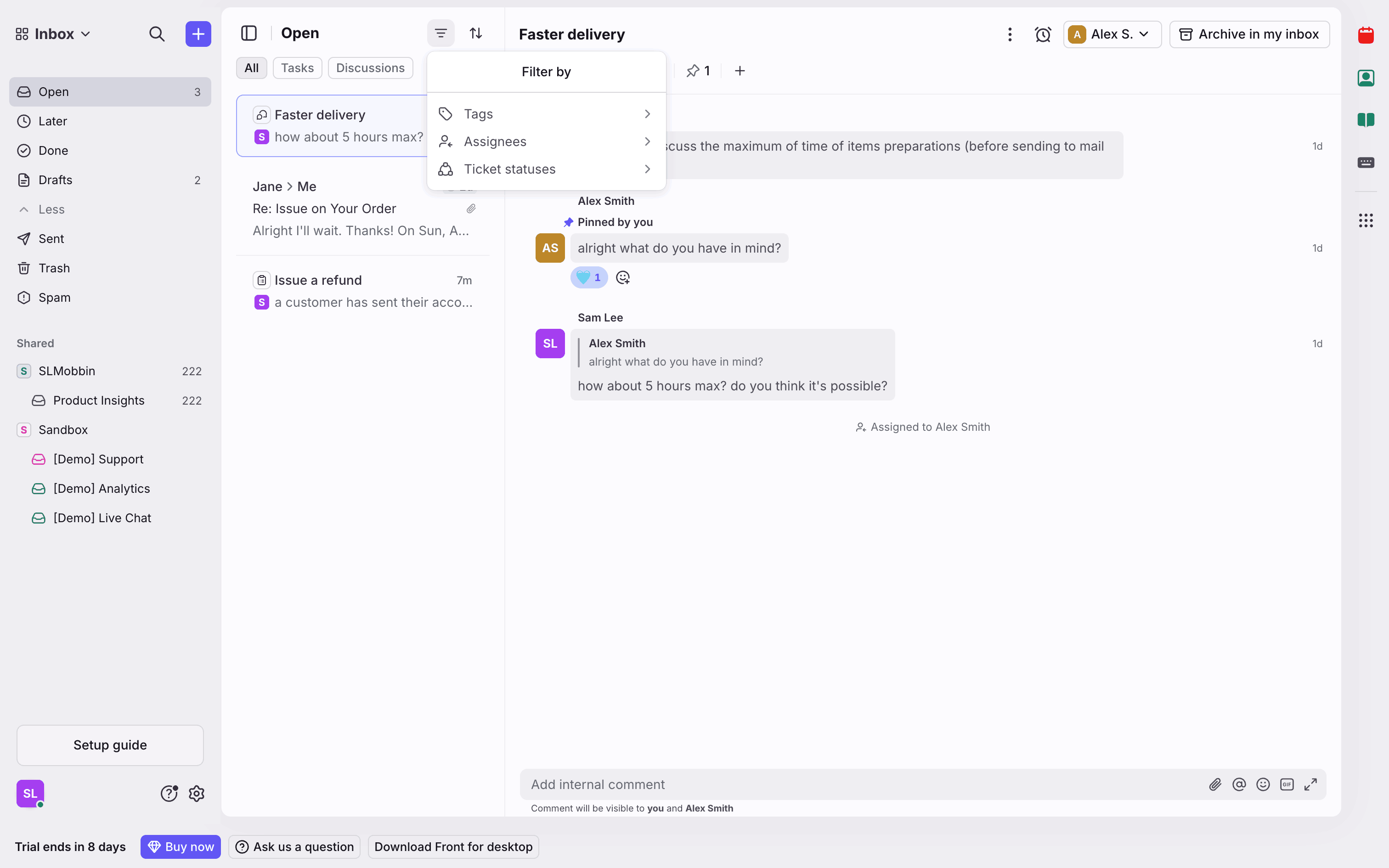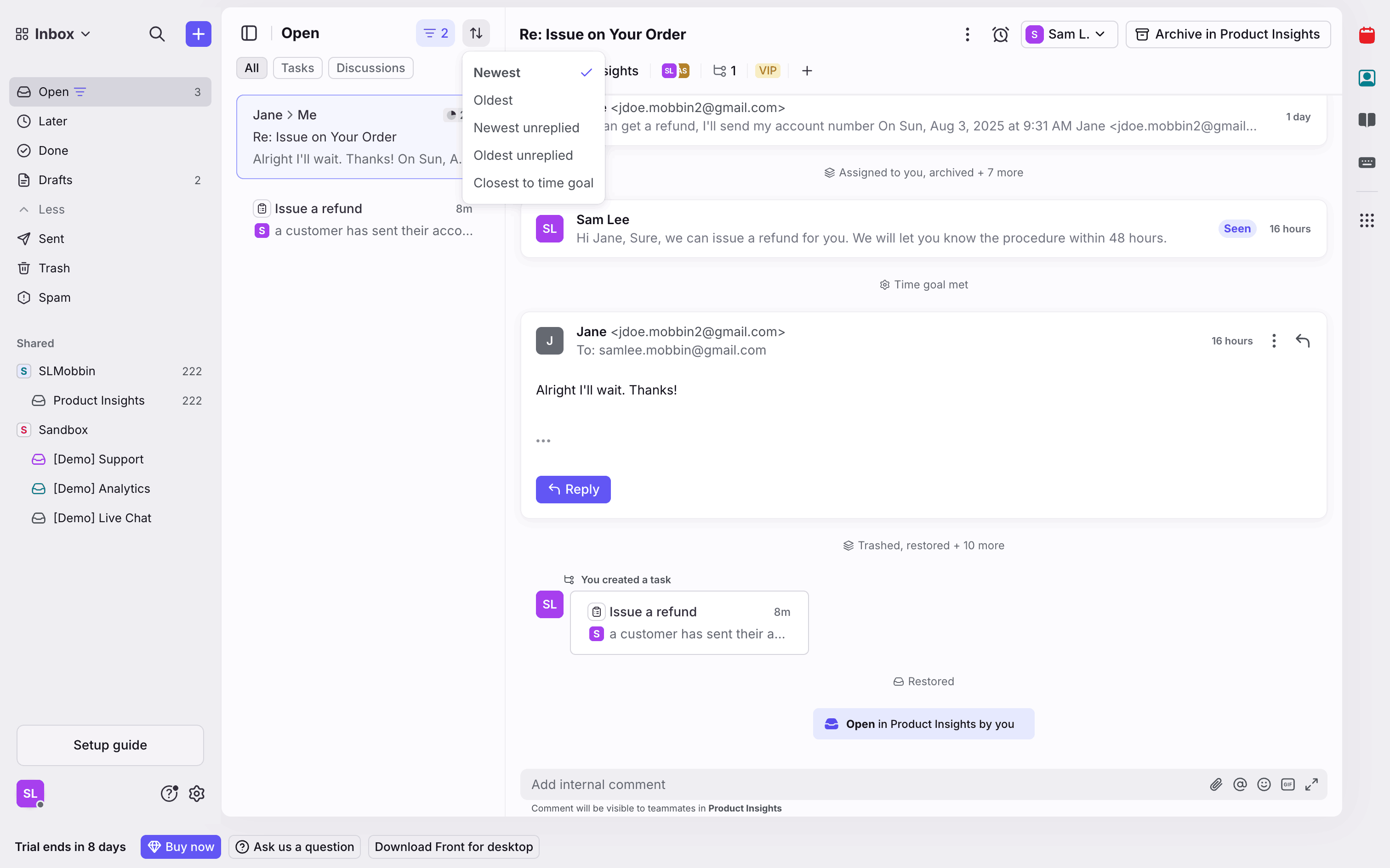 The user filters and sorts their inbox. They apply a filter that results in no conversations being displayed.