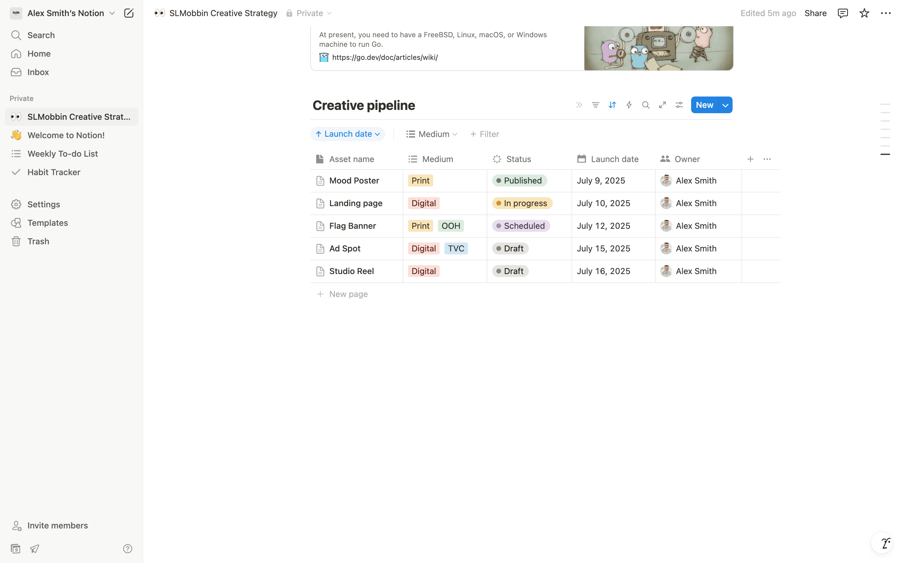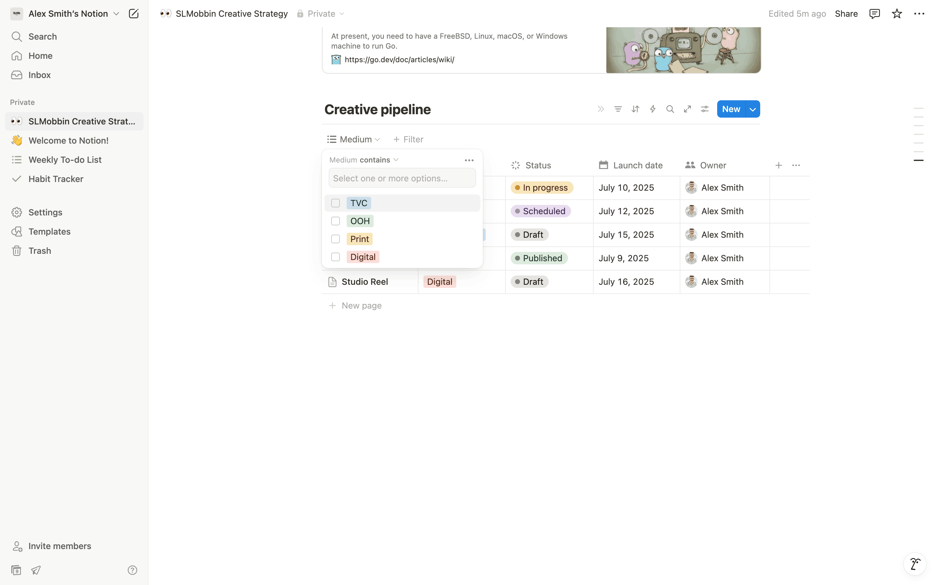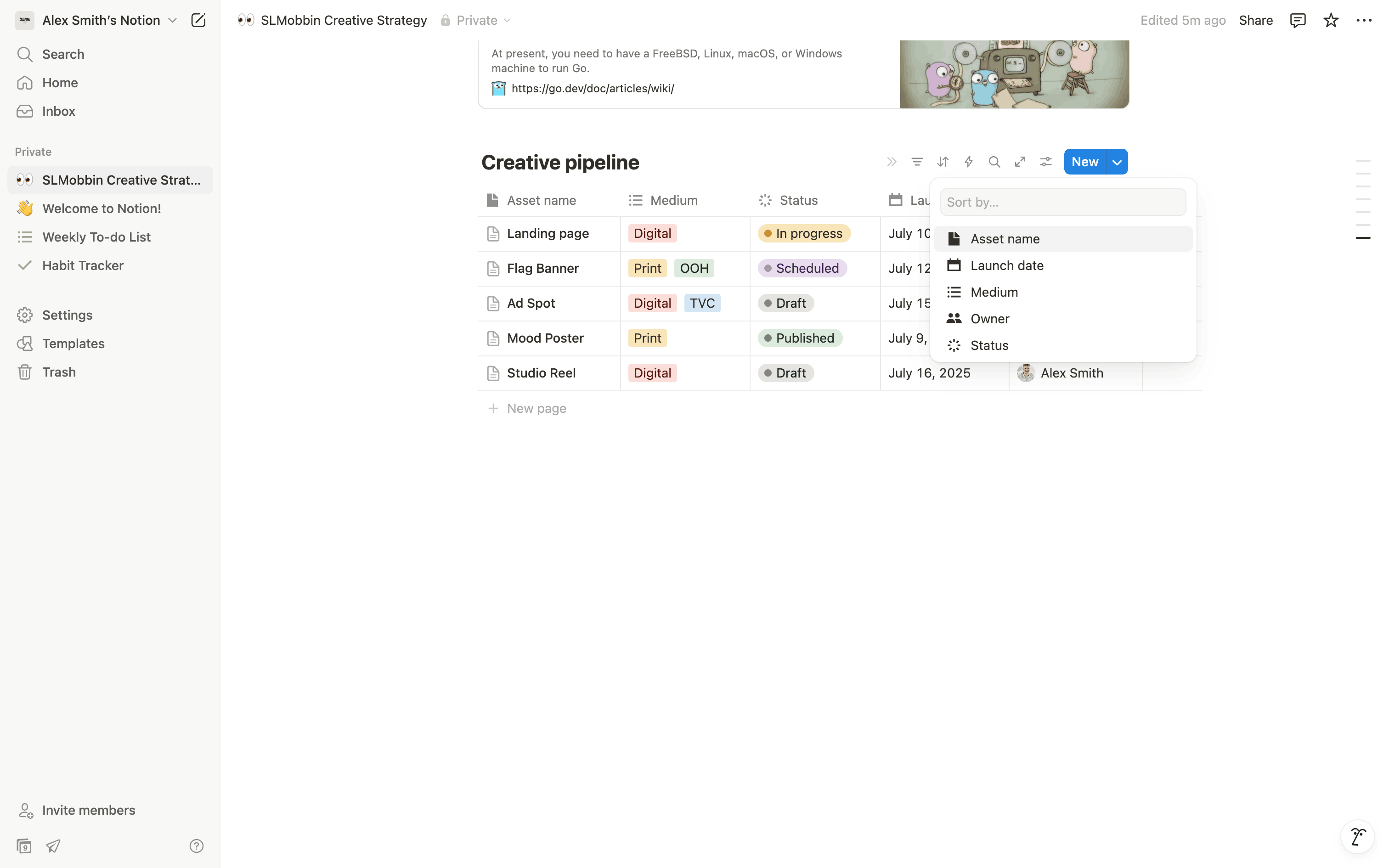 The user filters a table by medium, removes the filter, and then sorts the table by launch date. The flow demonstrates filtering and sorting functionalities.