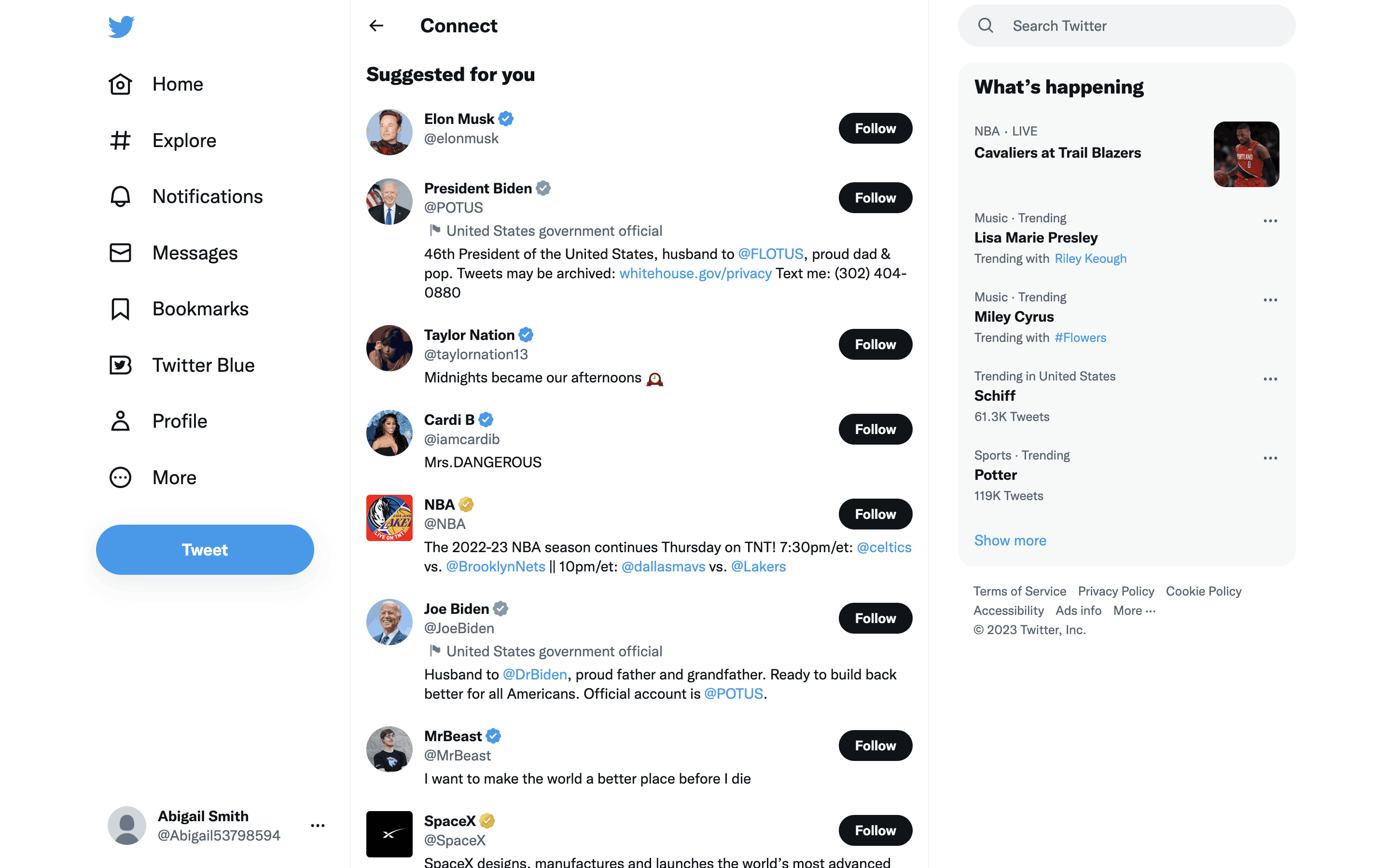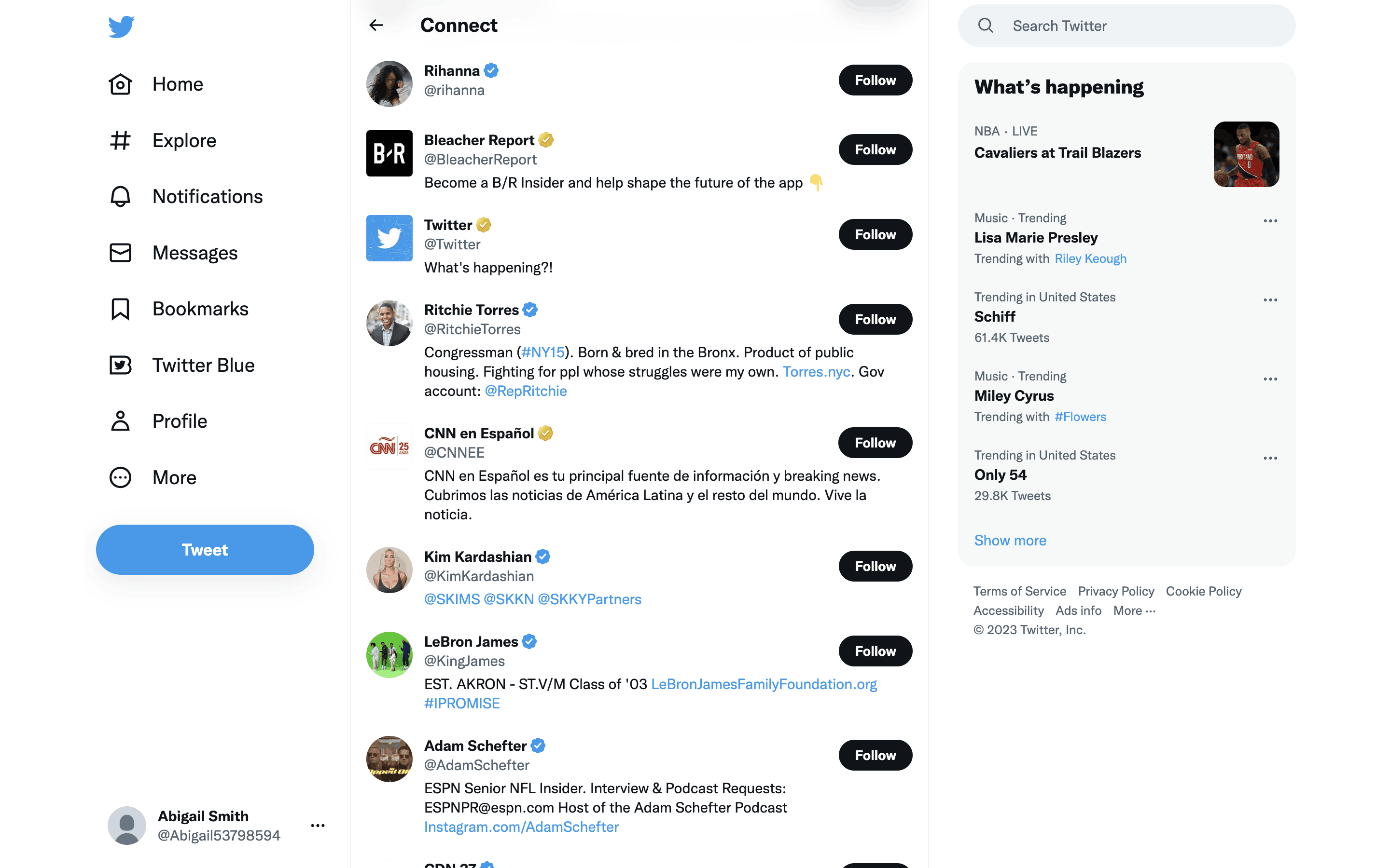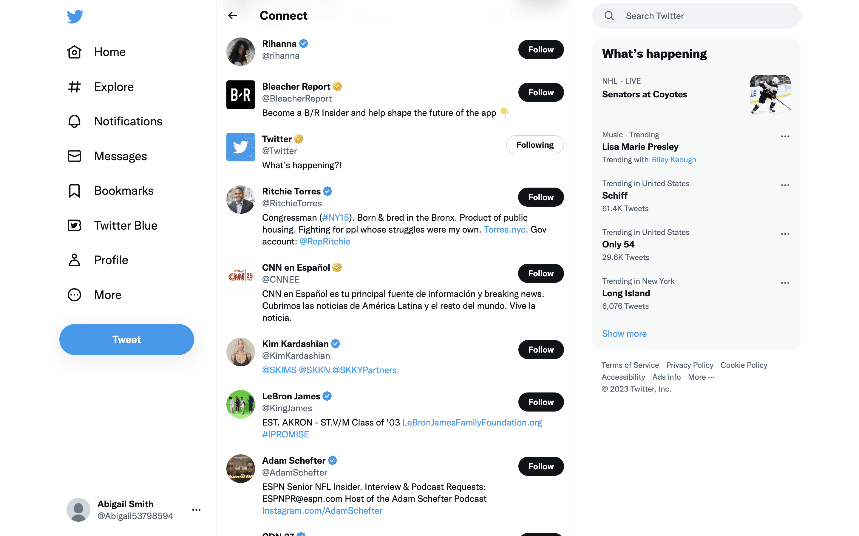 The user views a profile and then follows that user. The follow button changes to unfollow to indicate the change.