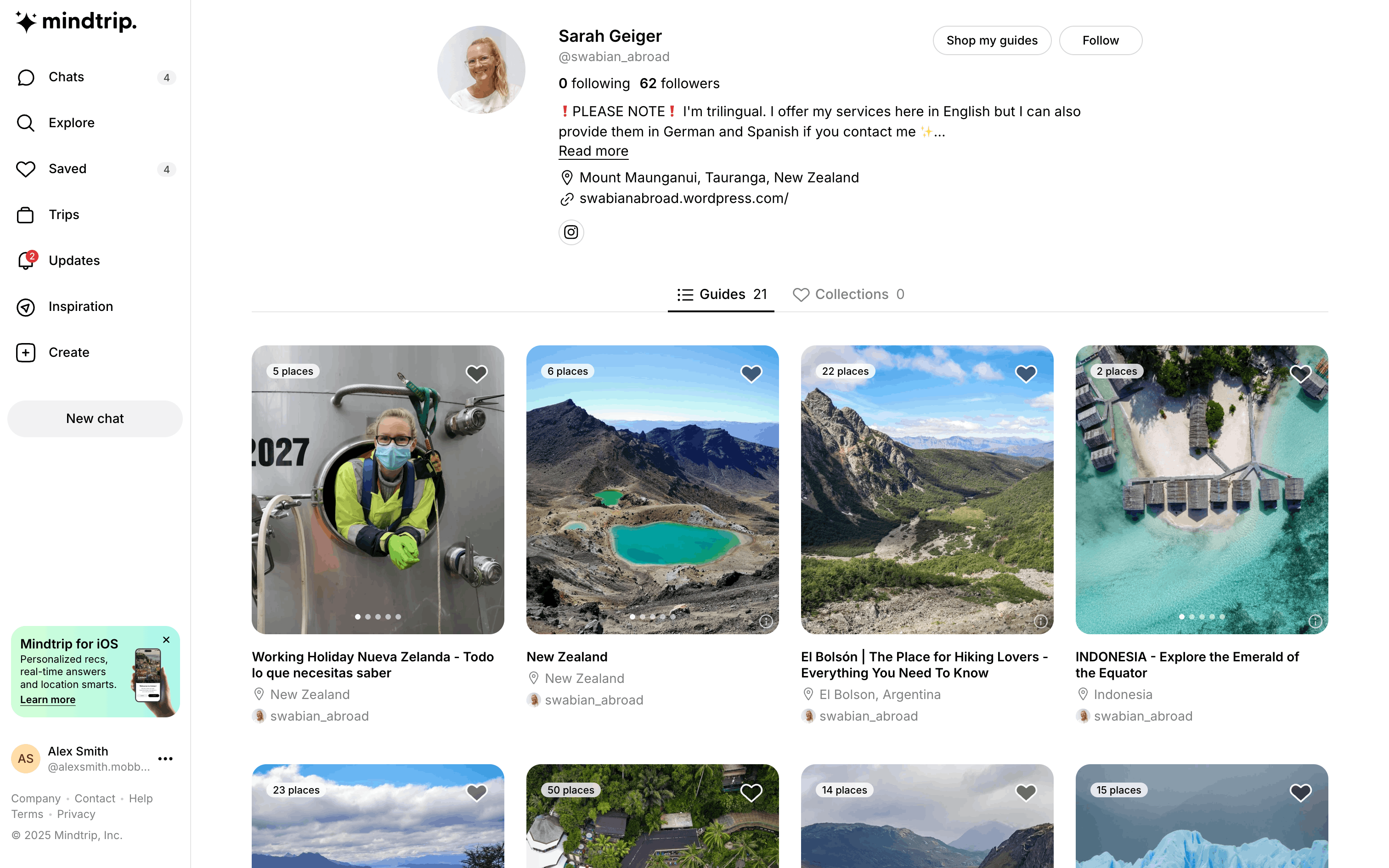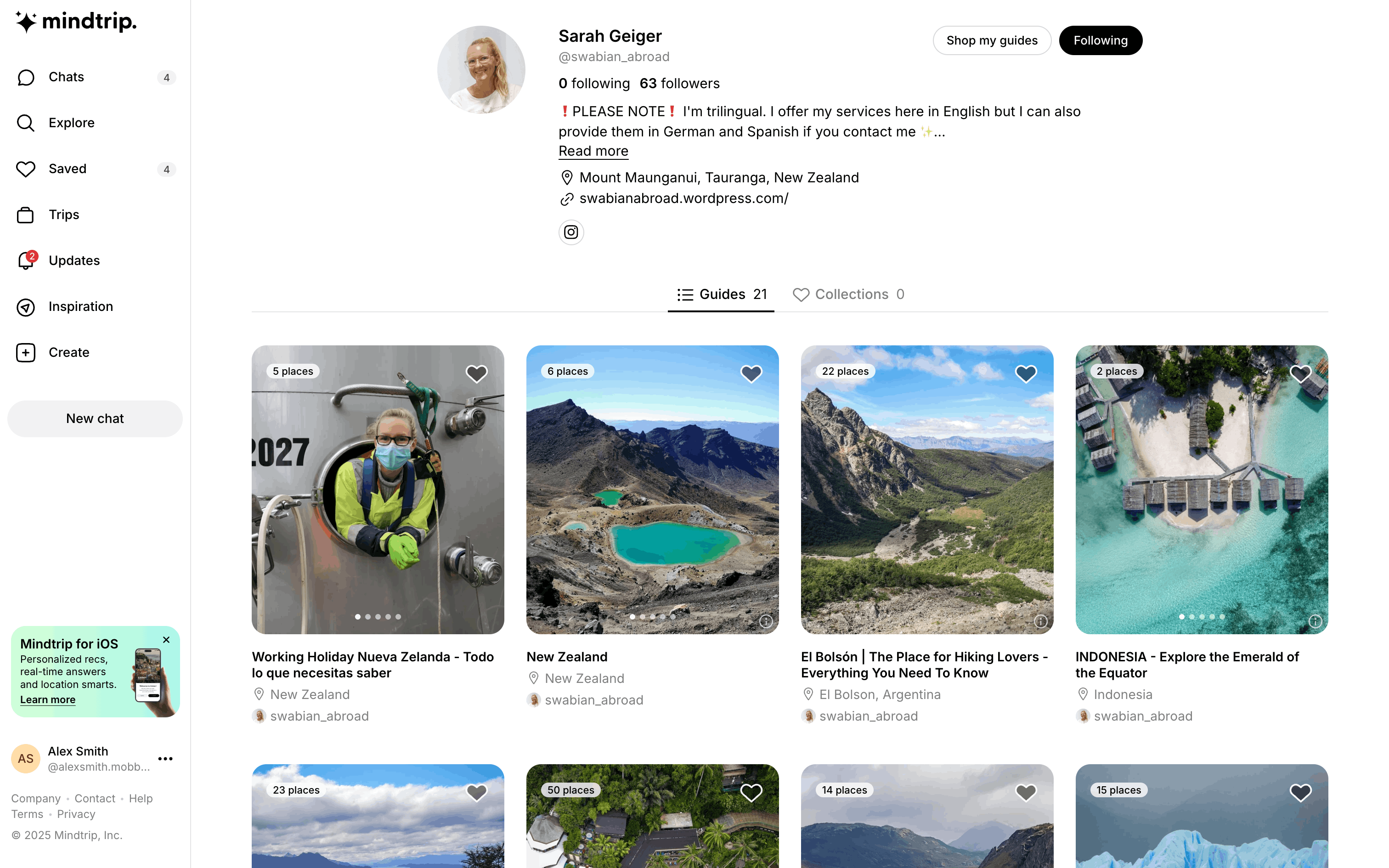 The user views an expert's profile and then follows them. The follow button changes to "Following" to confirm the action.