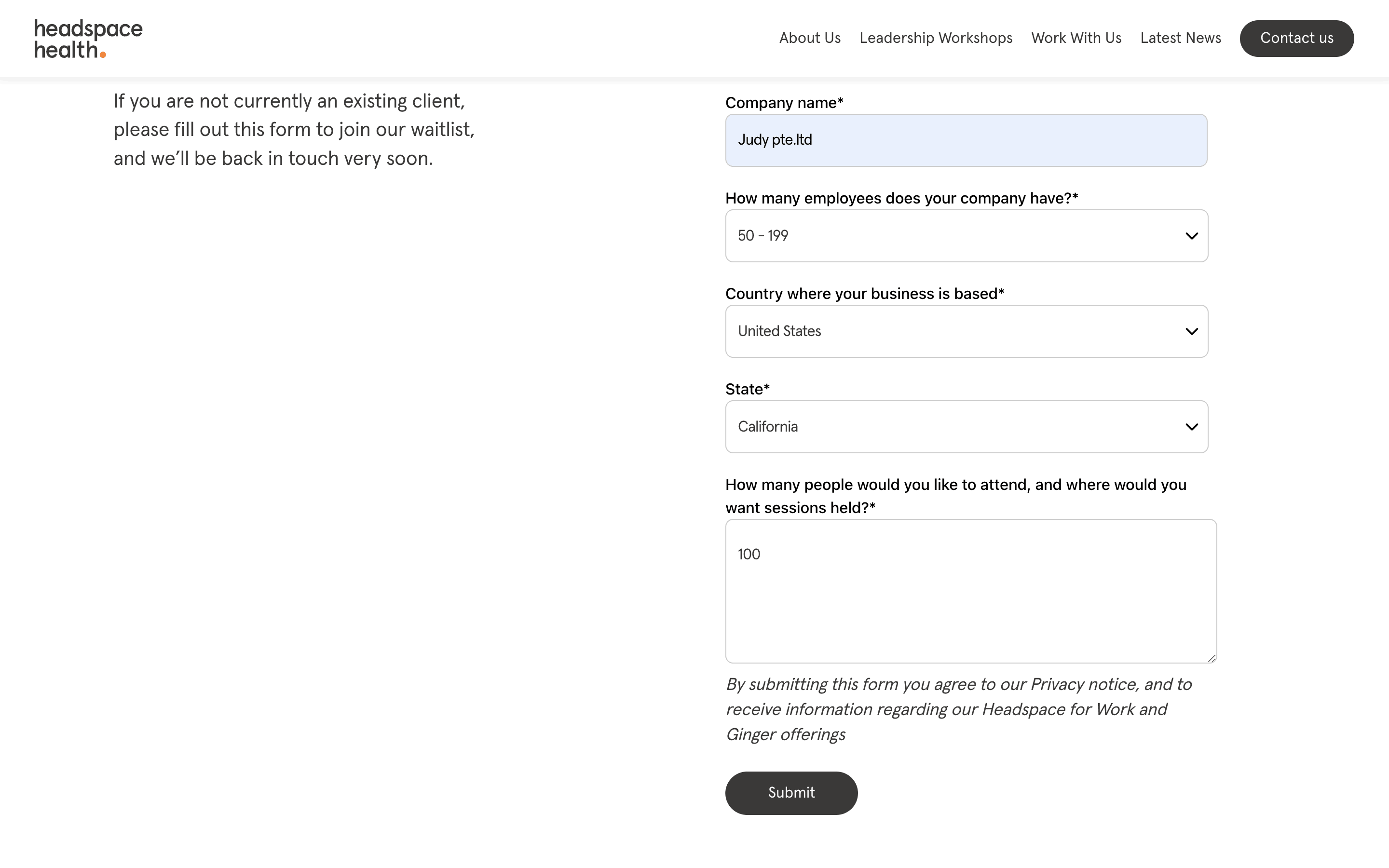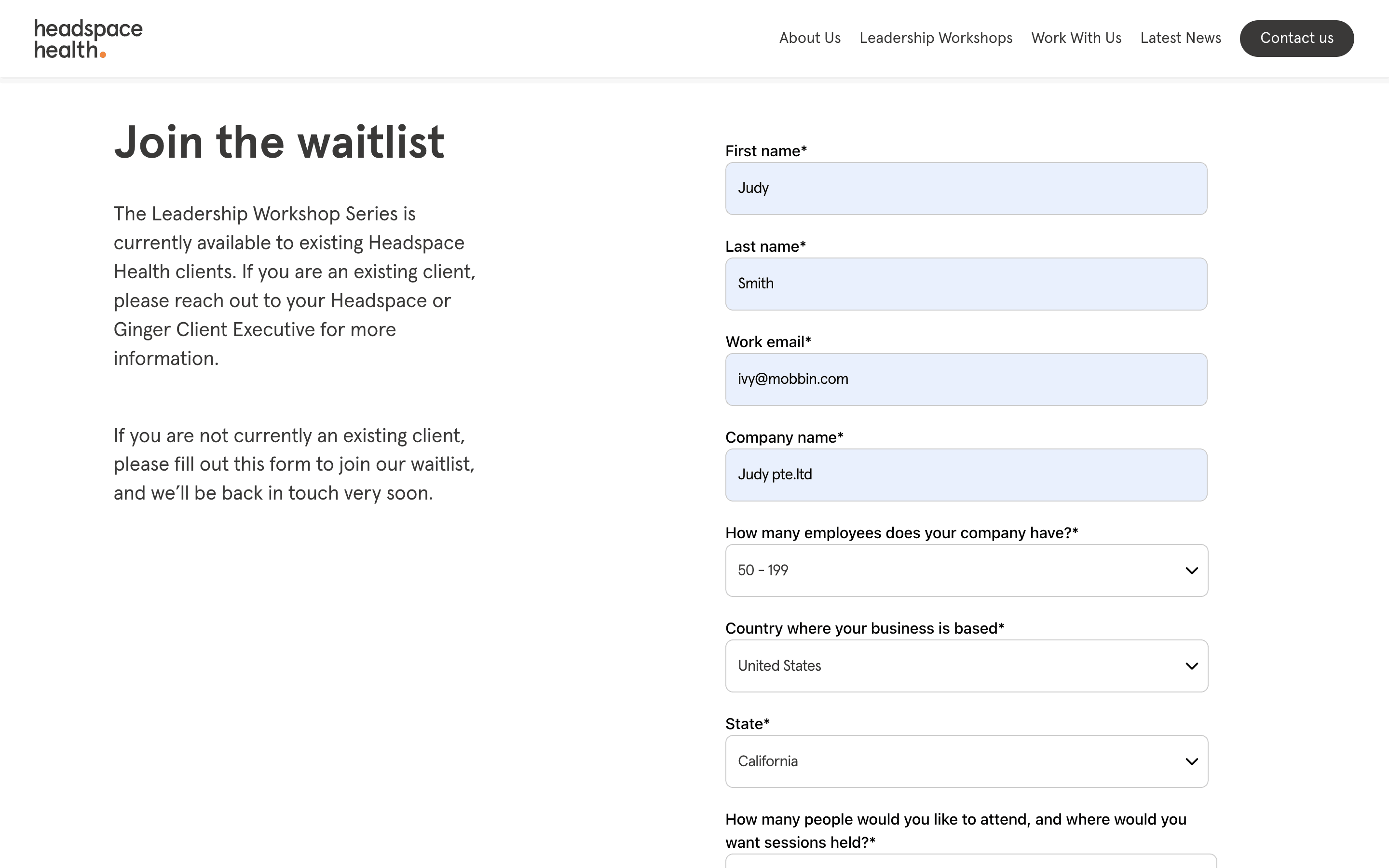 The user navigates from a landing page to a waitlist form, fills it out, submits it, and receives a confirmation message. The goal is to join the waitlist.