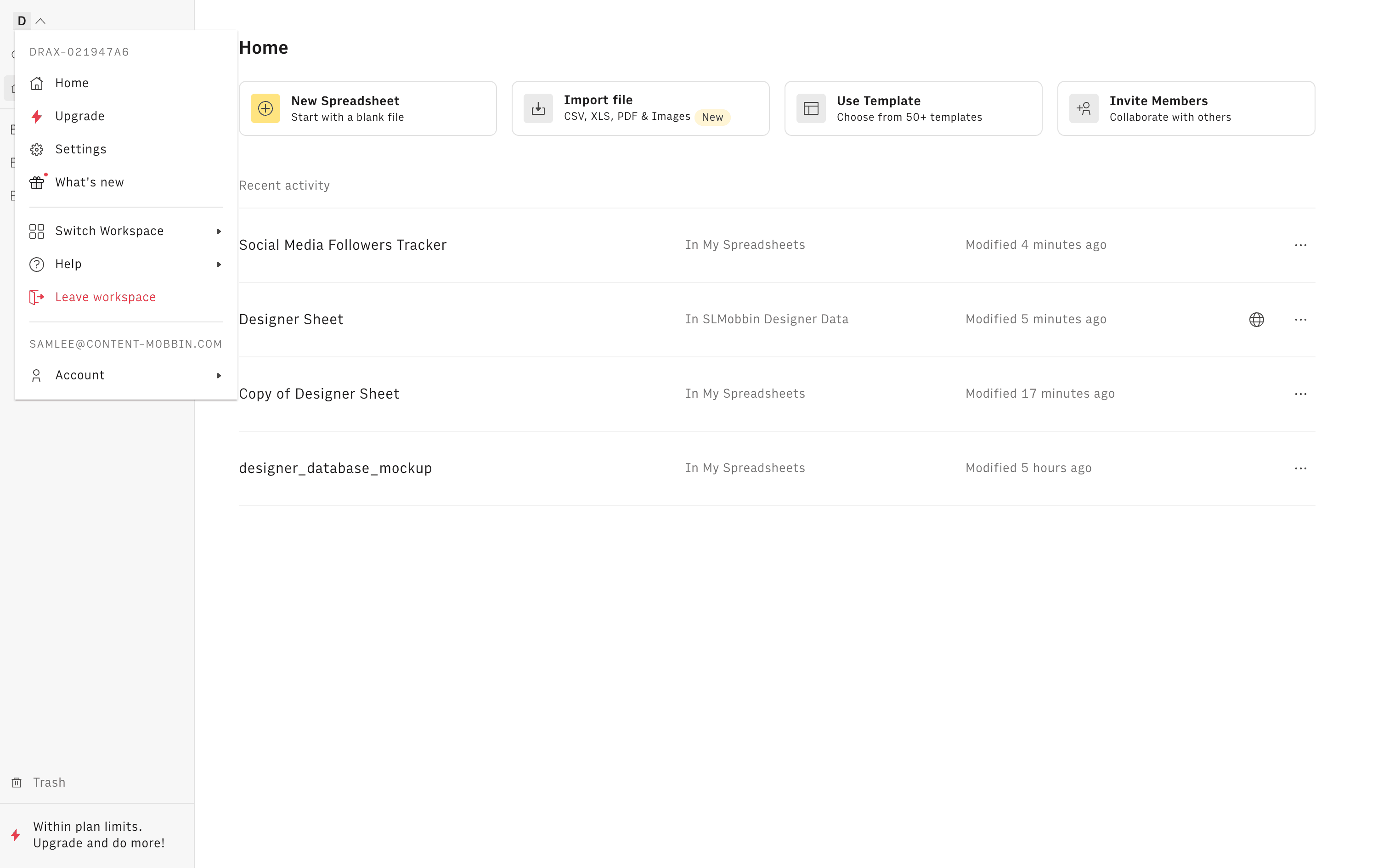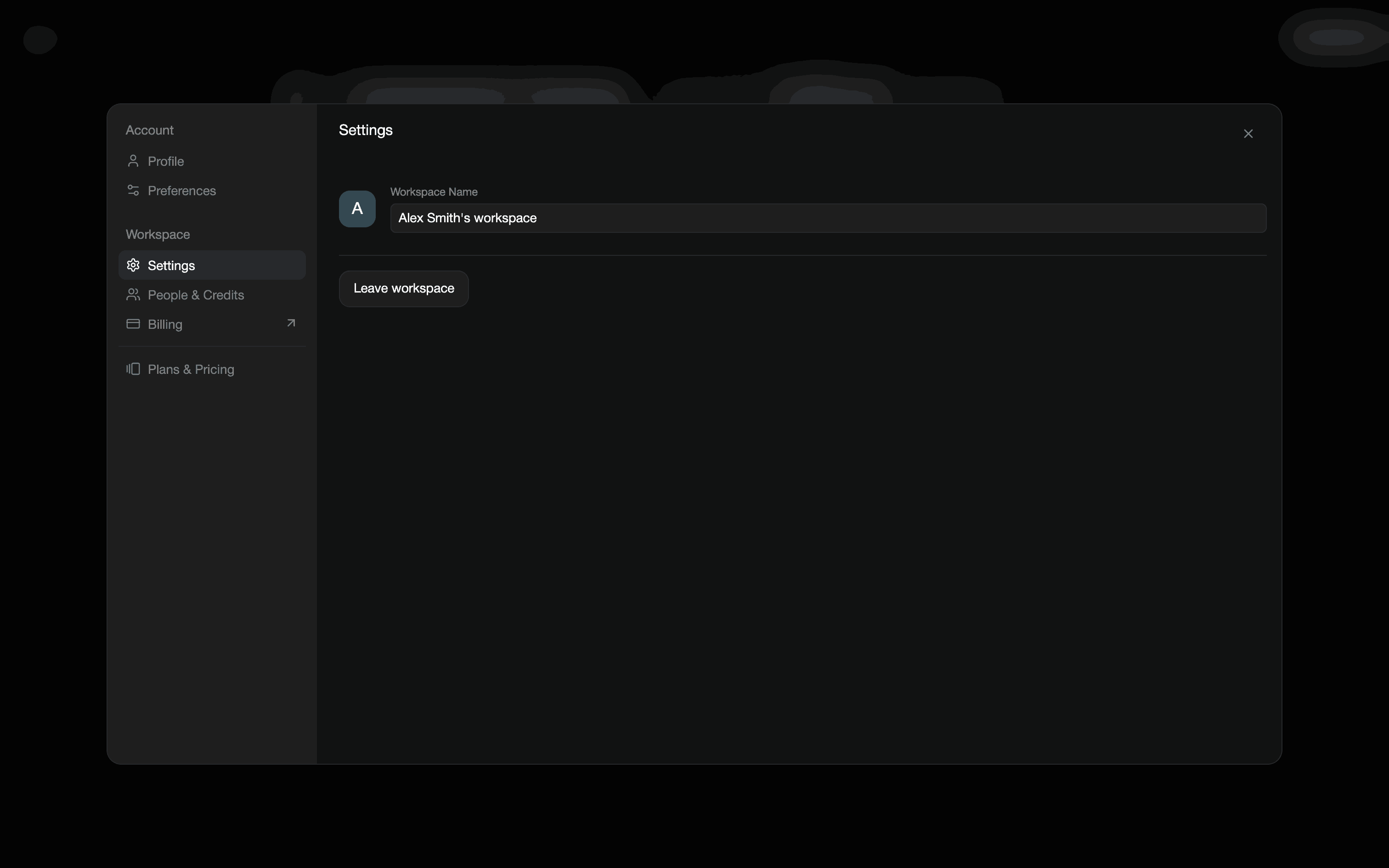 The user navigates to workspace settings and leaves the workspace. The user is then redirected to another workspace and views the project list.