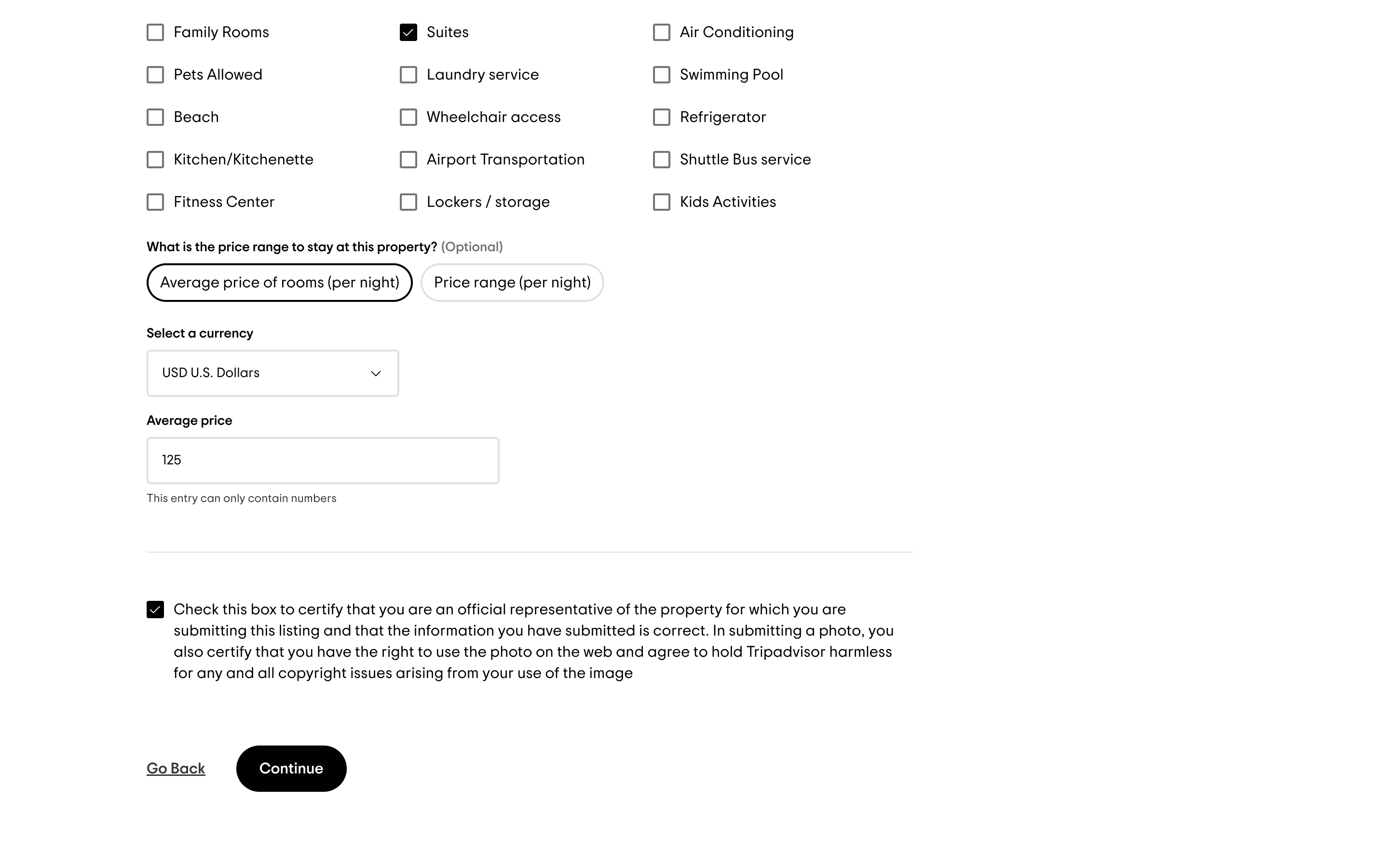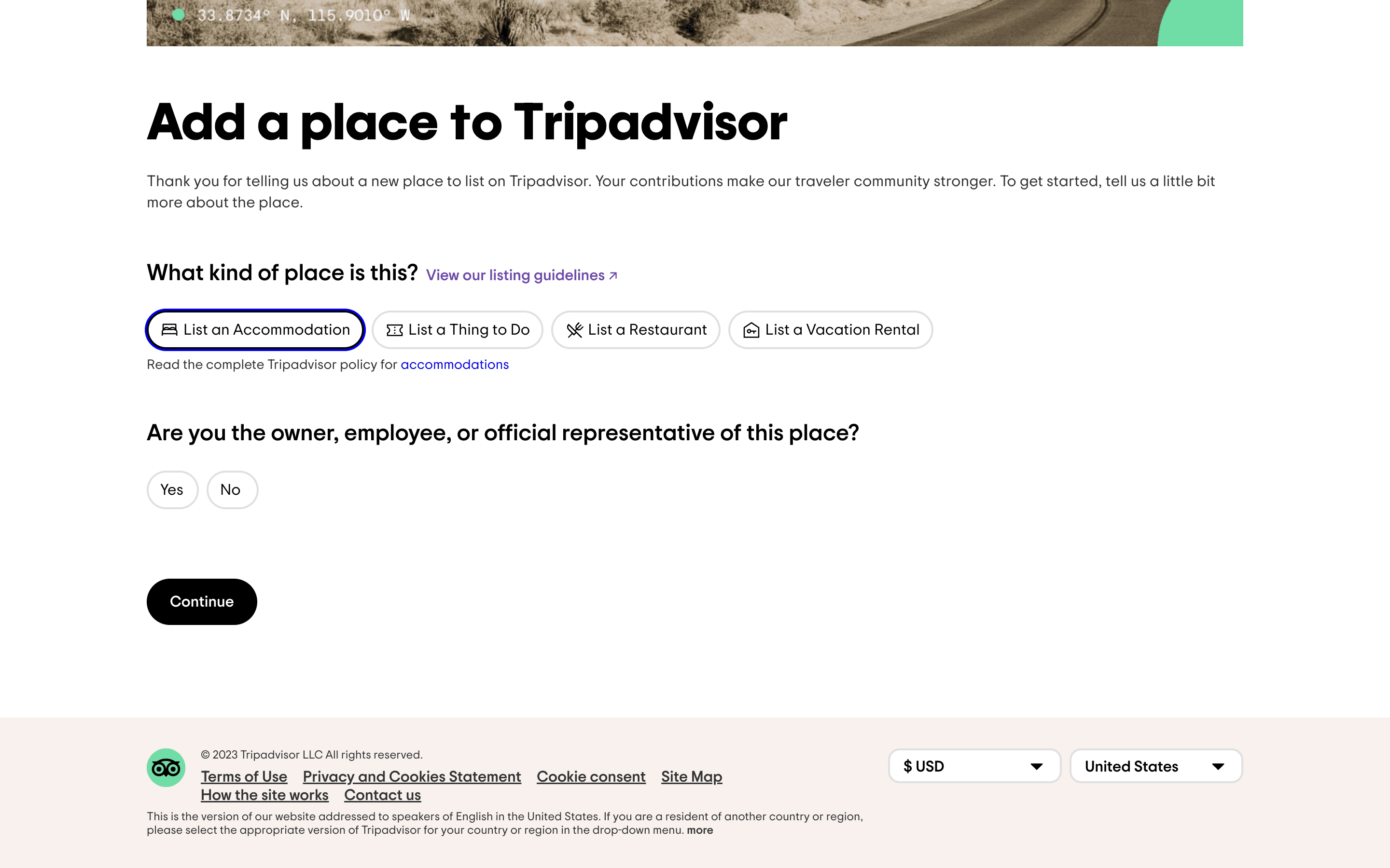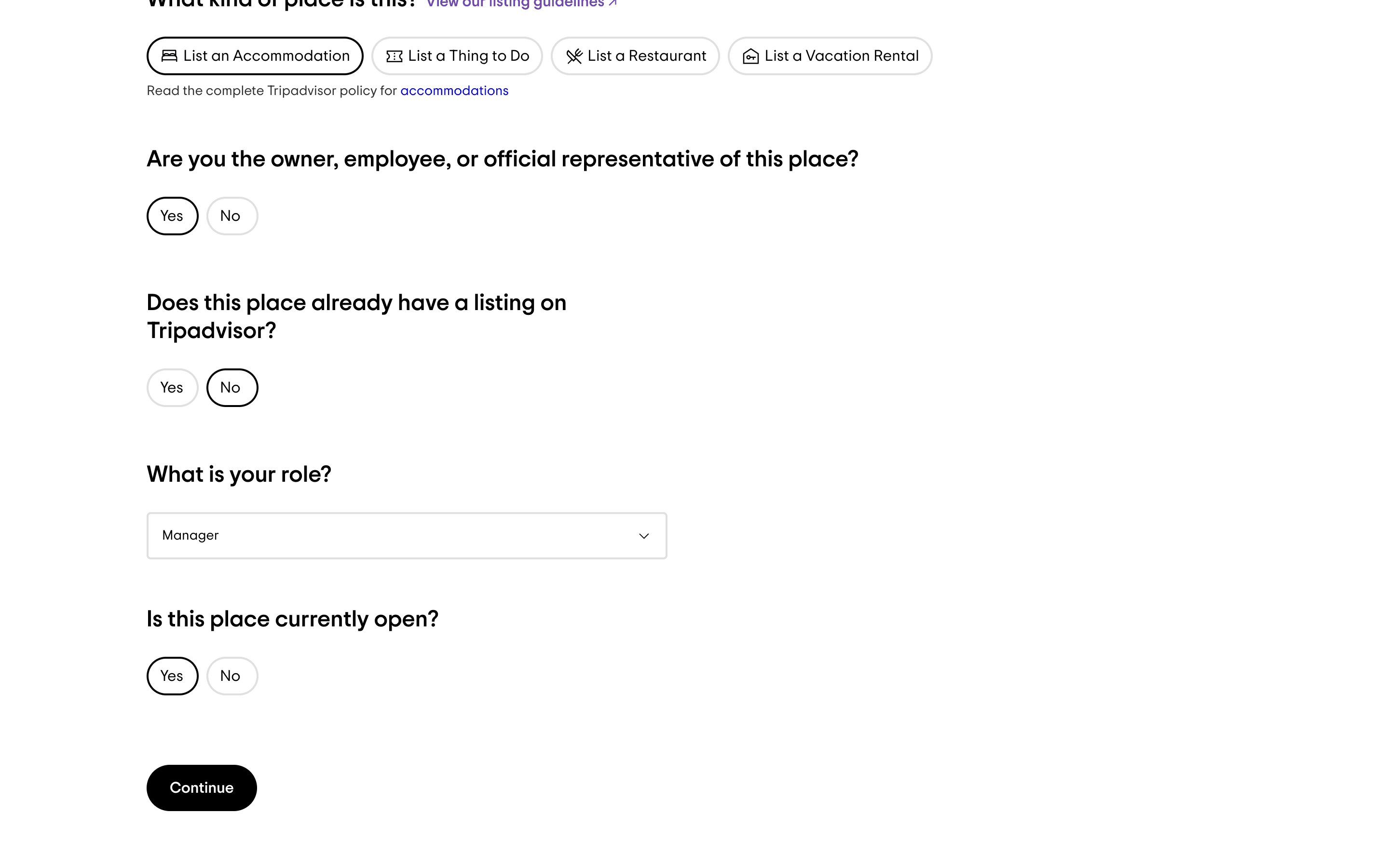 The user adds a new accommodation to TripAdvisor by filling out a detailed form. They then review and submit the information.