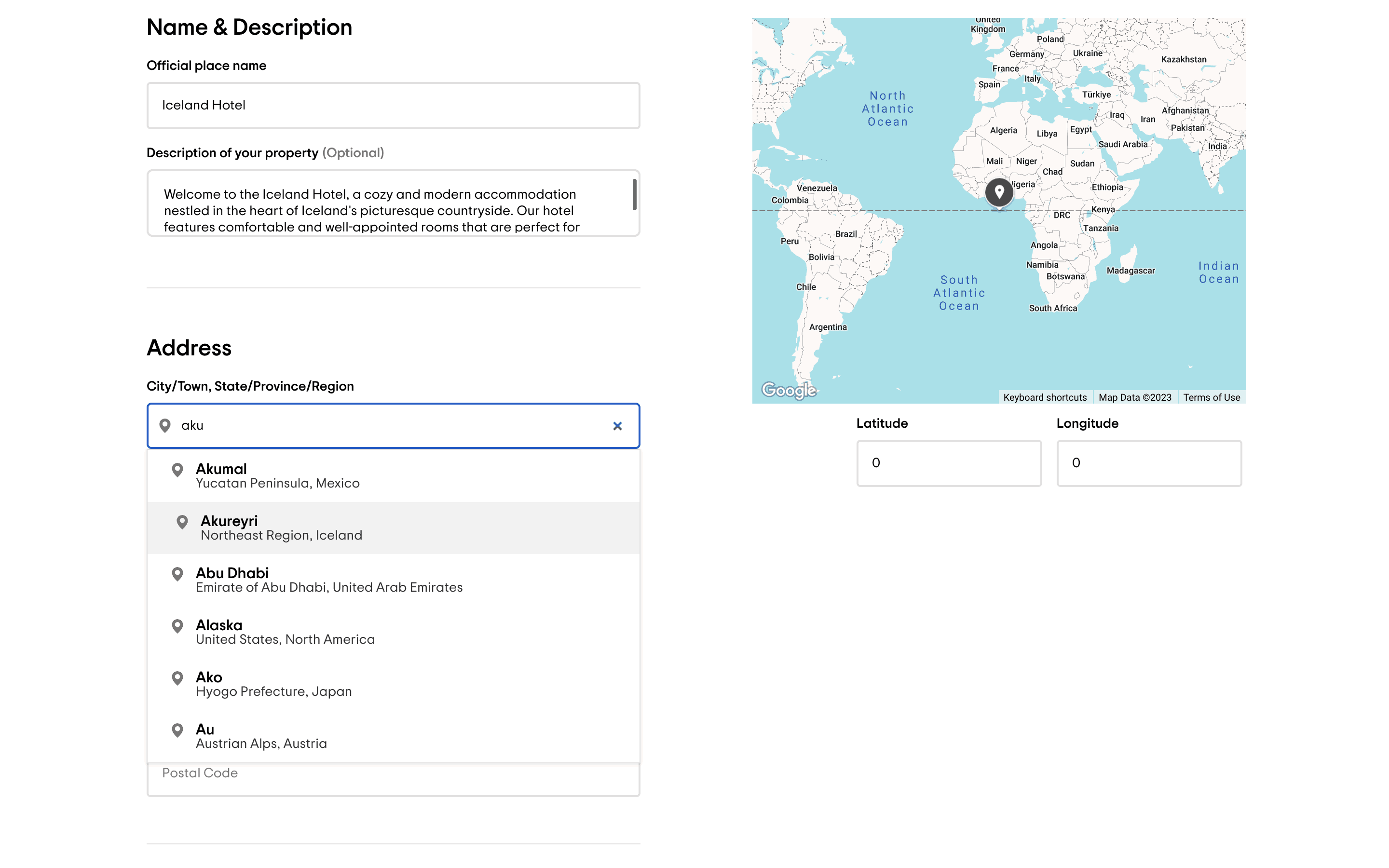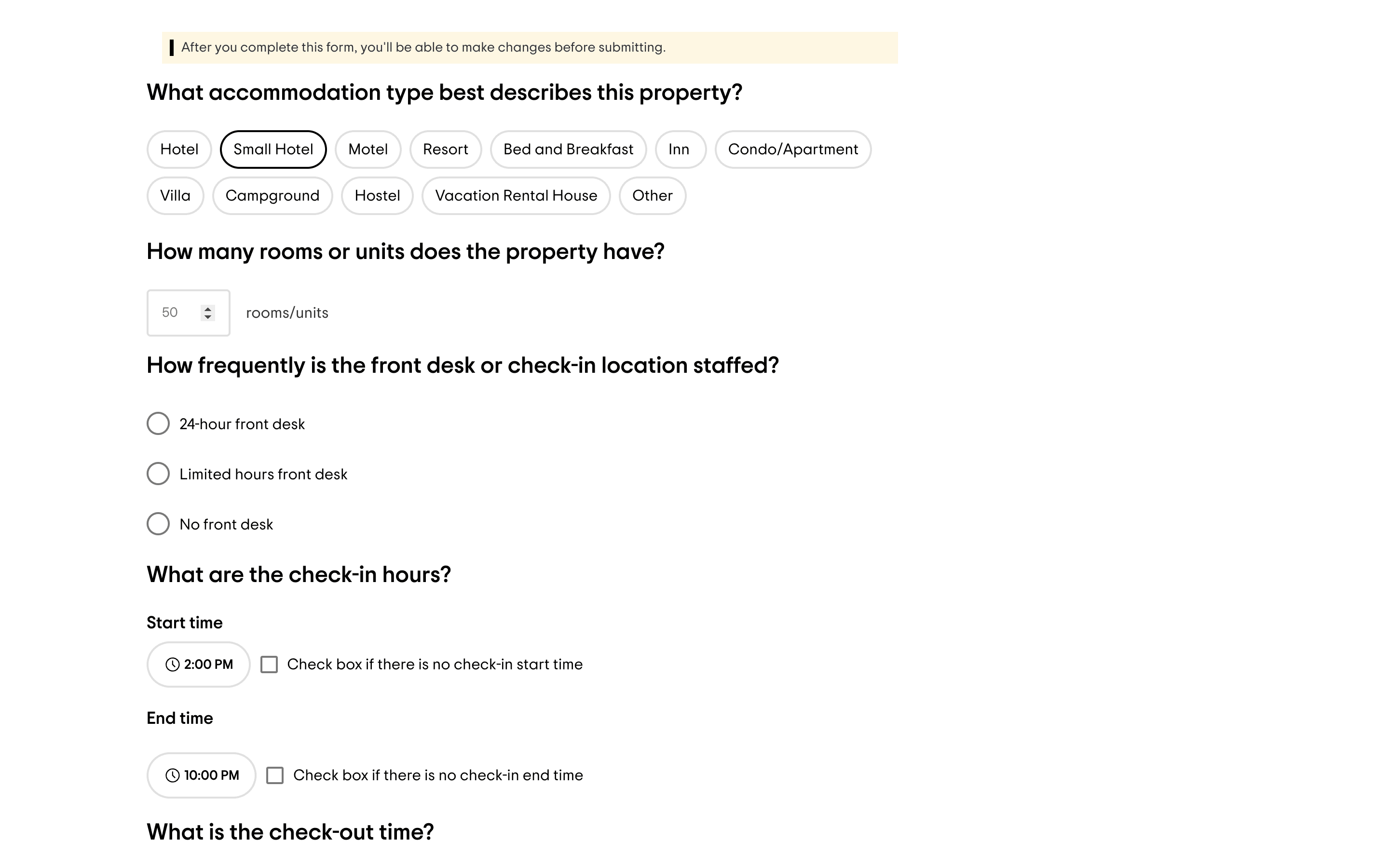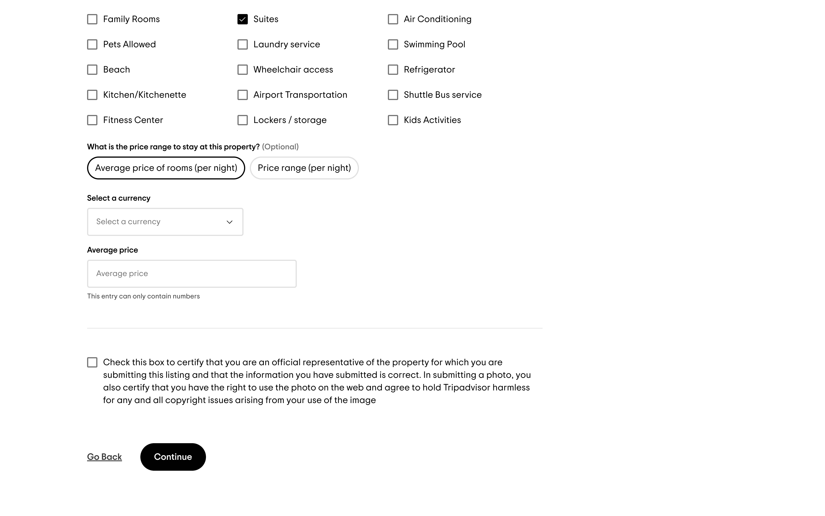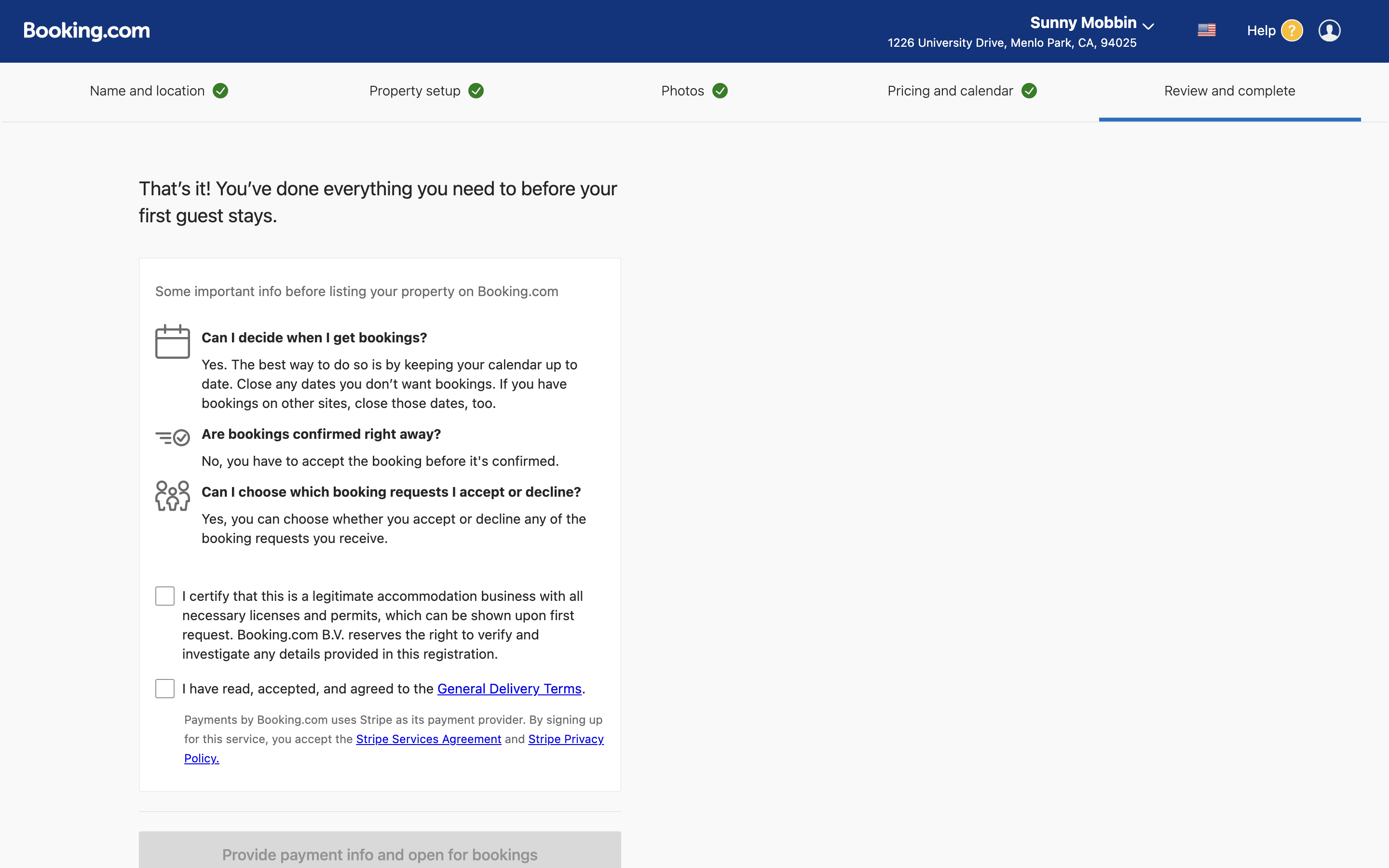 The user adds a new accommodation to TripAdvisor by filling out a detailed form. They then review and submit the information.