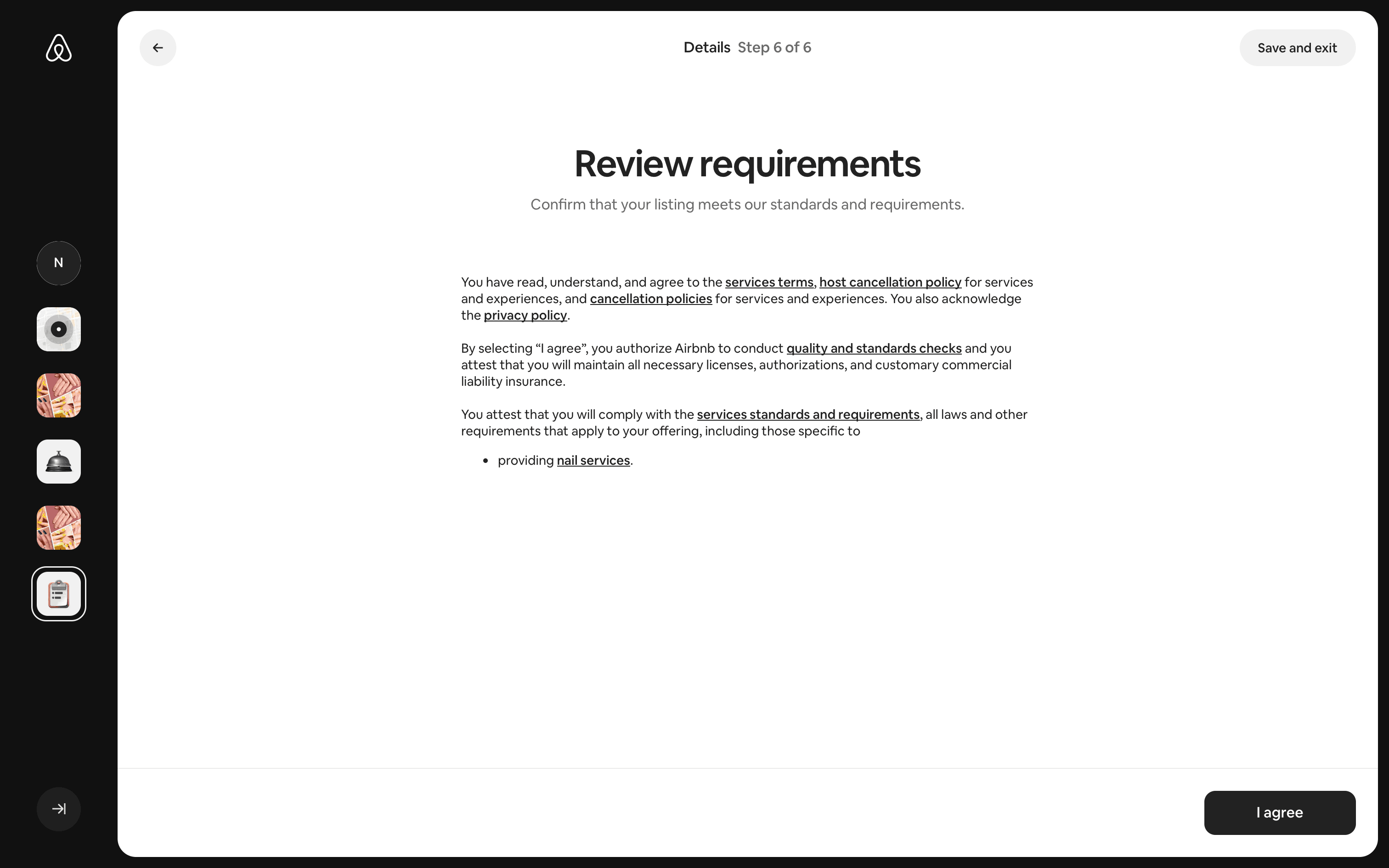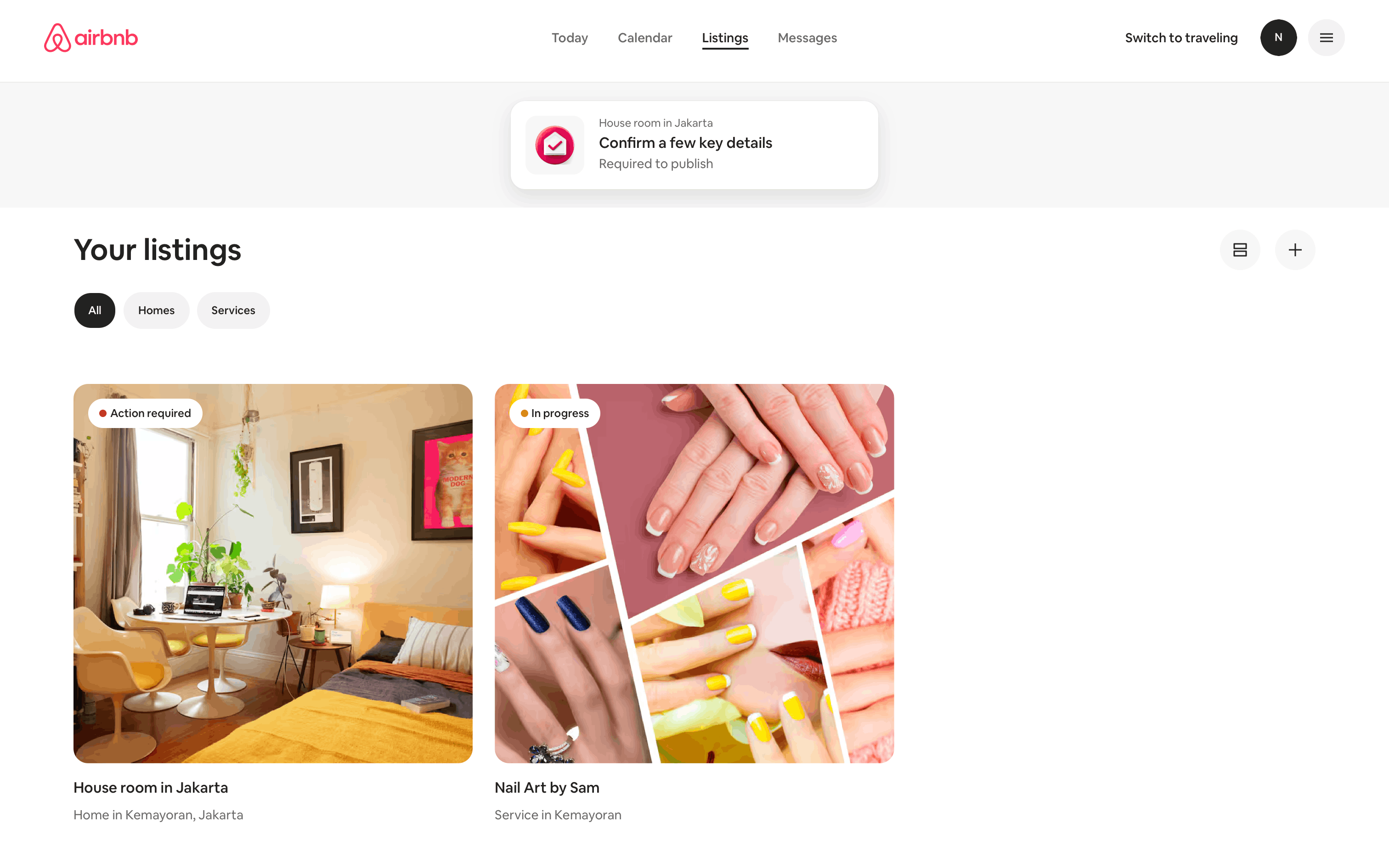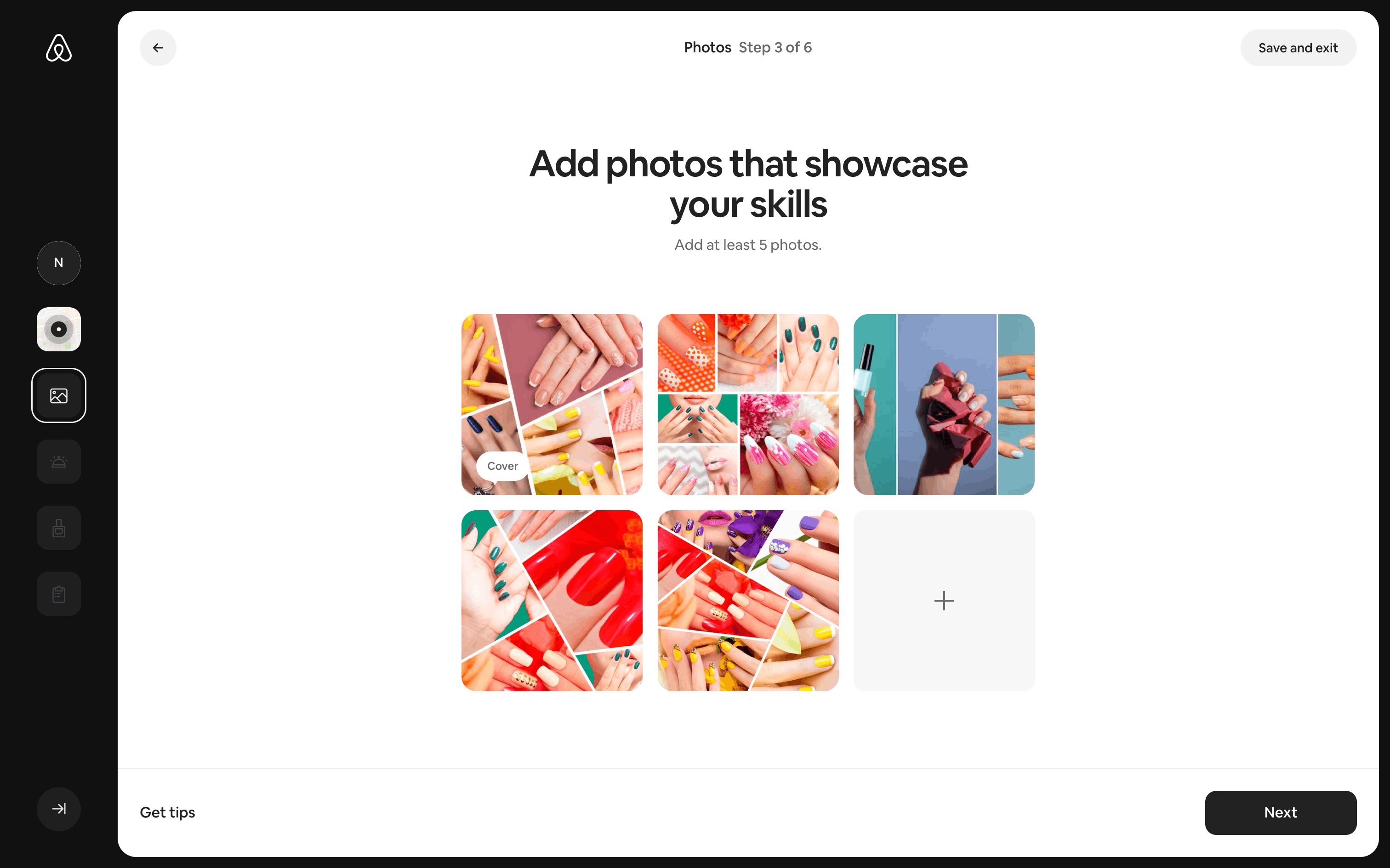 The user creates a new service listing by providing details about their nail service. The listing is then displayed on the listing page.