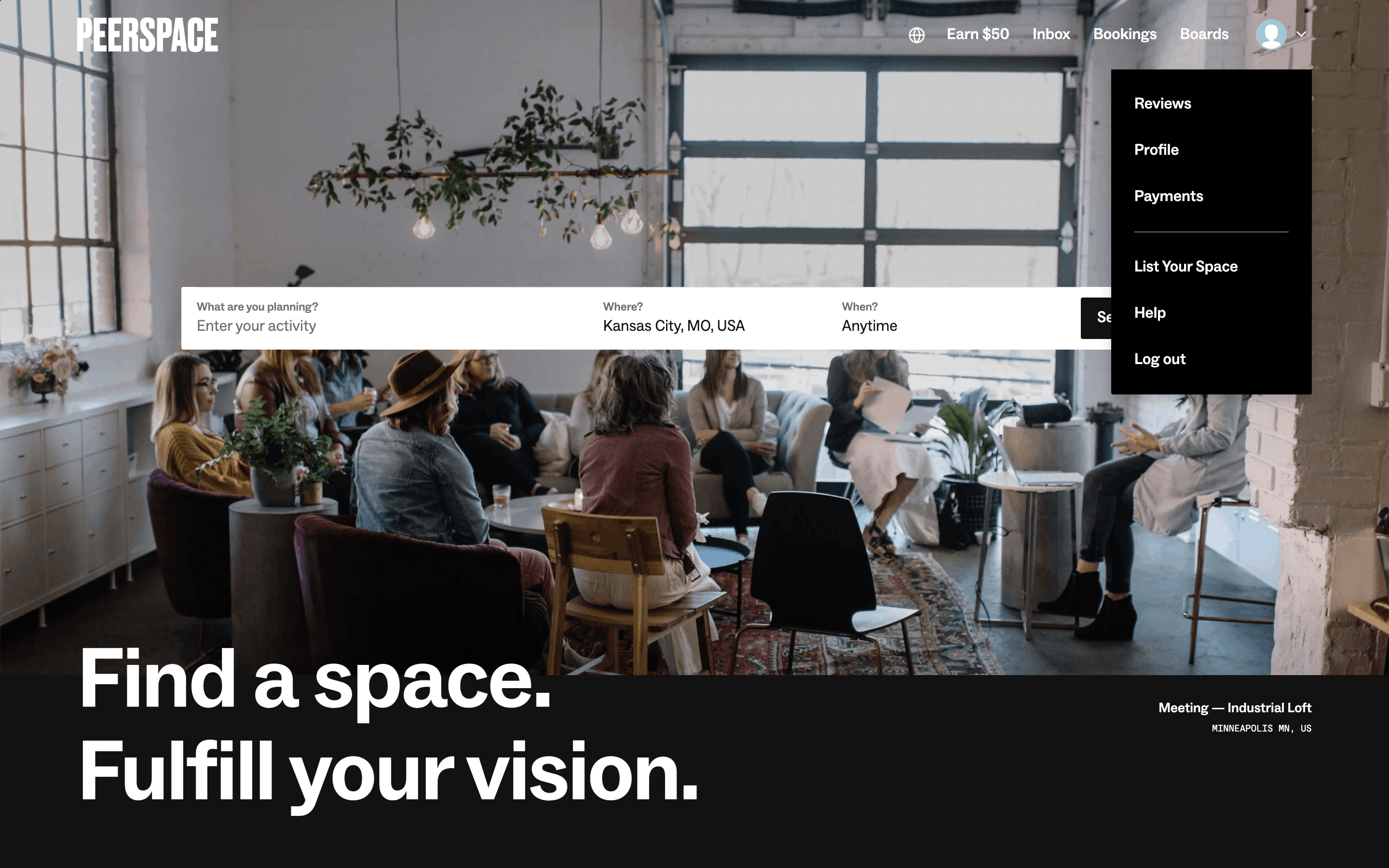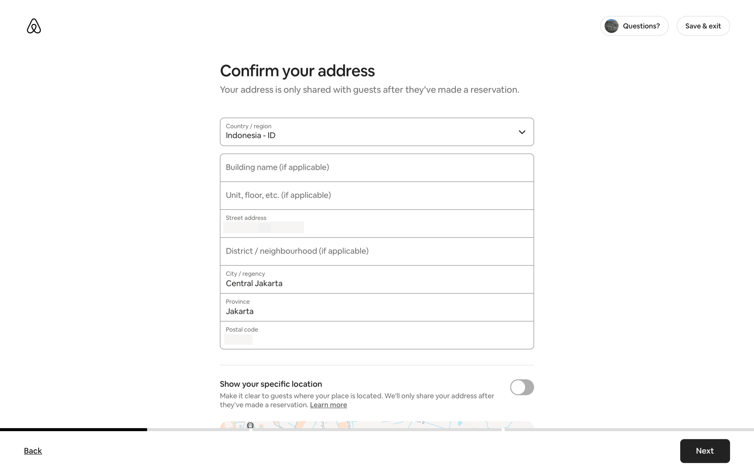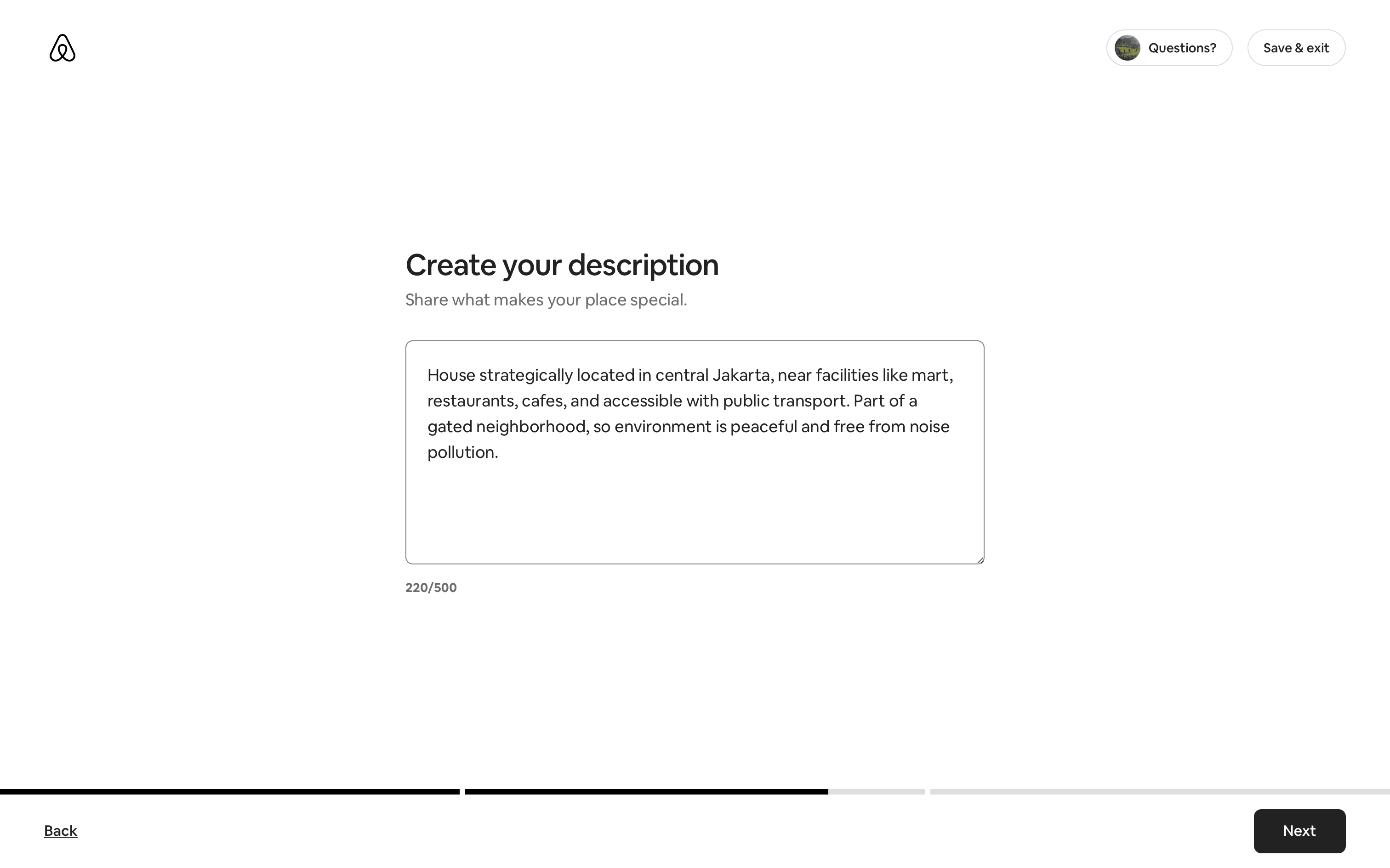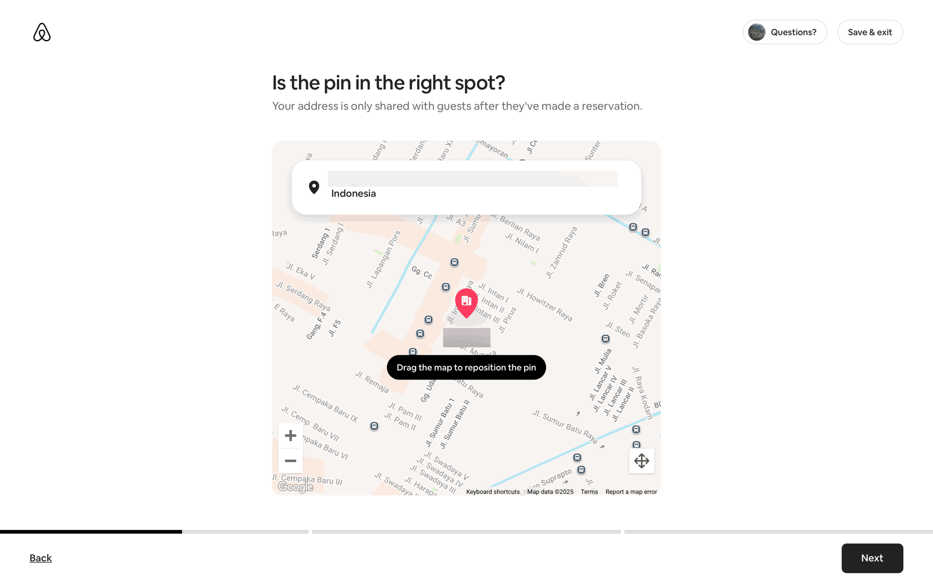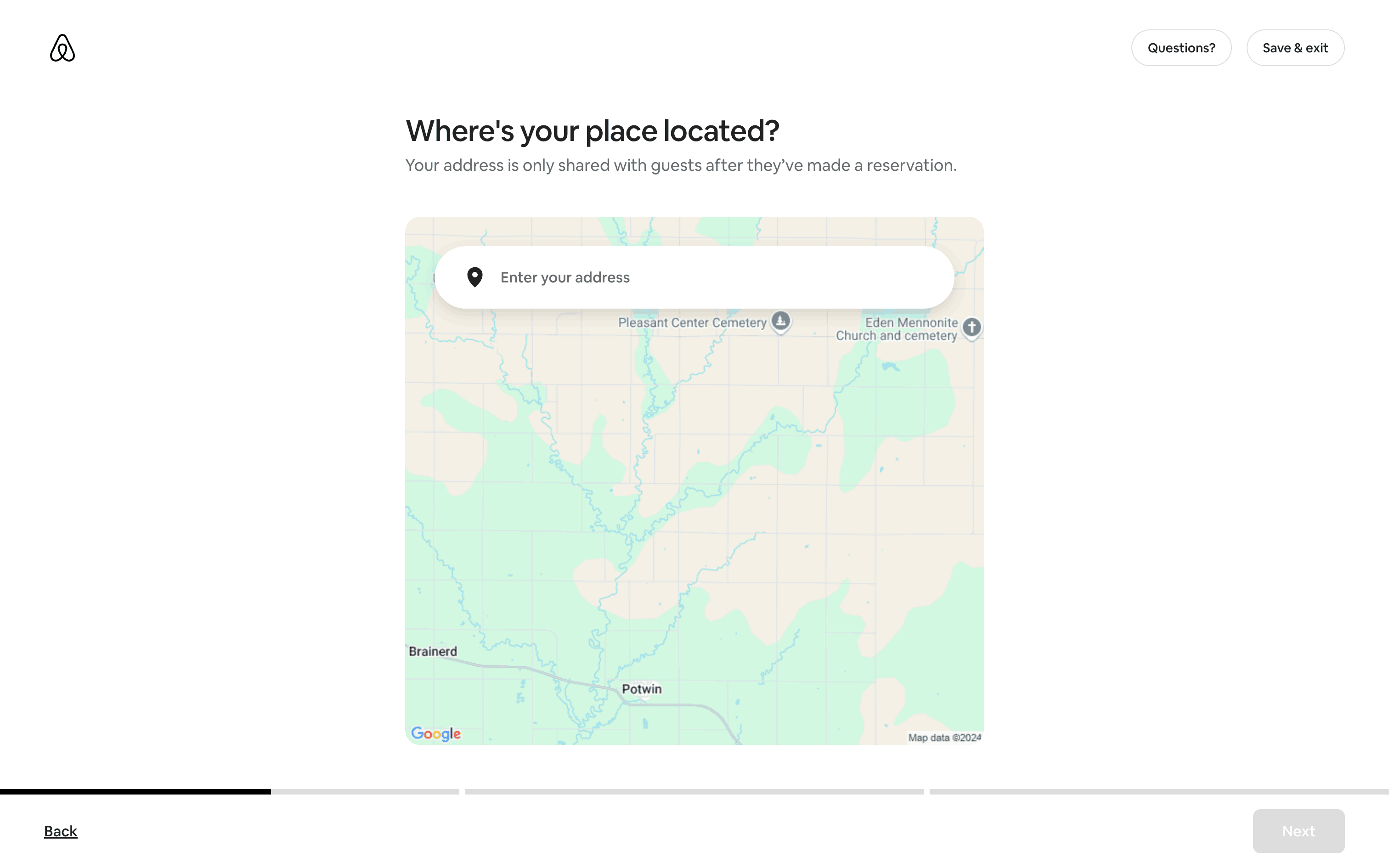 Users list their space by completing a multi-step form providing address, setup details, and a title/description. The process is guided by progress indicators and clear calls to action.