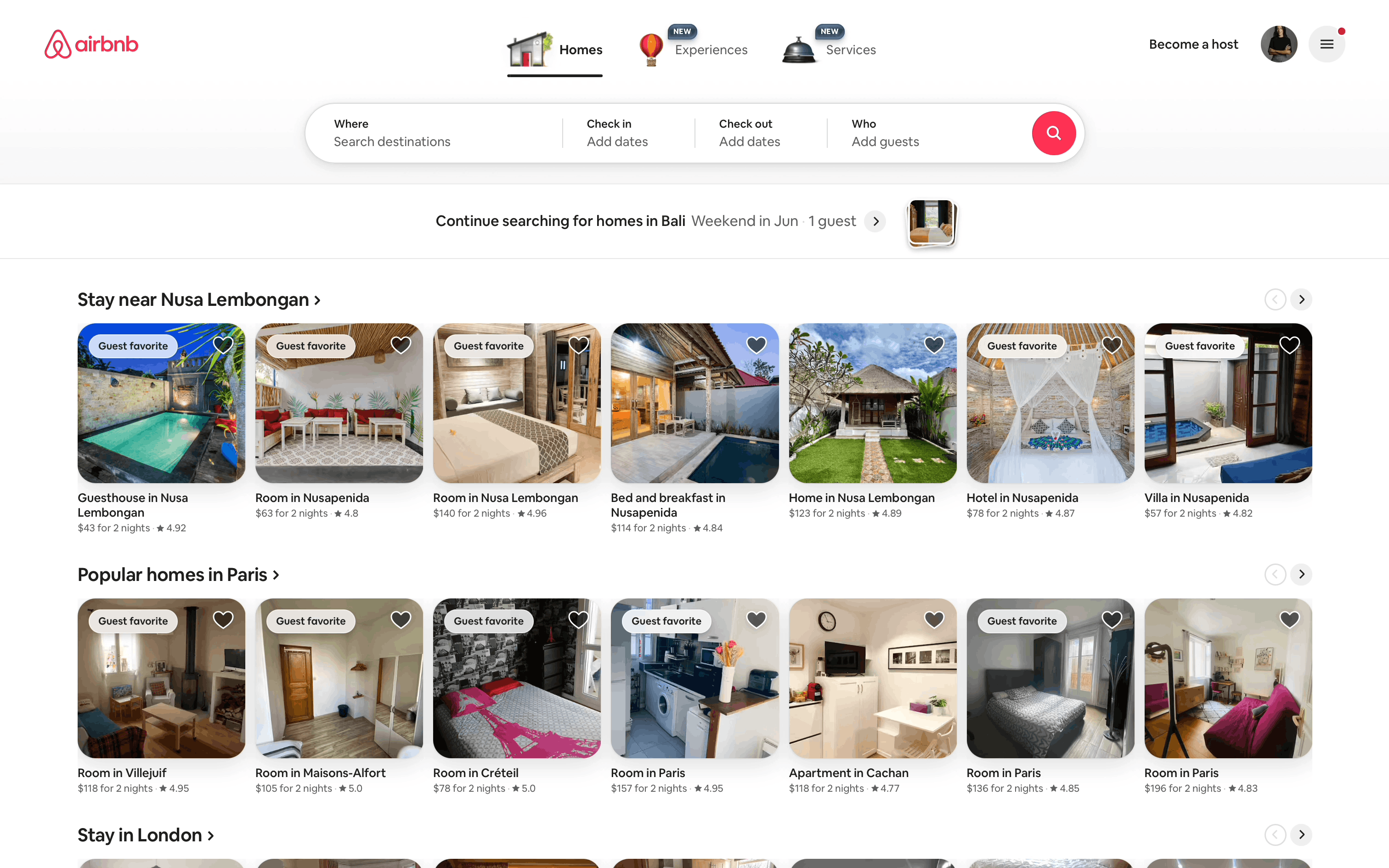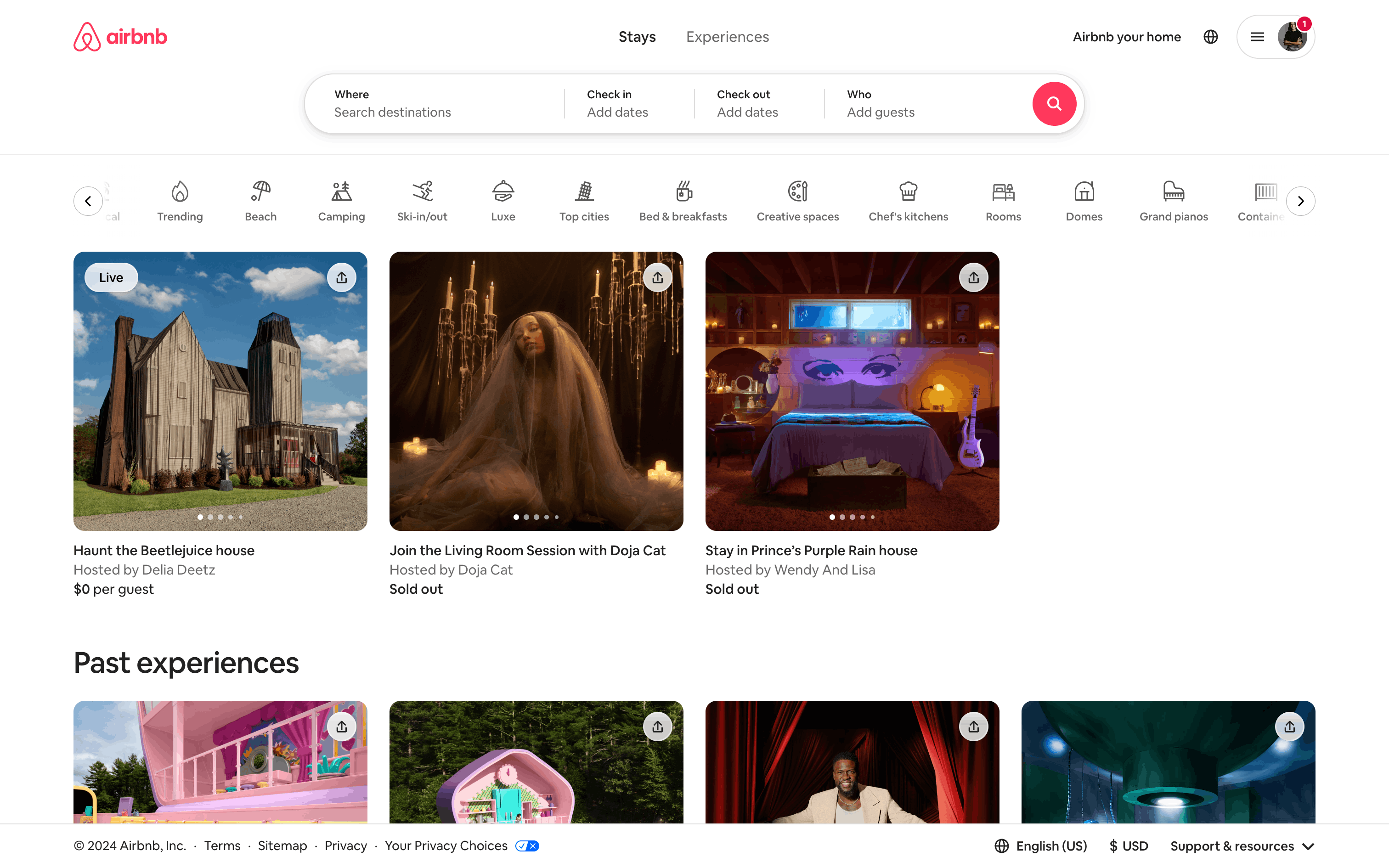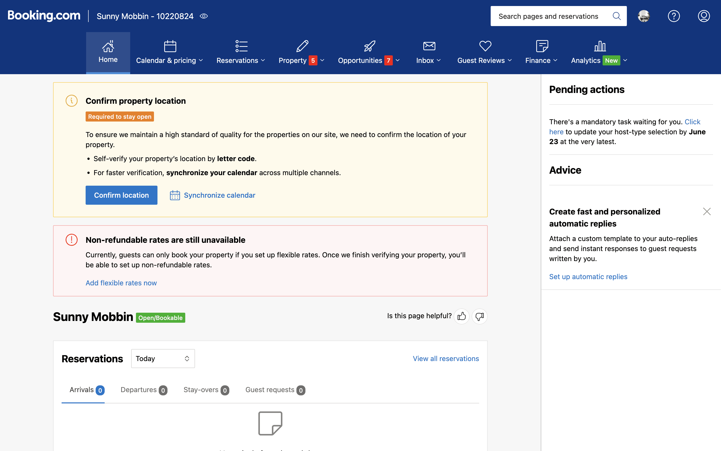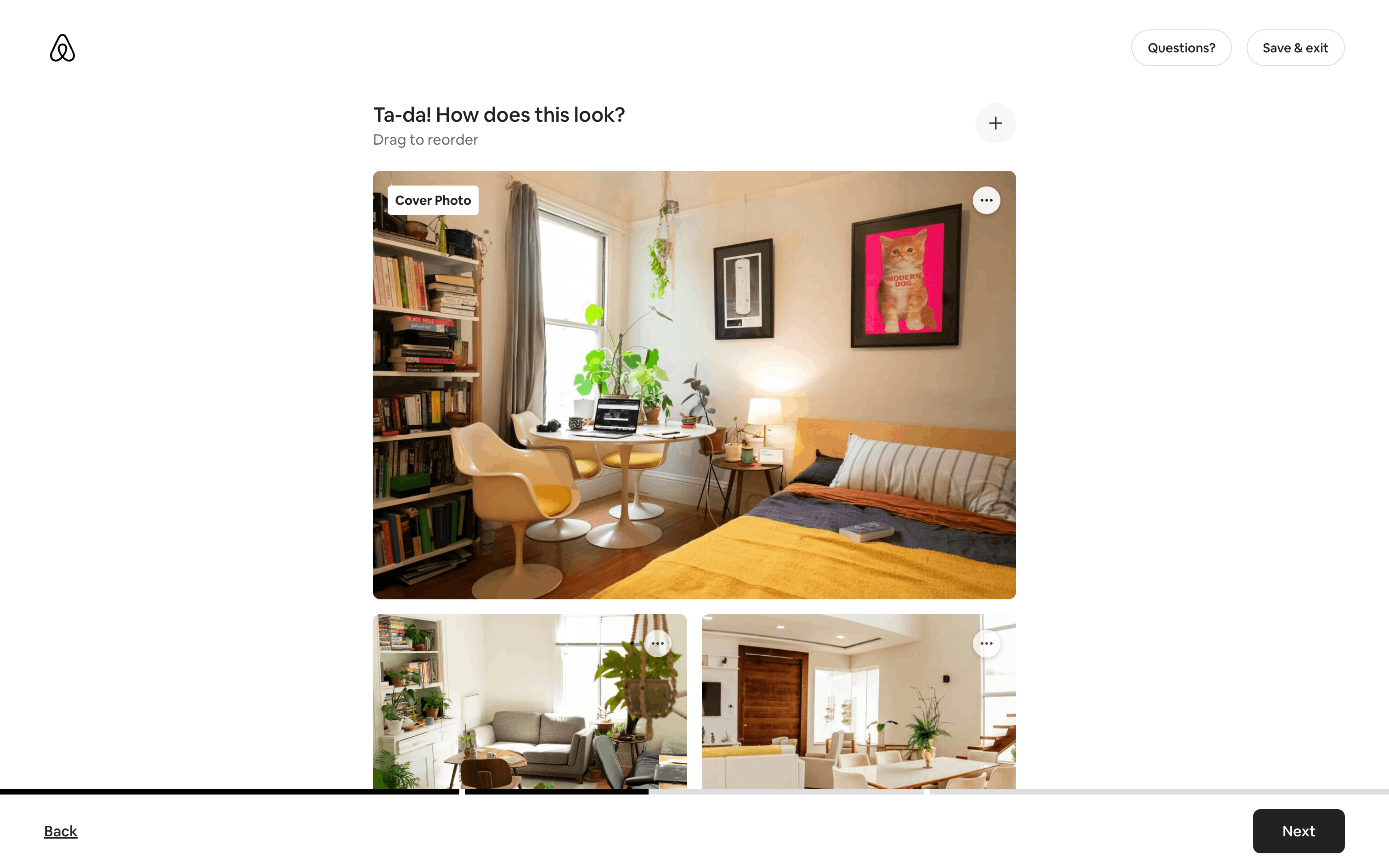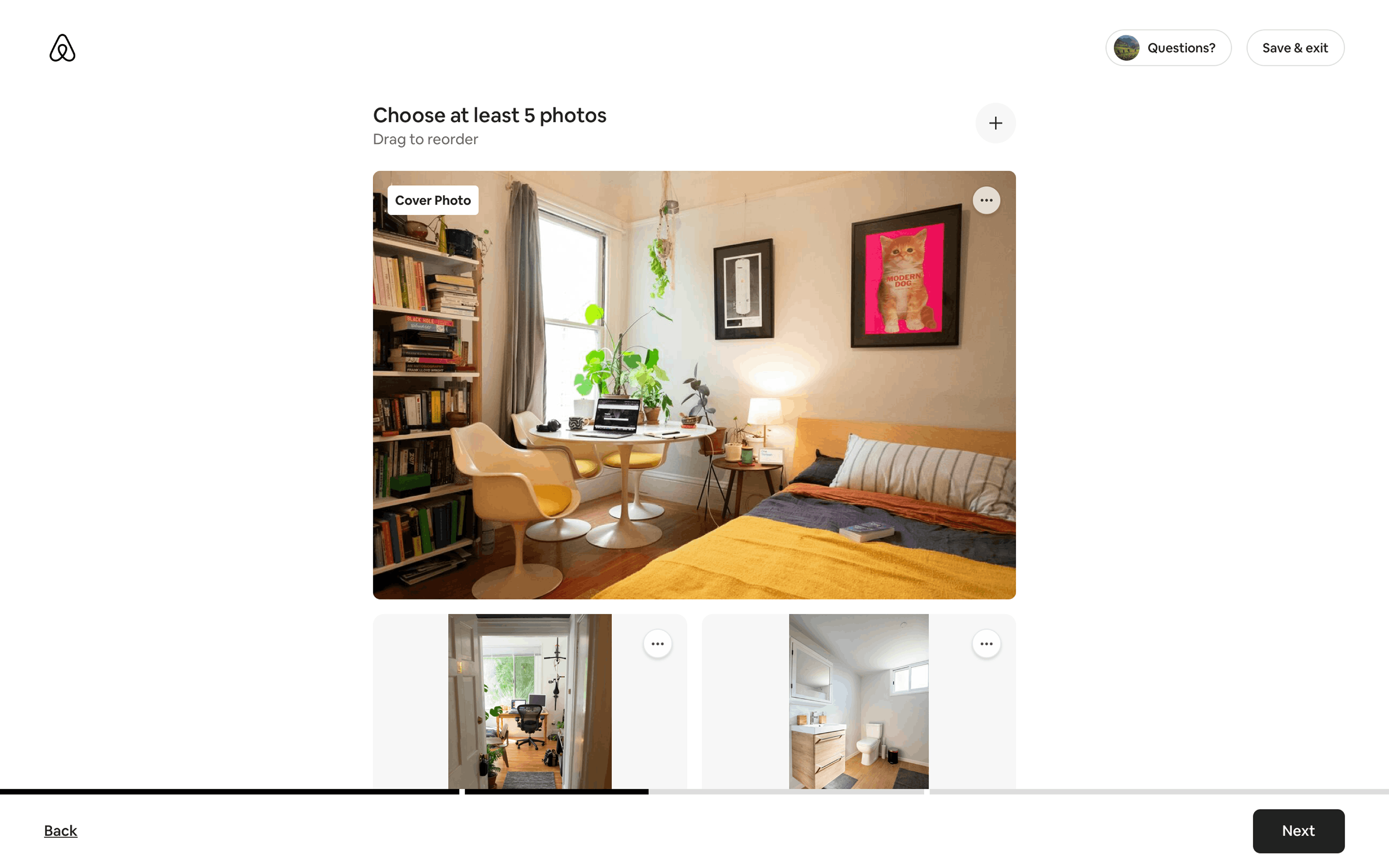 The user flow demonstrates listing a property on Airbnb. It covers property details, photos, and publishing, with Superhost guidance and co-hosting options.