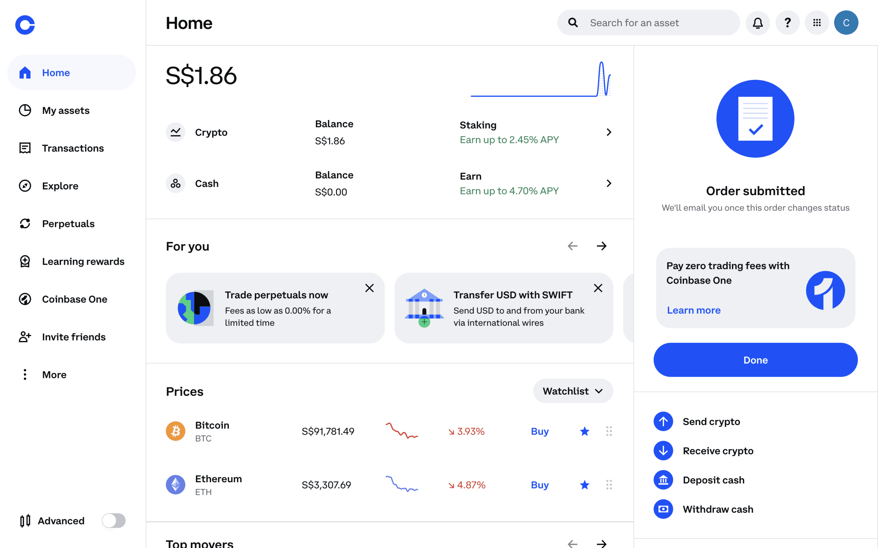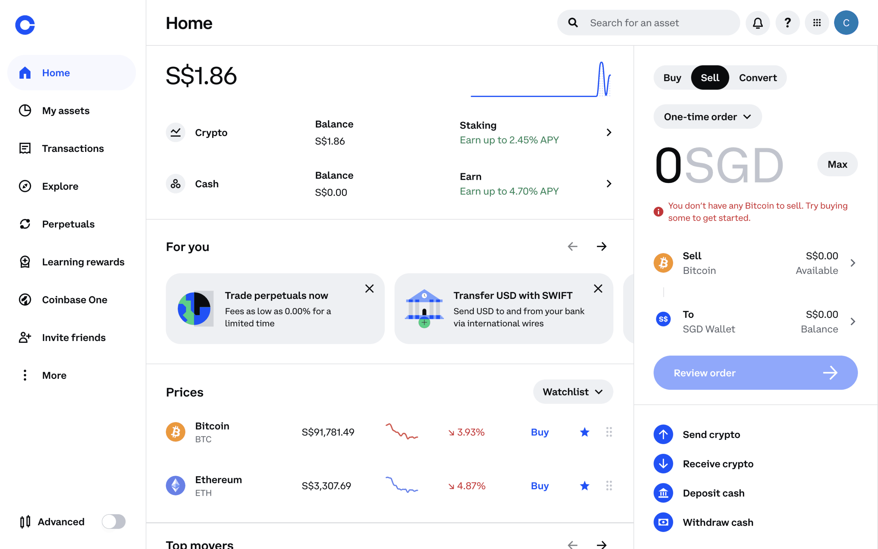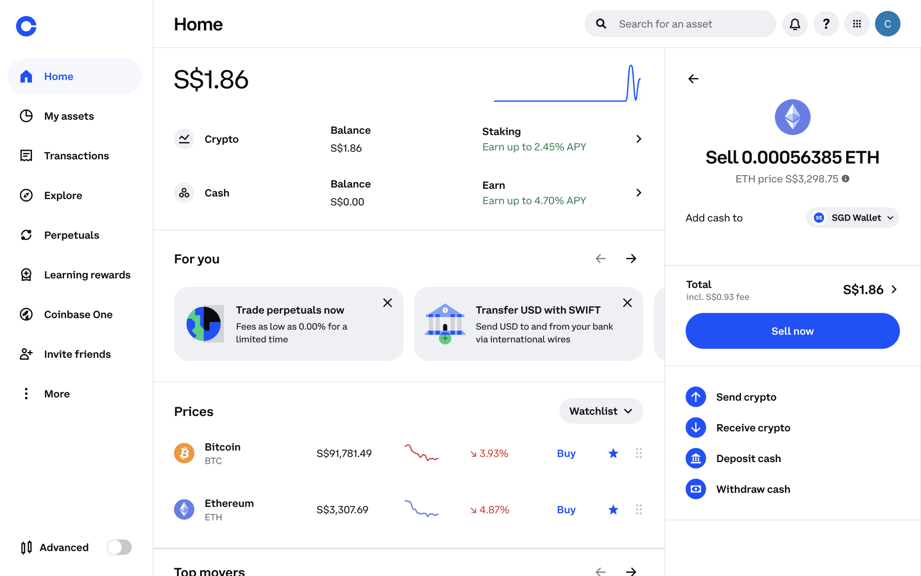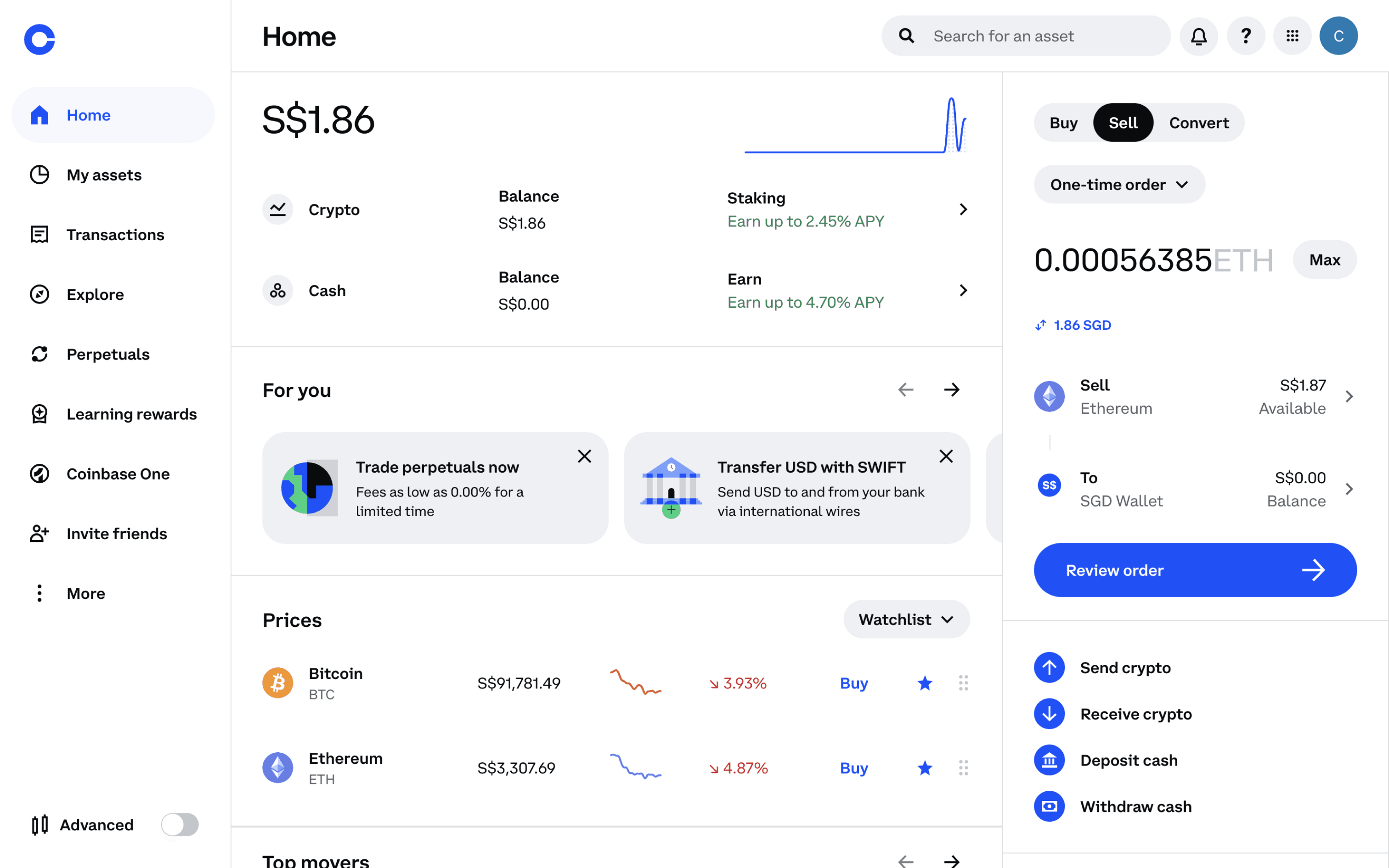 The user flow illustrates selling Ethereum, starting from the dashboard and ending with order confirmation. The user selects the asset, specifies the amount, and confirms the transaction.