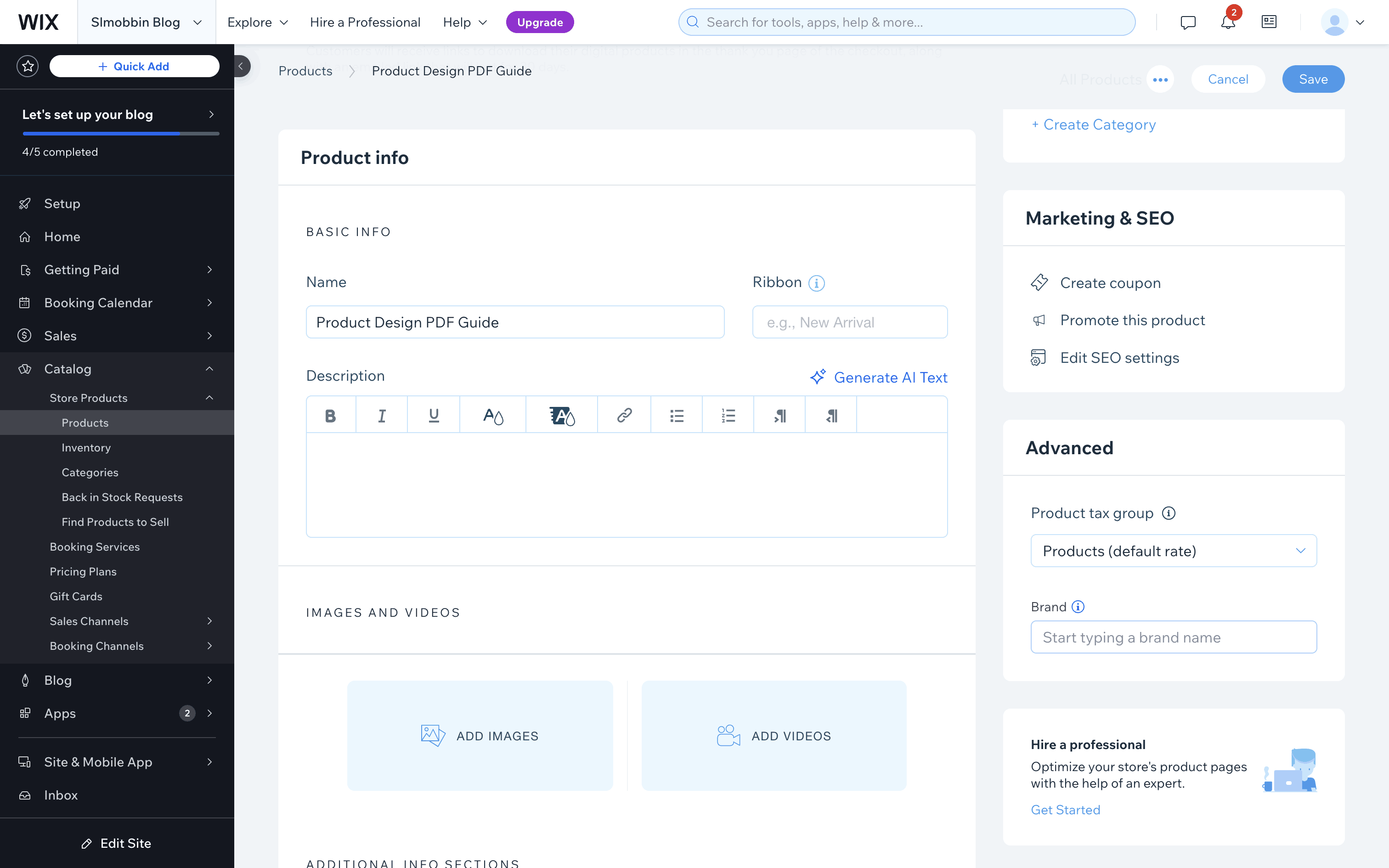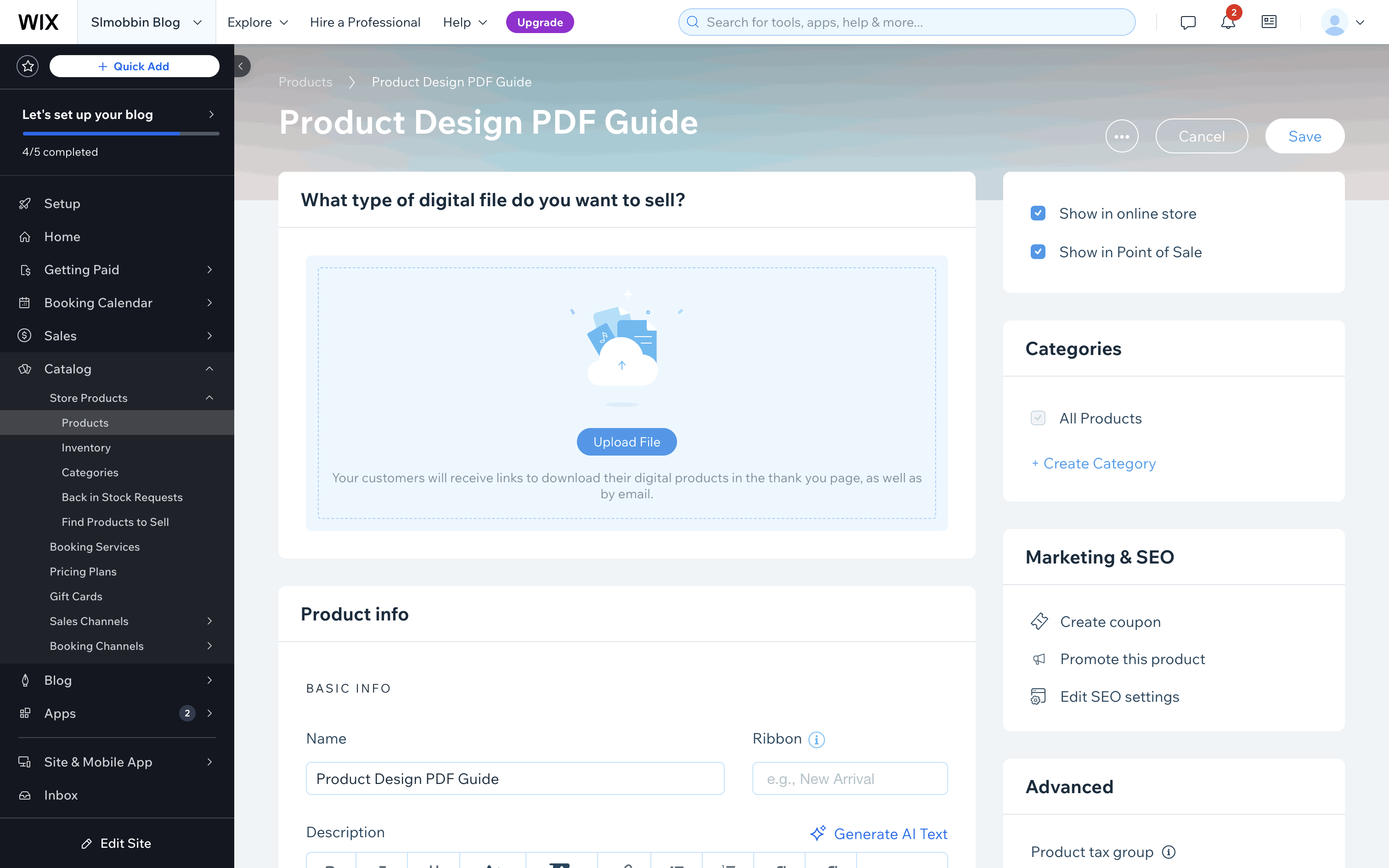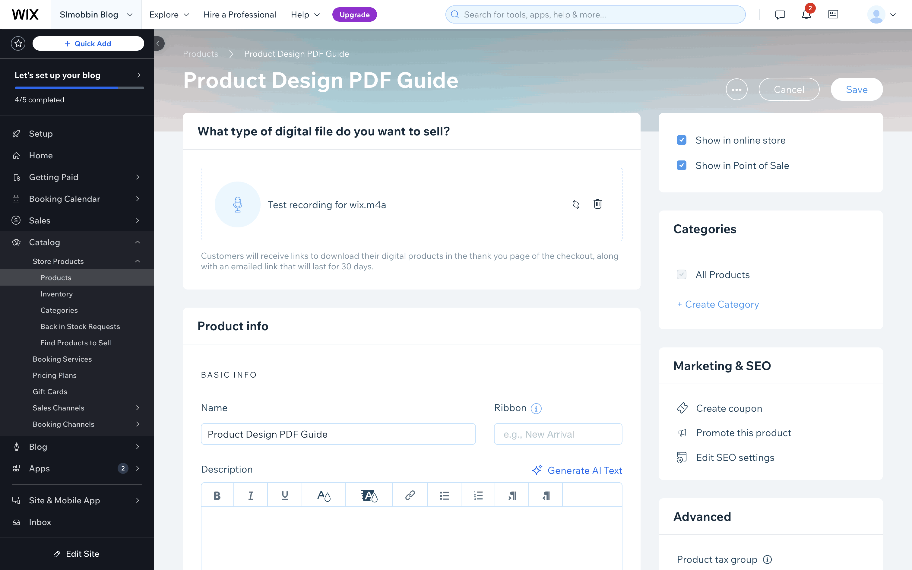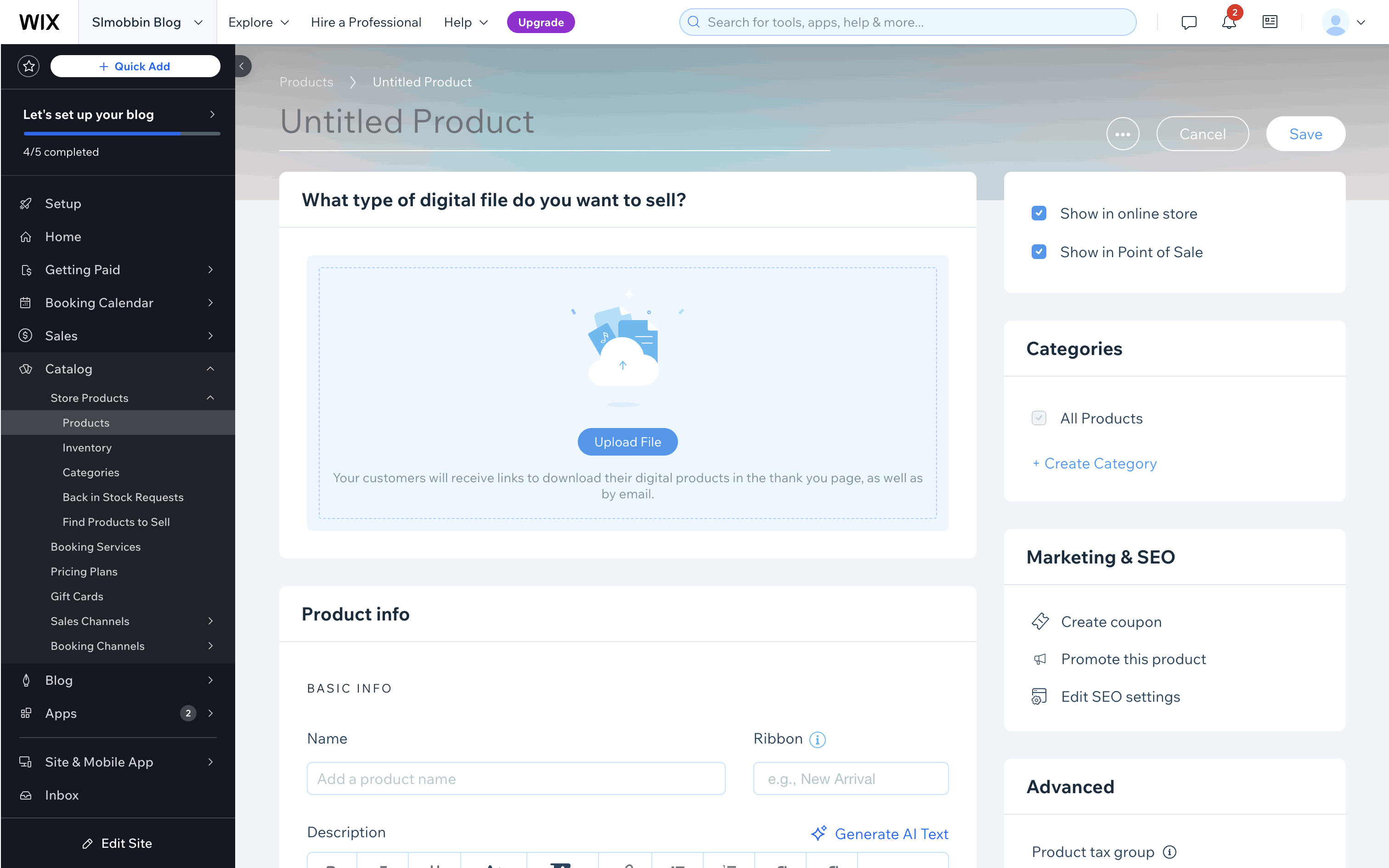 The user creates a new digital product by filling out a form with product details. The new product is then saved and displayed in the product list.