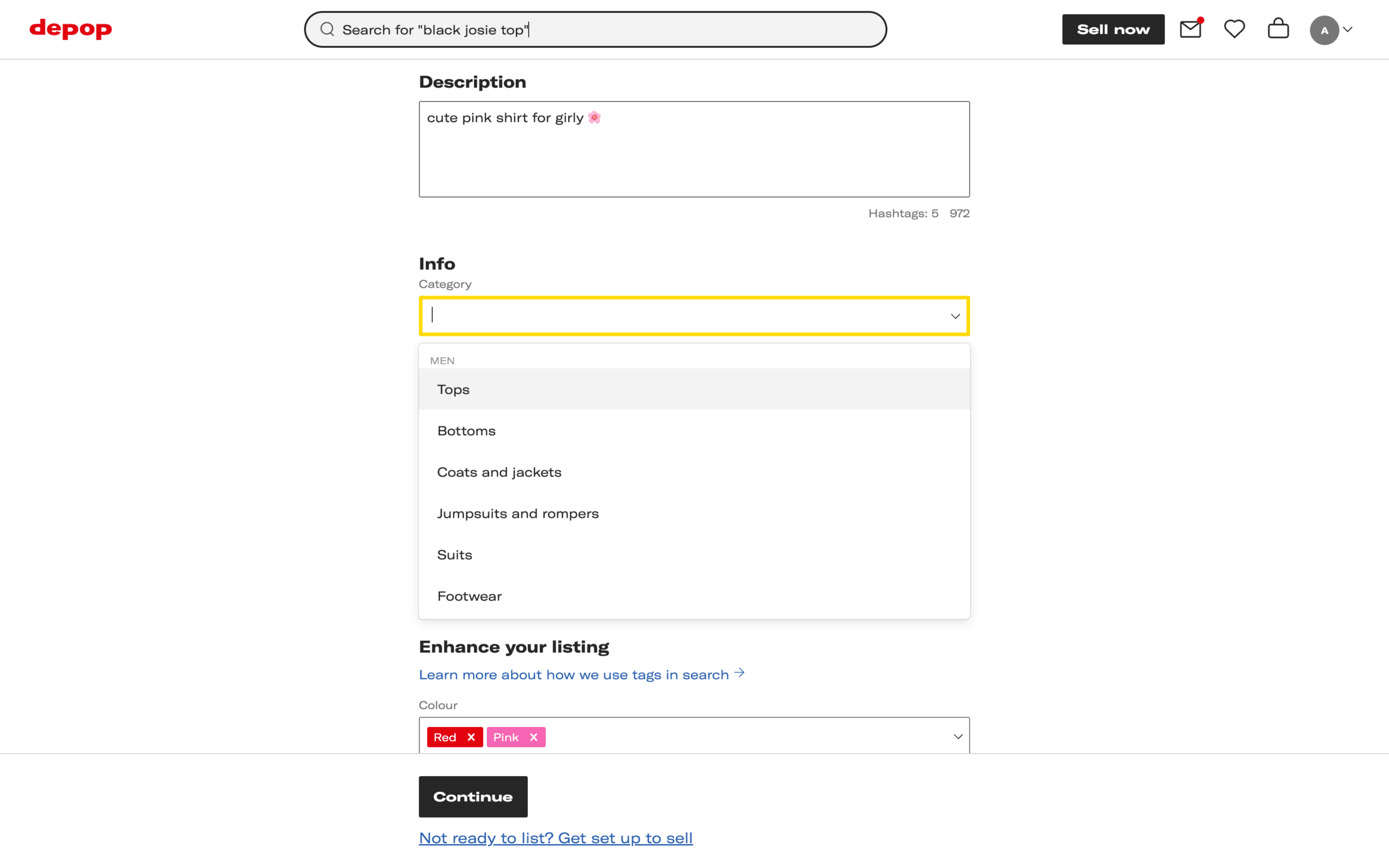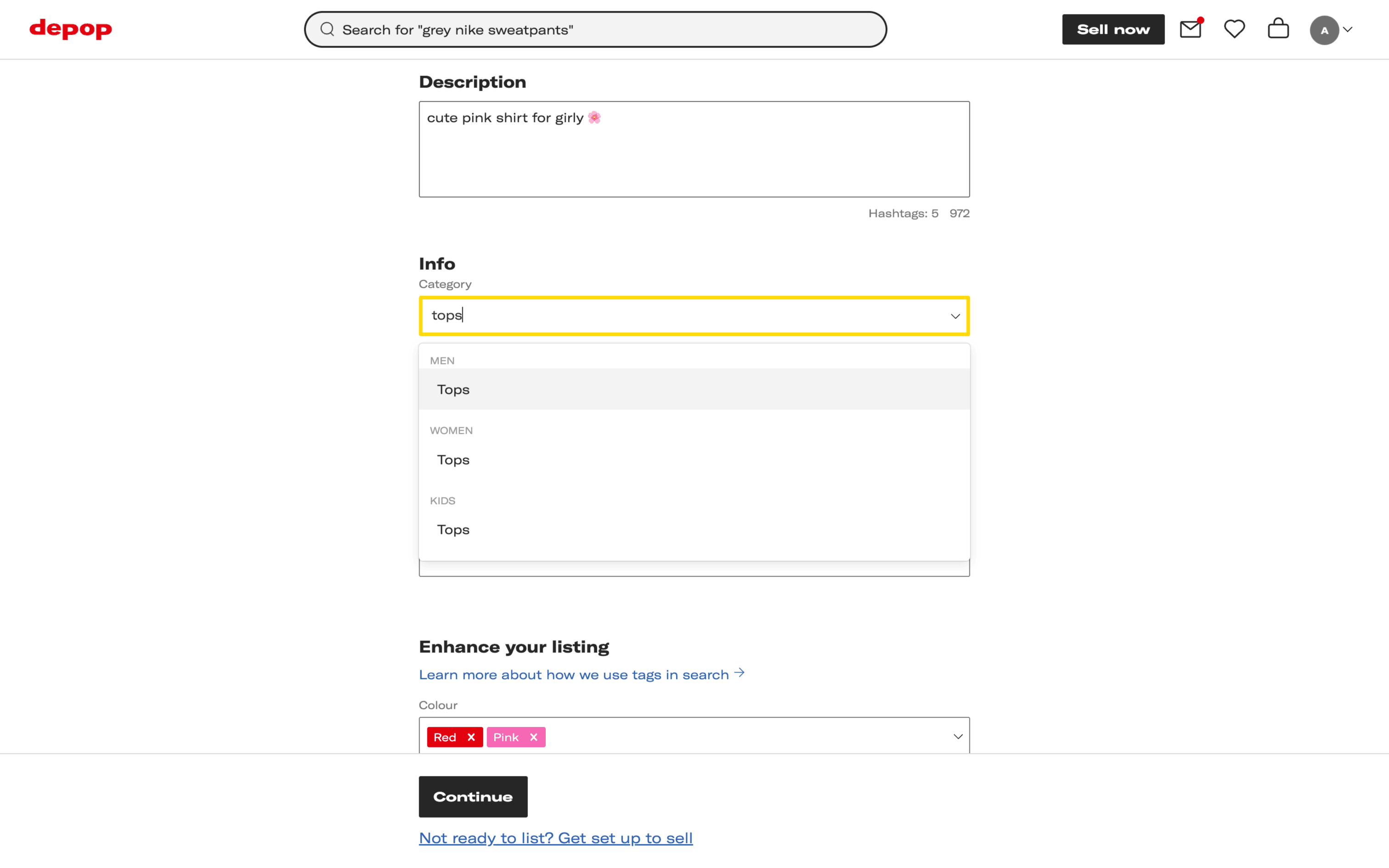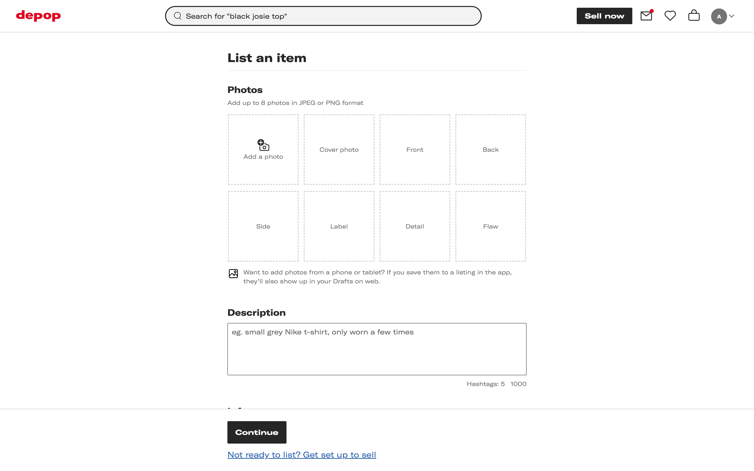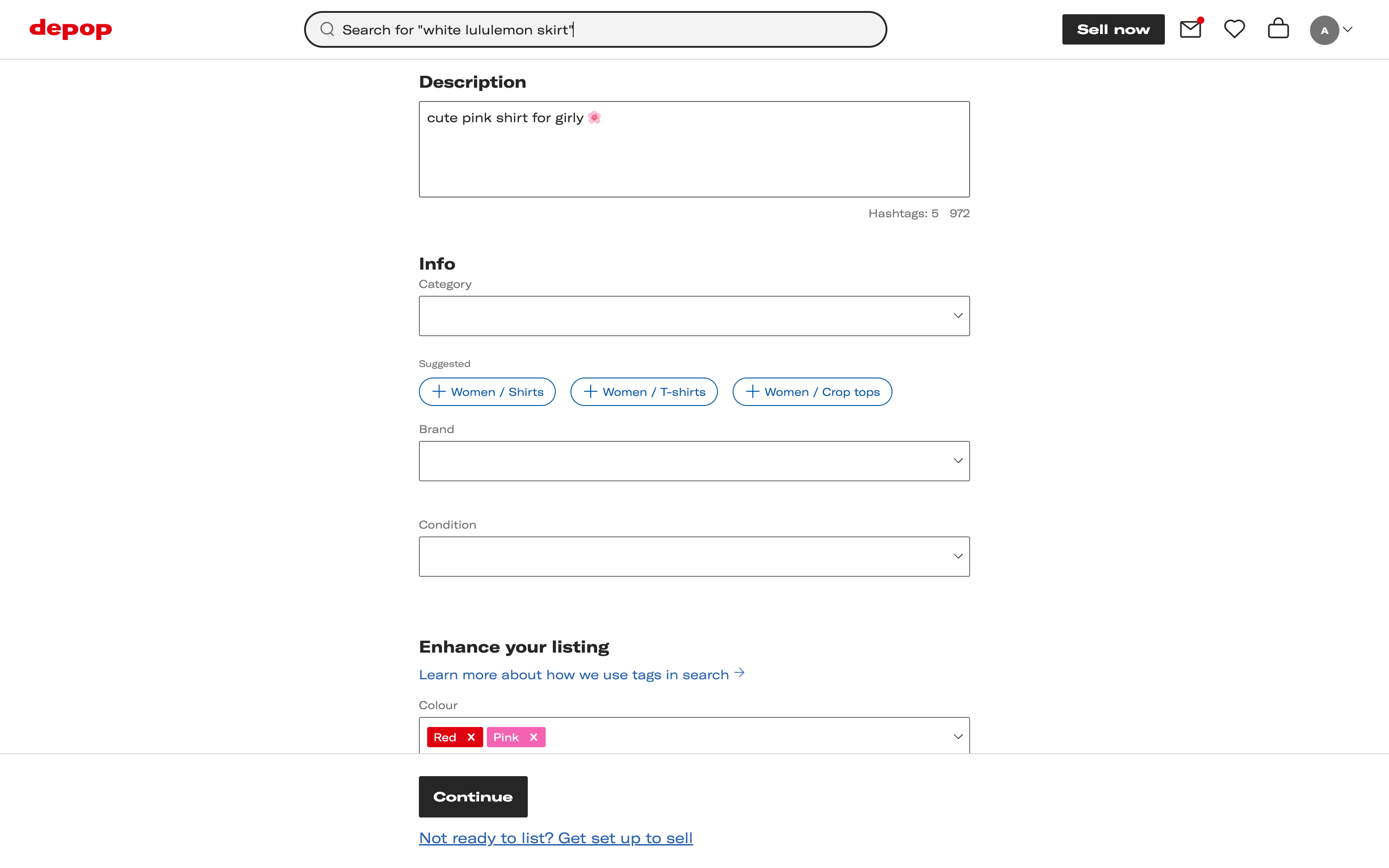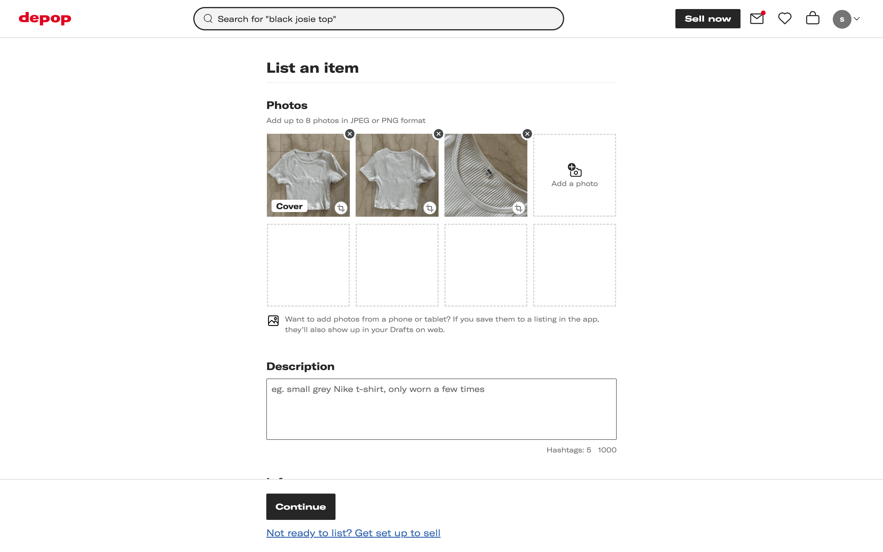 The user lists an item for sale by filling out the item listing form. They add photos, description, and other details before confirming the listing.