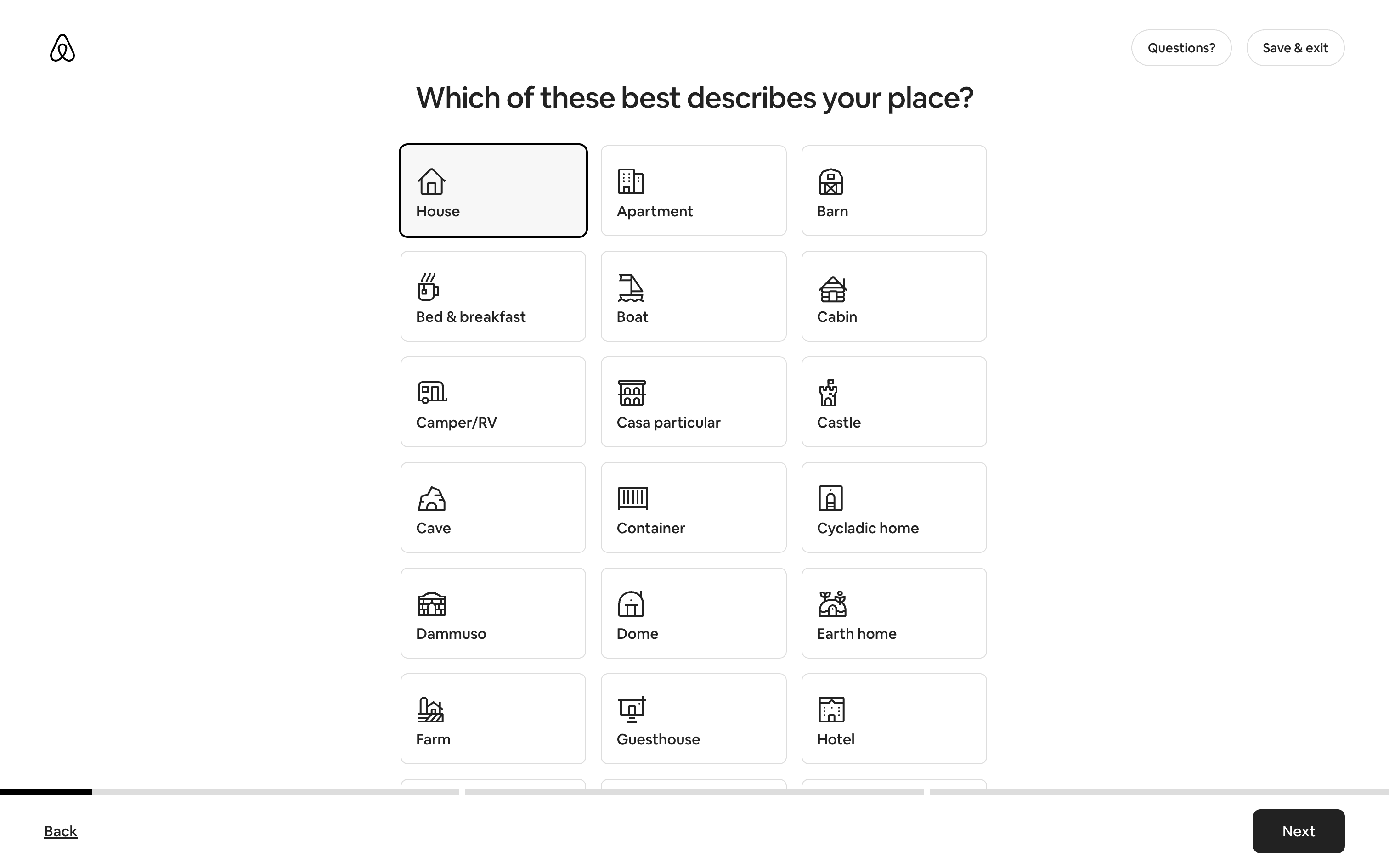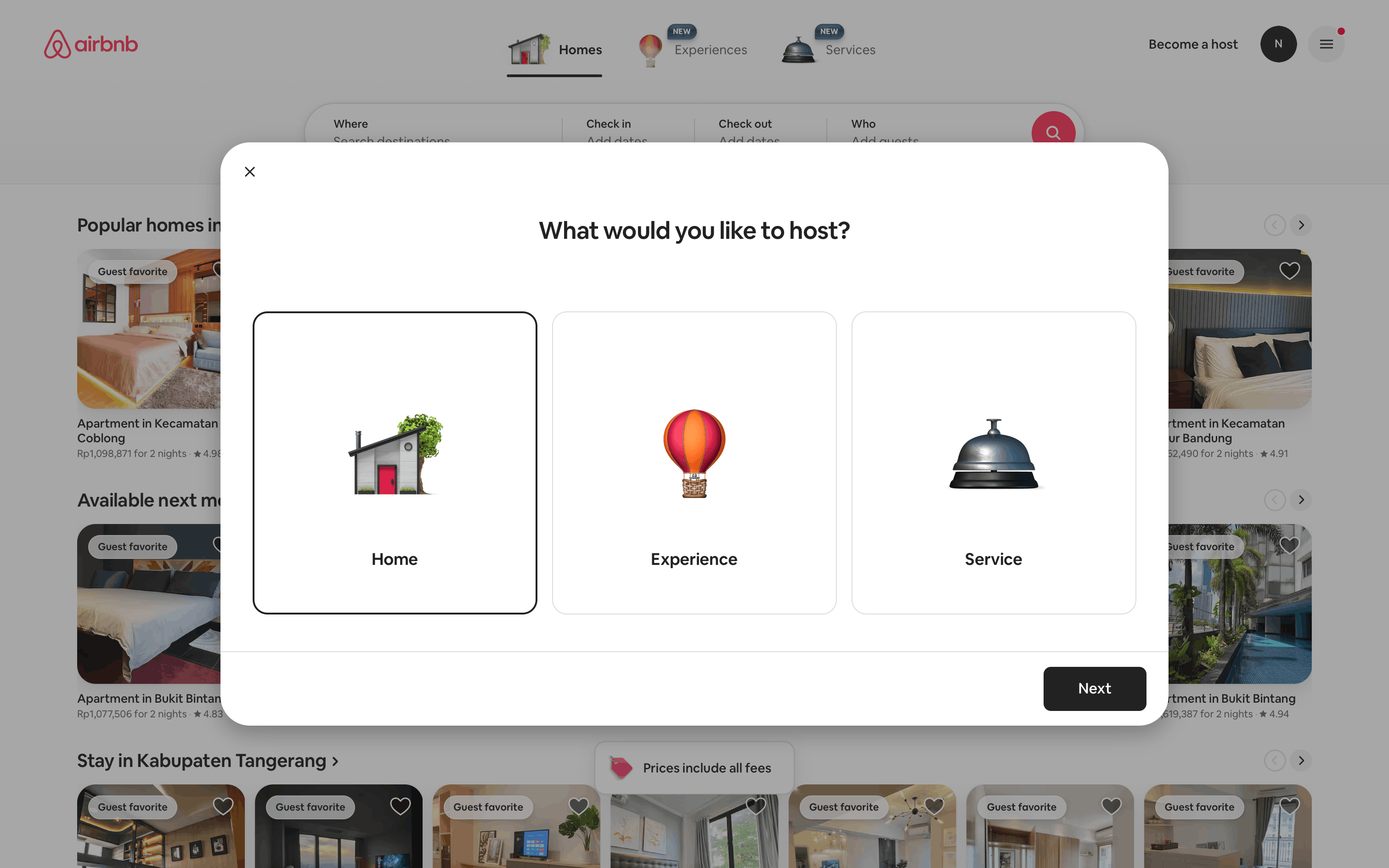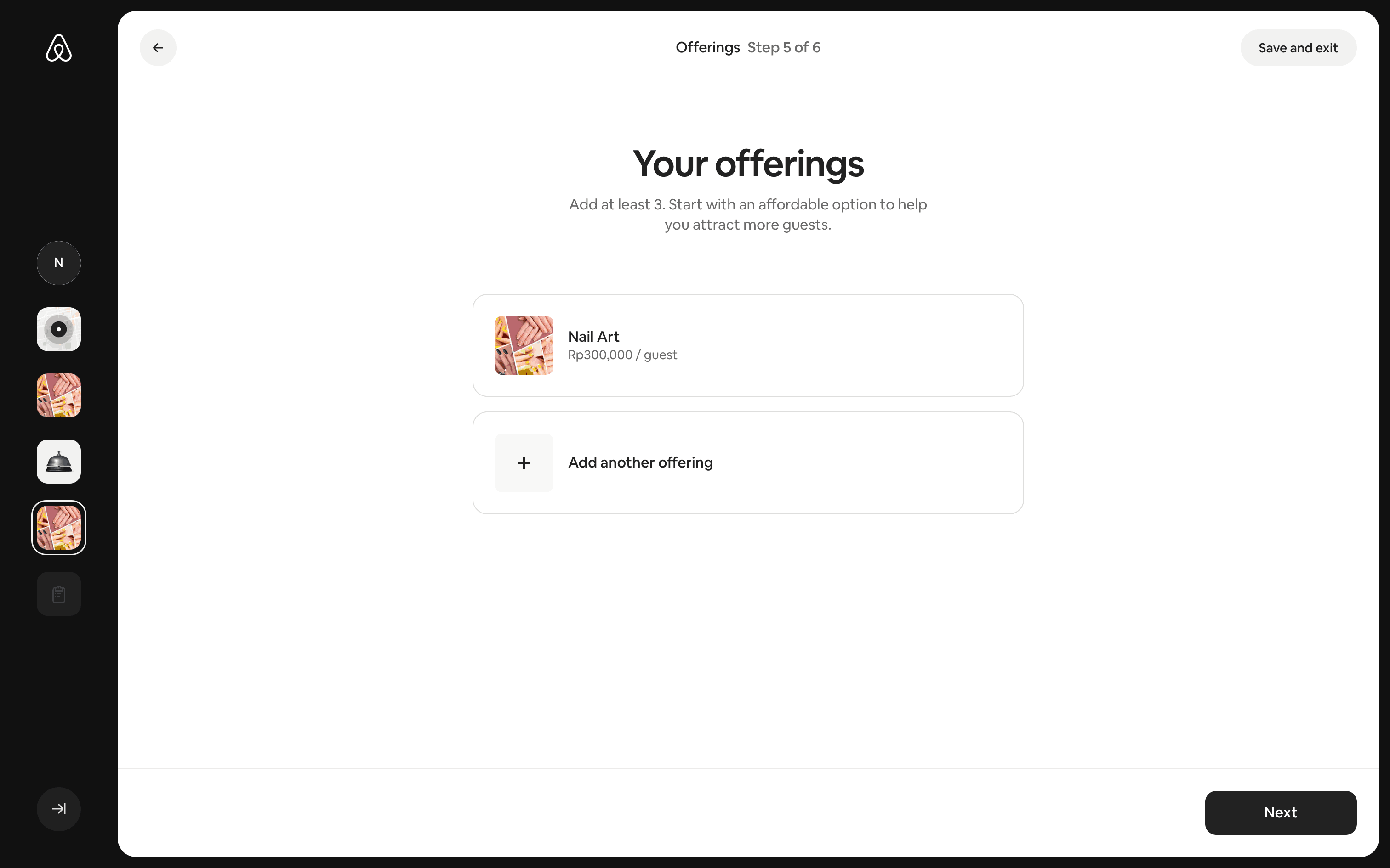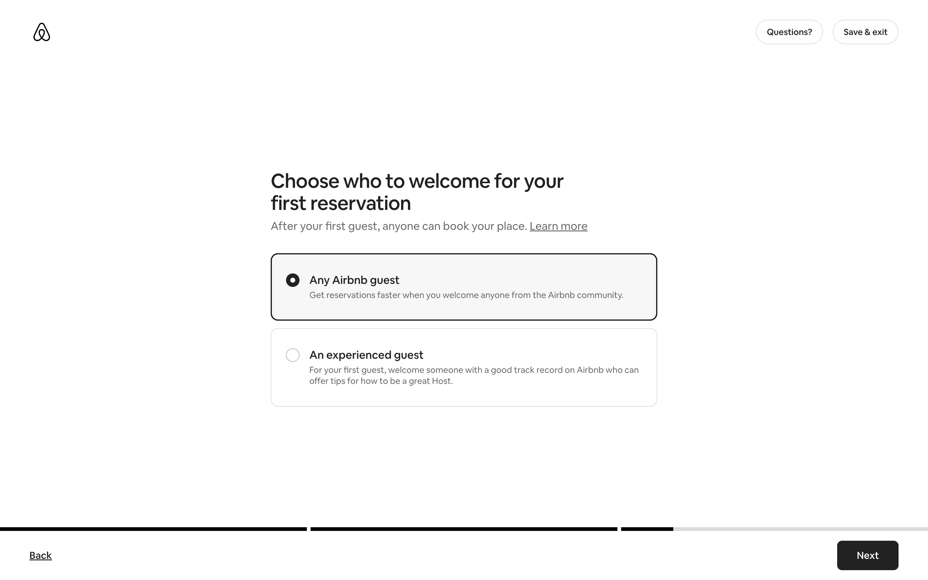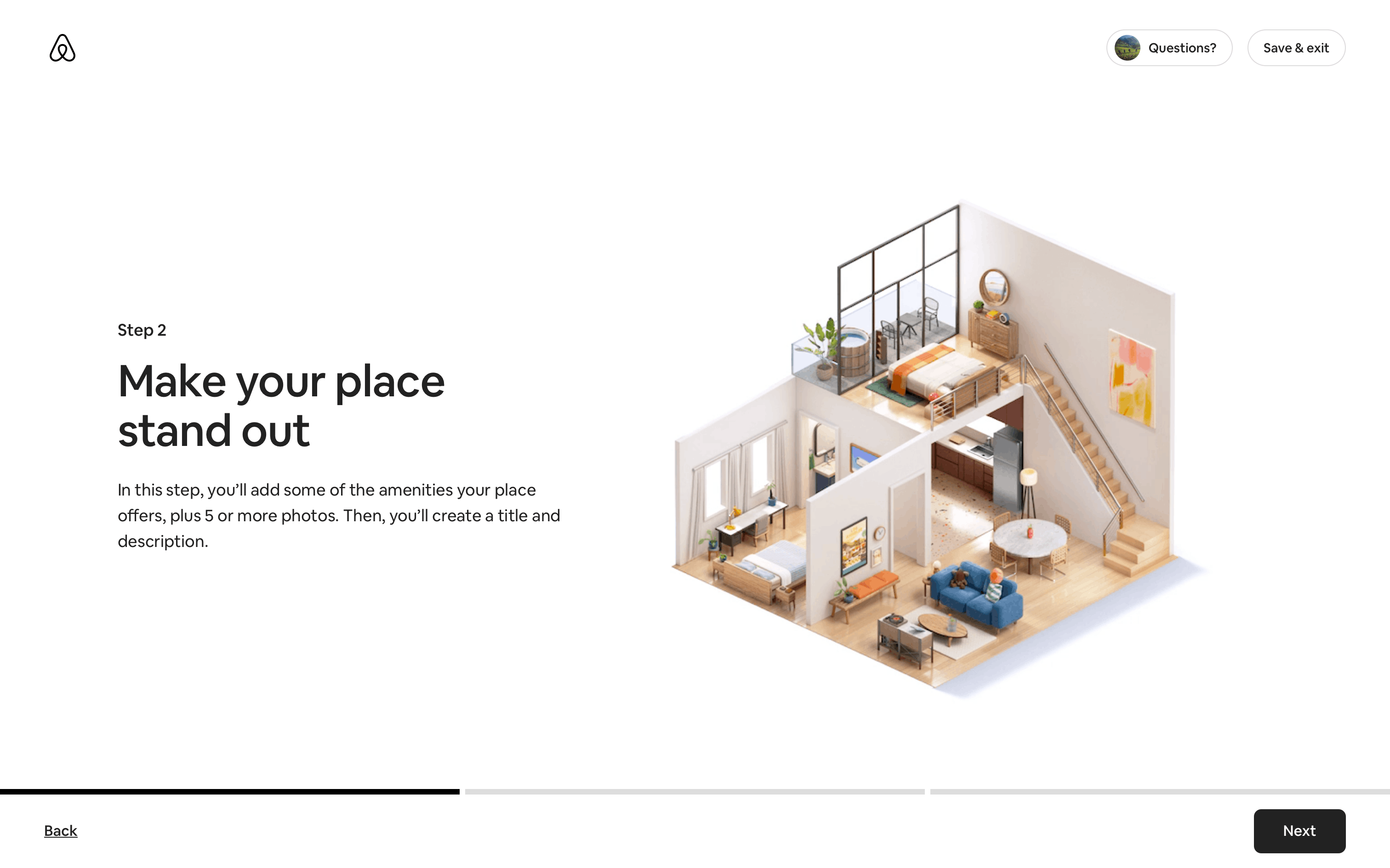 The user flow guides a user through the process of listing a home on Airbnb. It involves providing property details, setting prices, and sharing safety information.