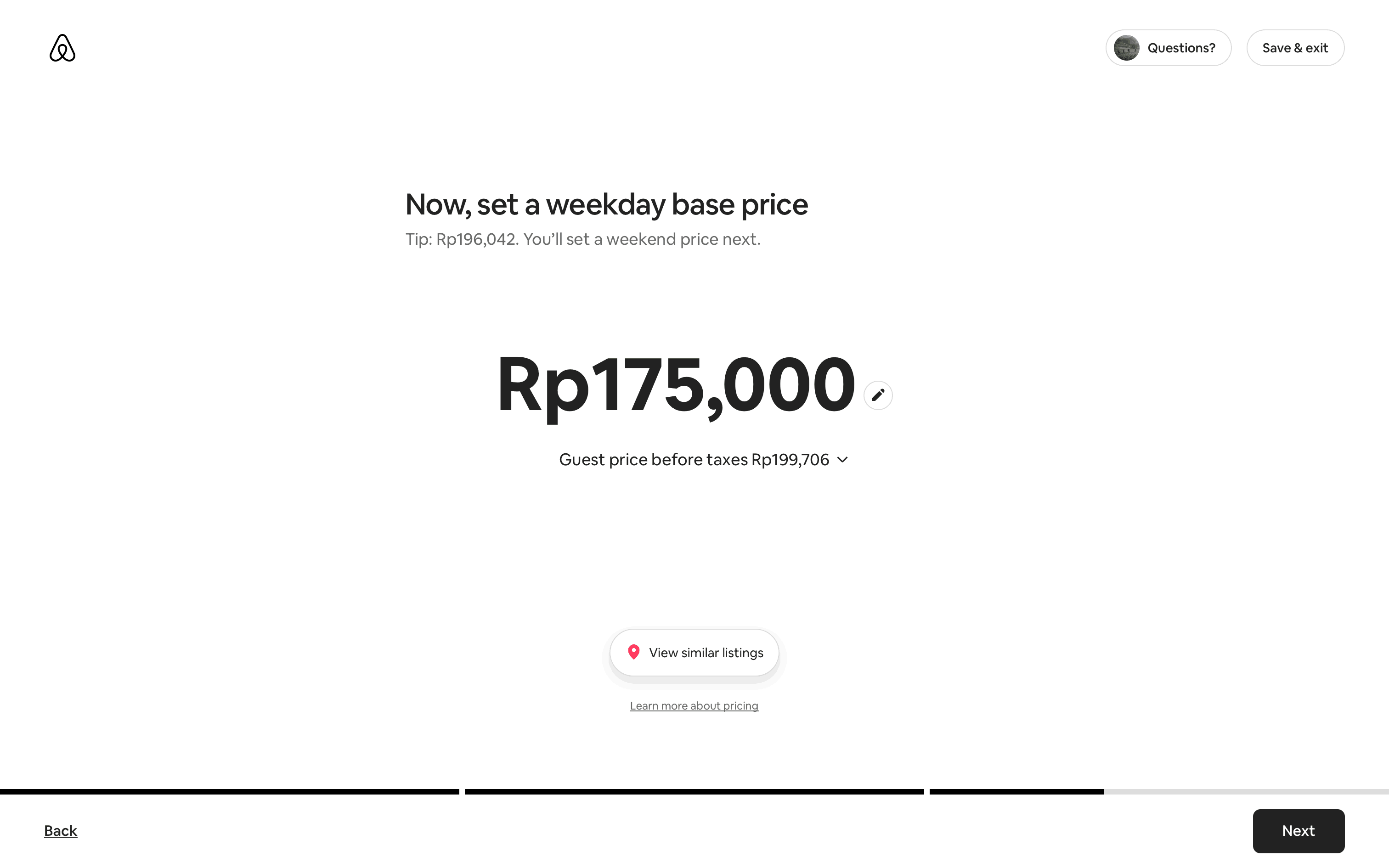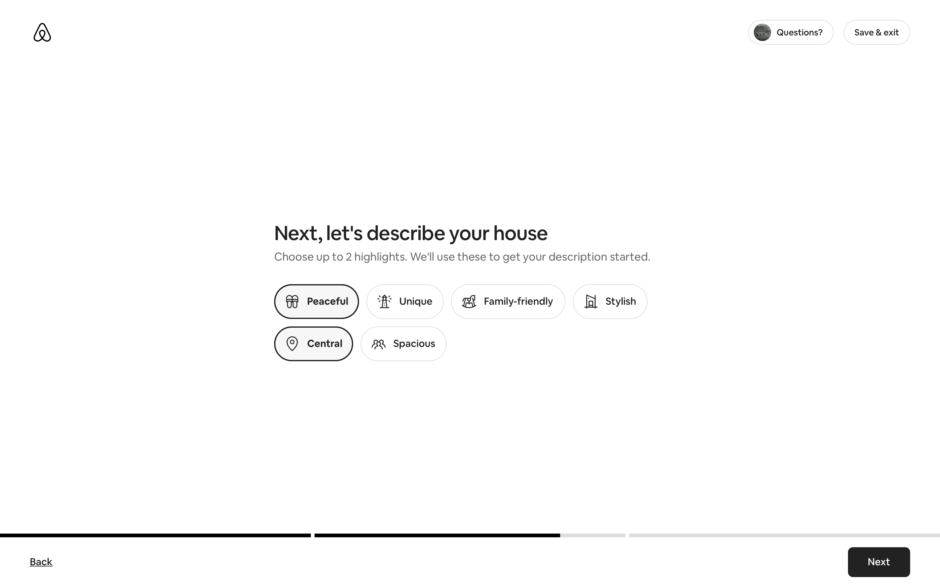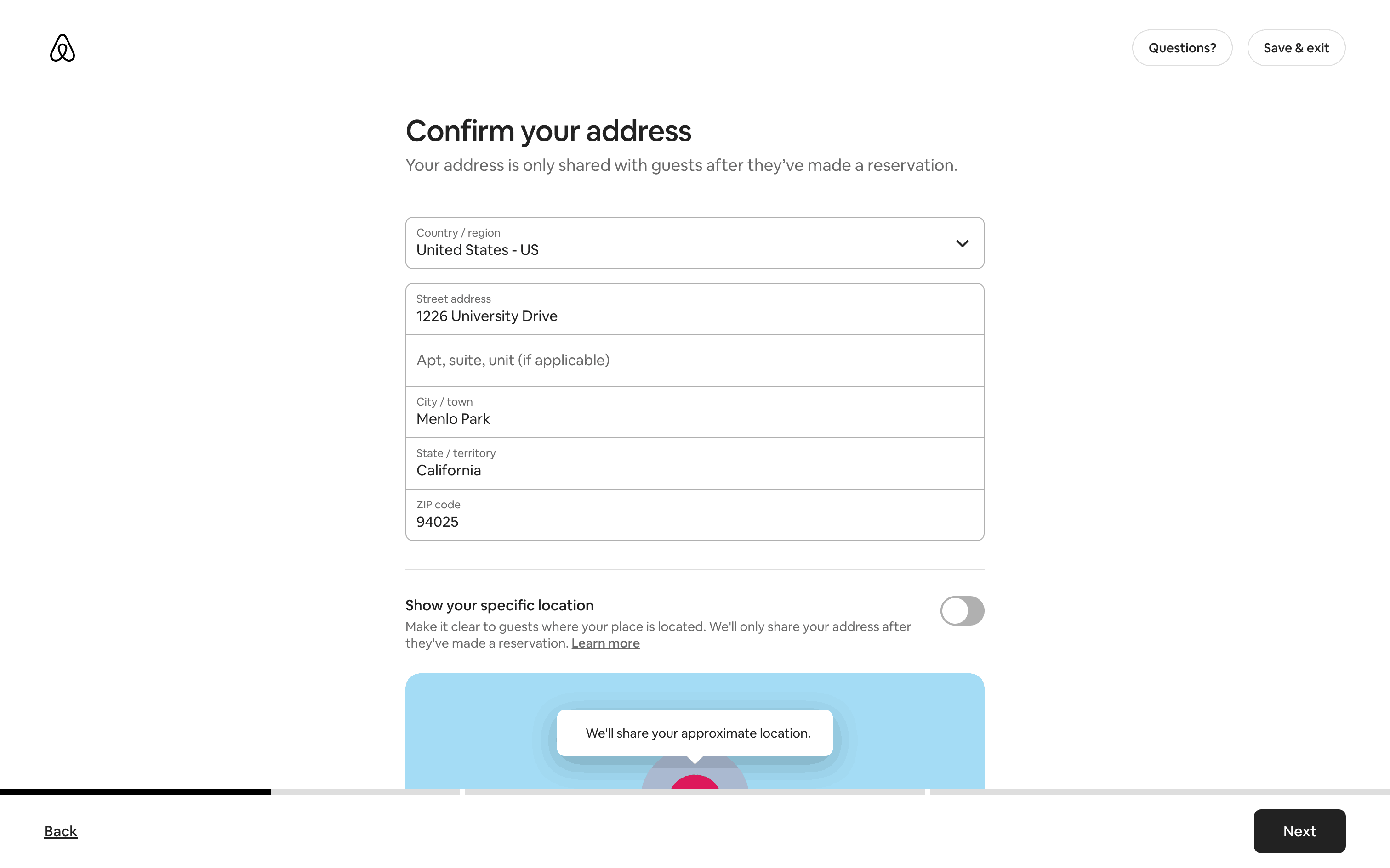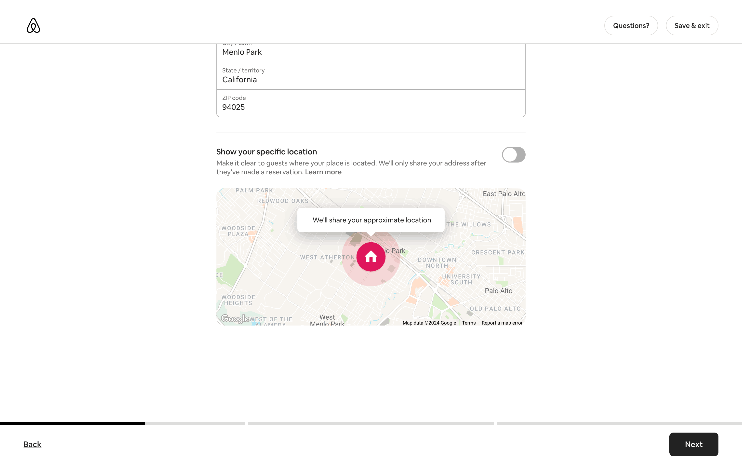 The user flow guides a user through the process of listing a home on Airbnb. It involves providing property details, setting prices, and sharing safety information.
