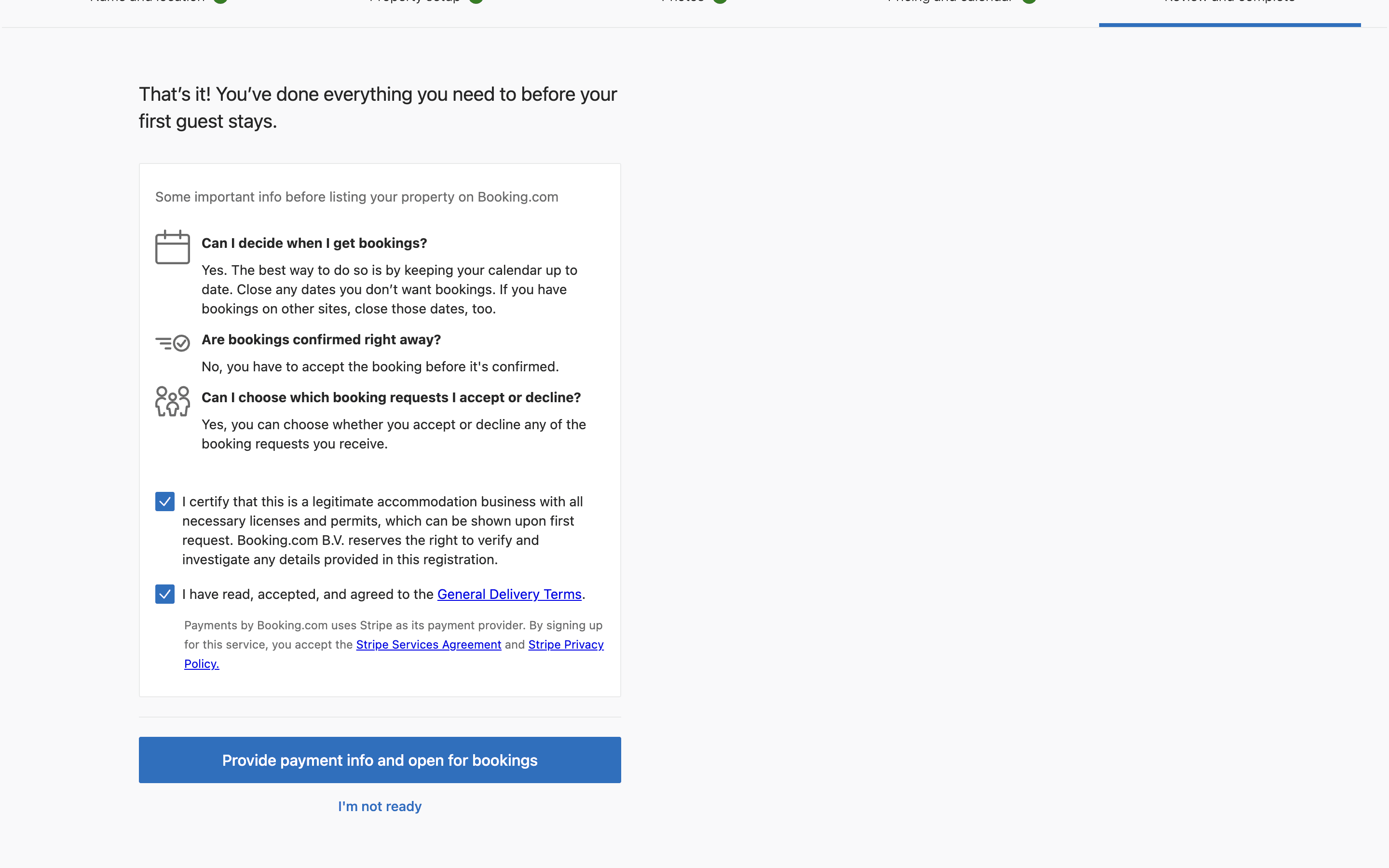 The user configures listing options, agrees to terms, and completes the listing. They are then redirected to their dashboard.