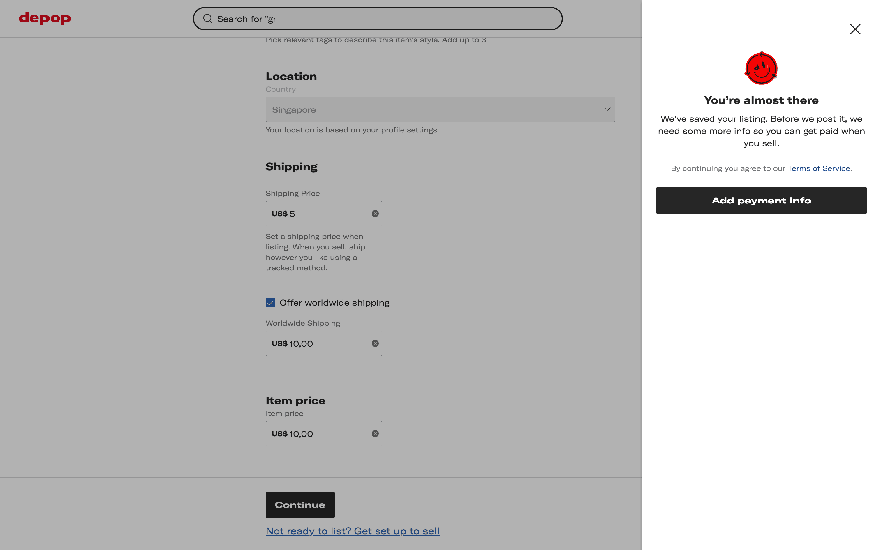 Listing an itemon