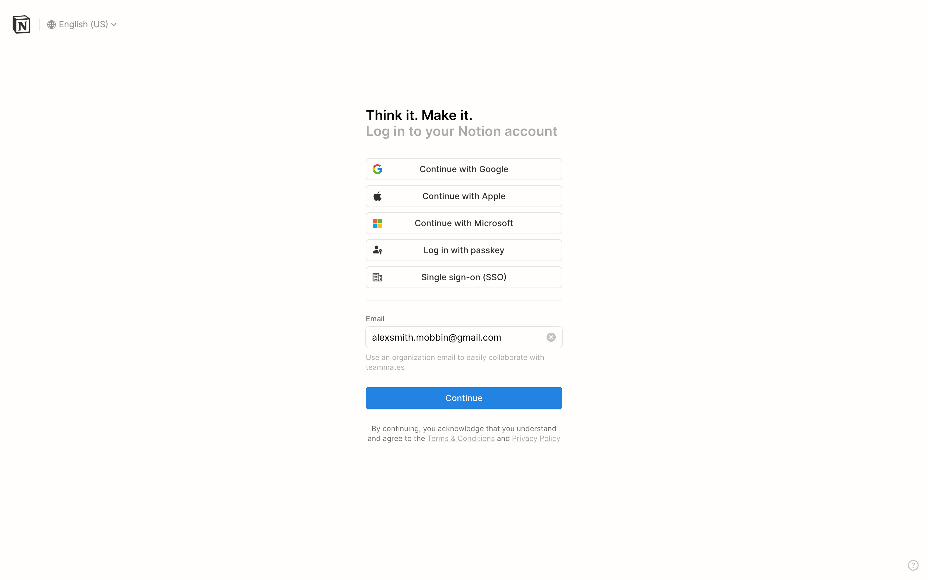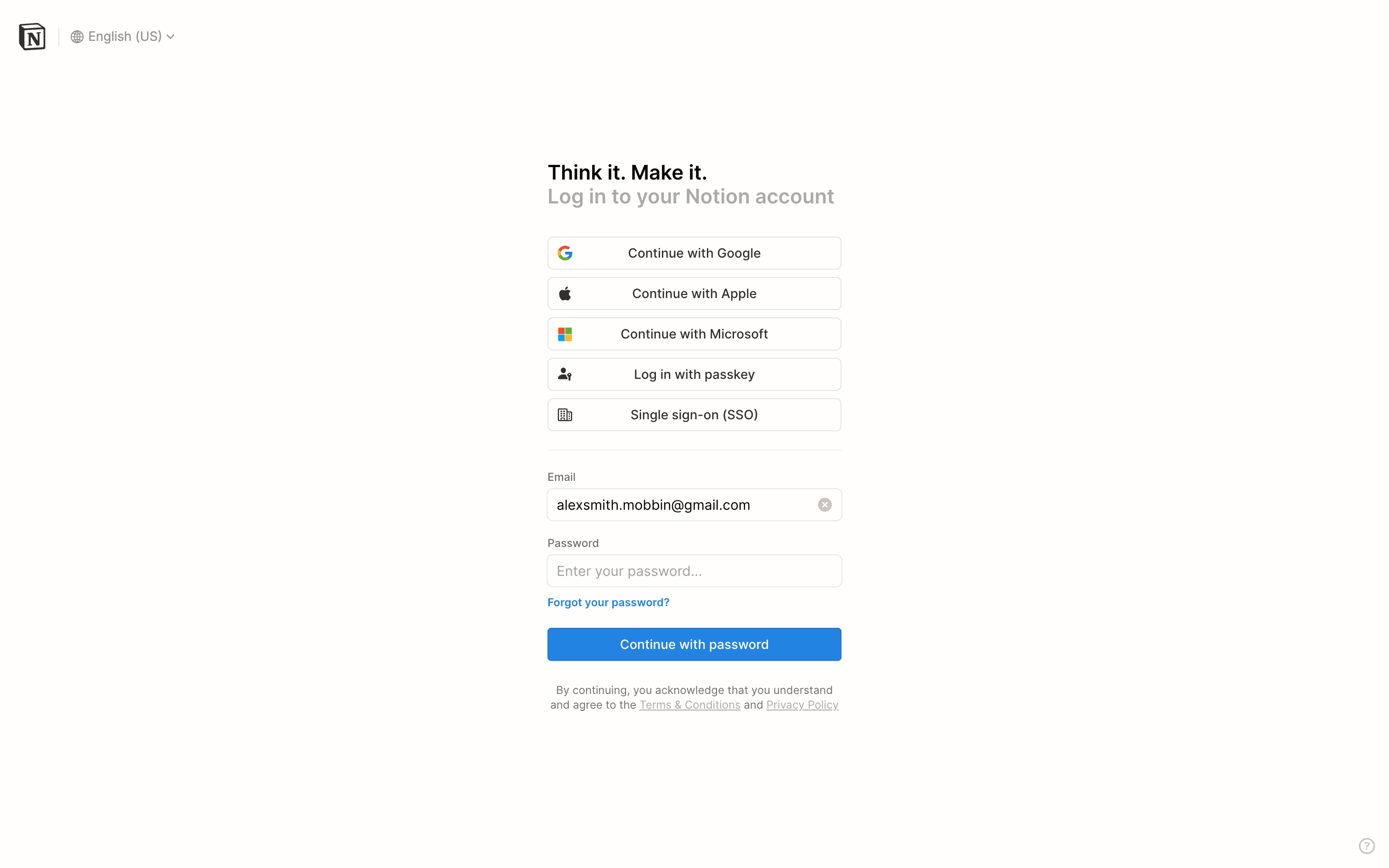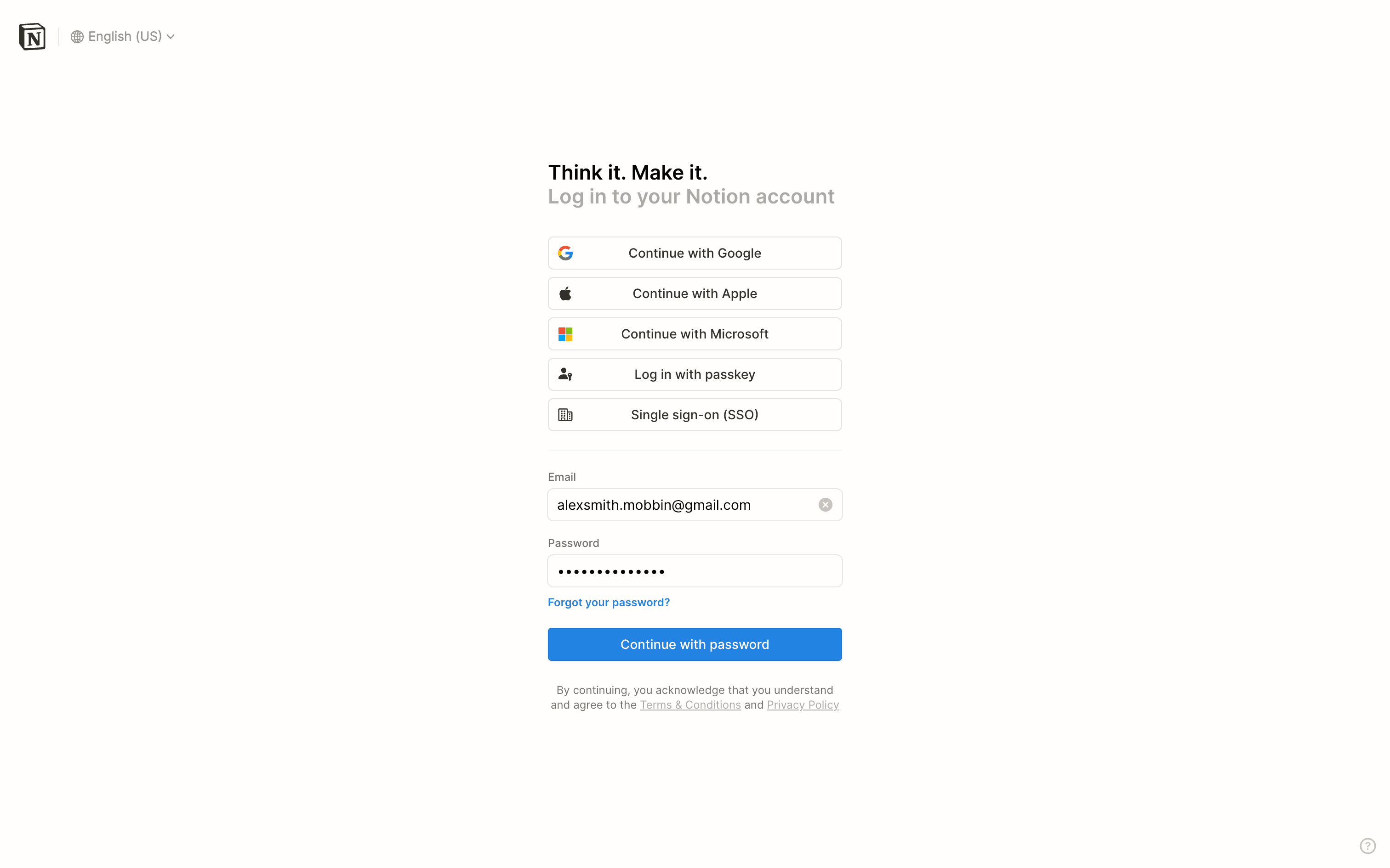 The user navigates to the Notion login page, enters credentials, and successfully logs in. They are then redirected to their Notion workspace.
