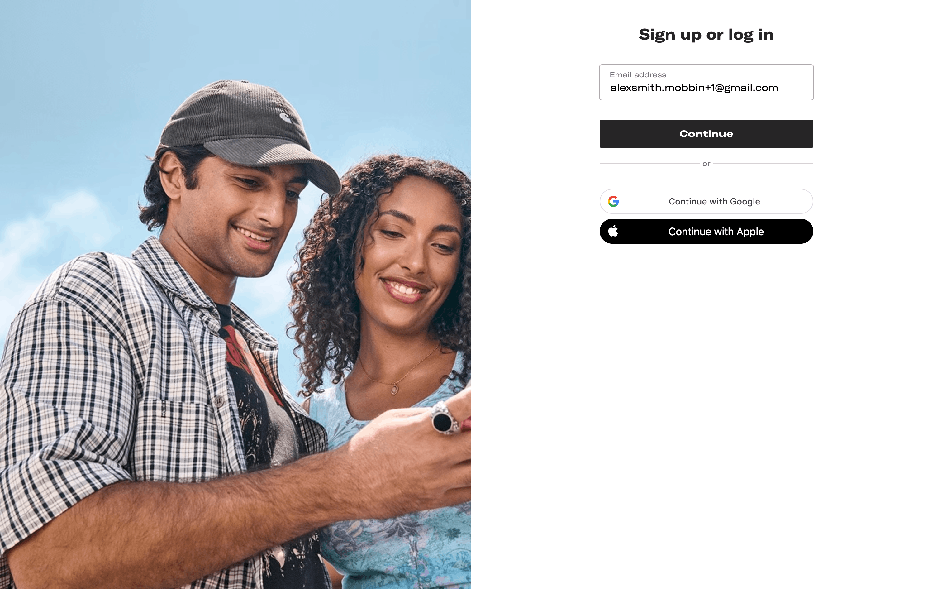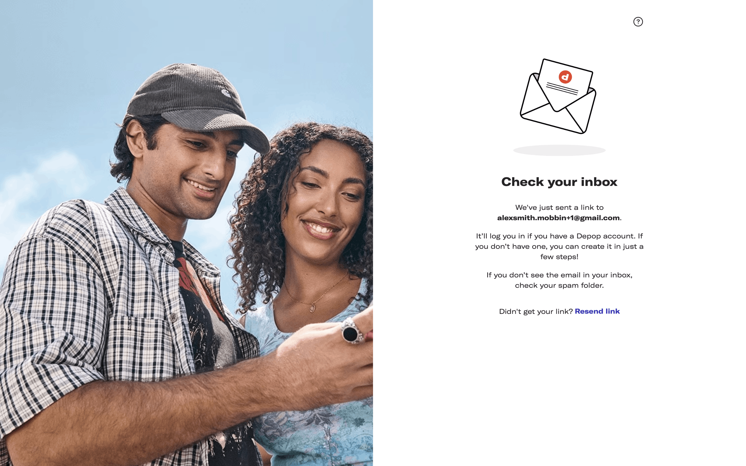 The user logs in by entering their email, receiving a link, and is then redirected to the logged-in homepage. This showcases a passwordless login flow.