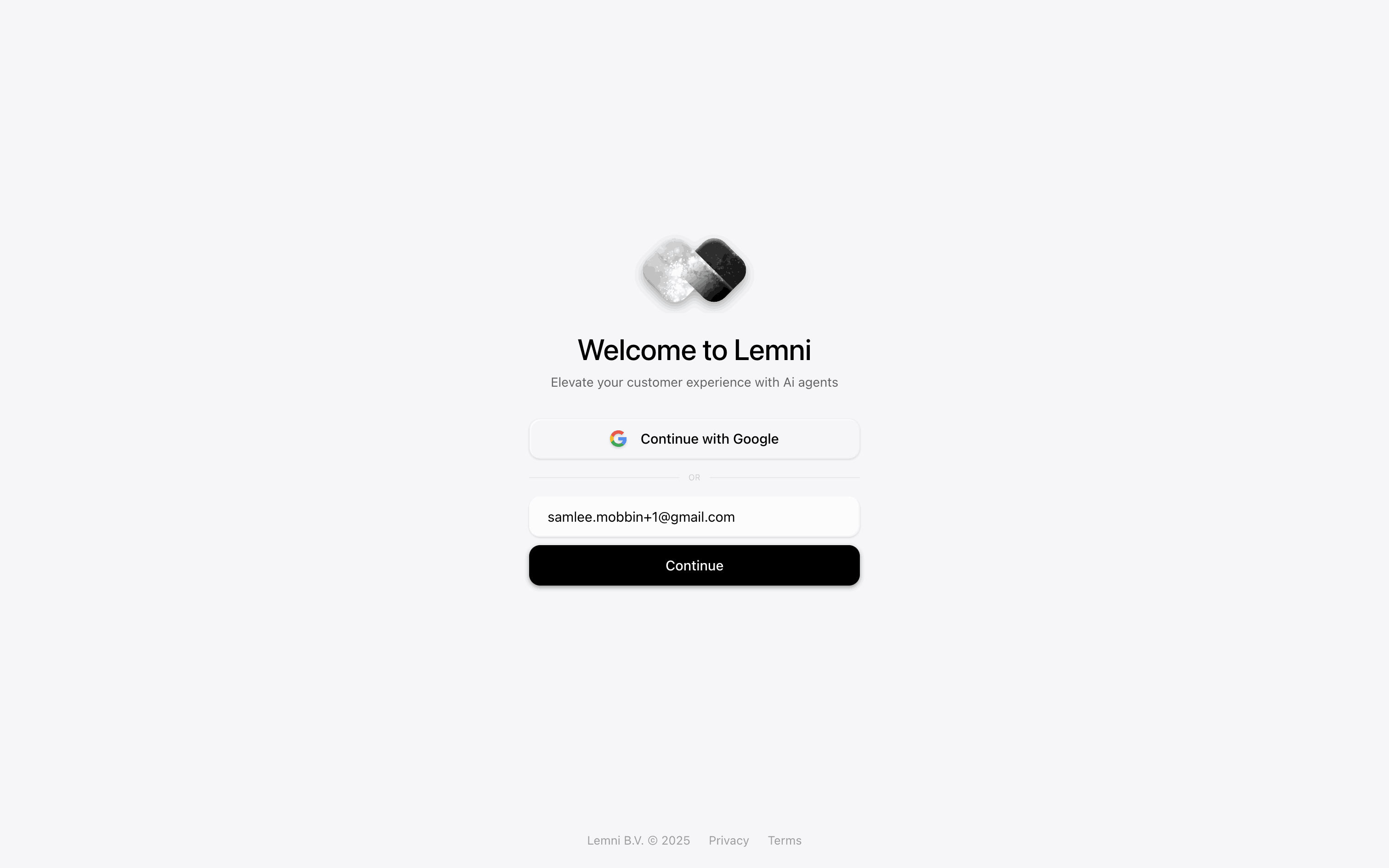The user logs in by entering their email, verifying the code sent to their email, and is then directed to the application homepage.