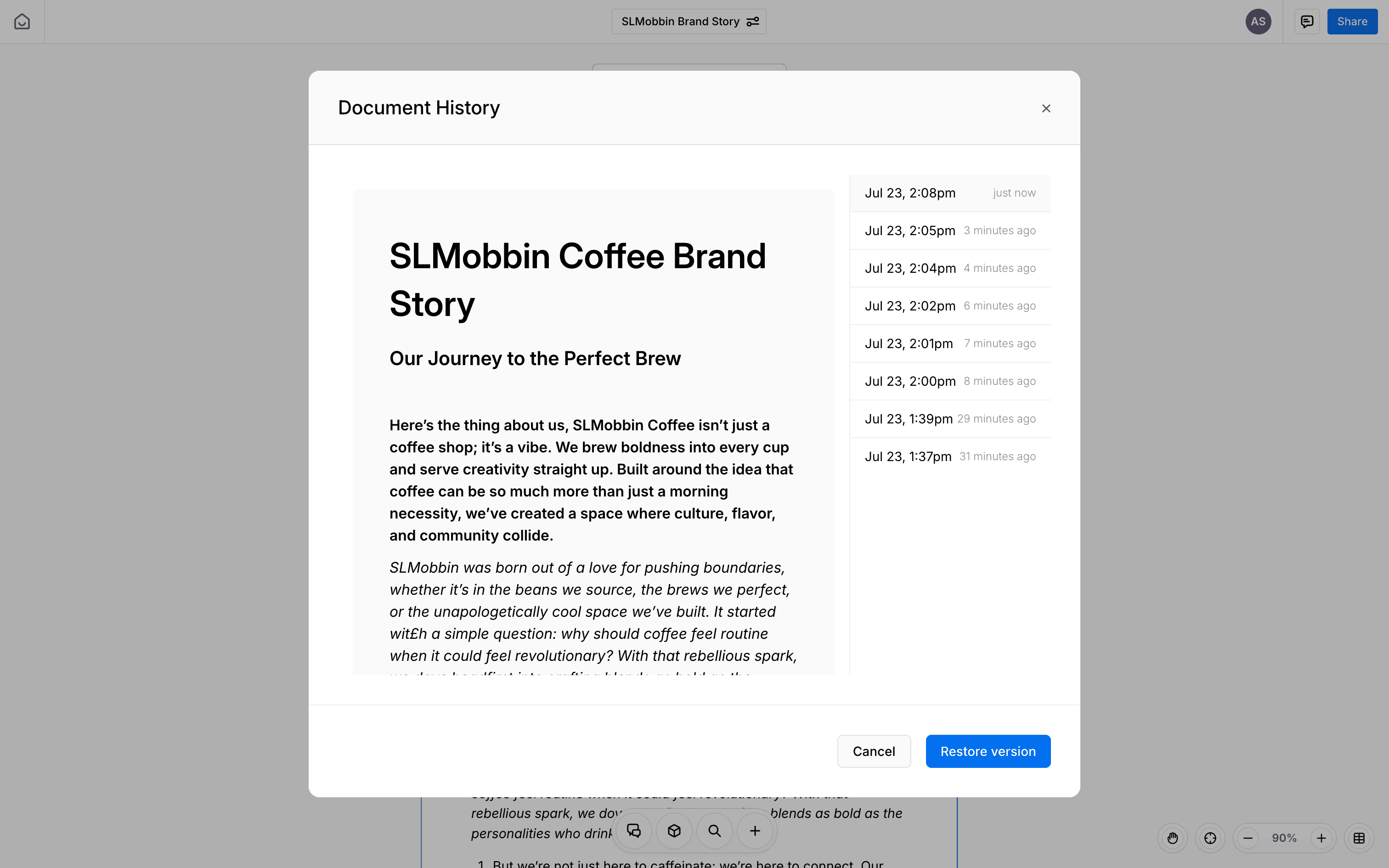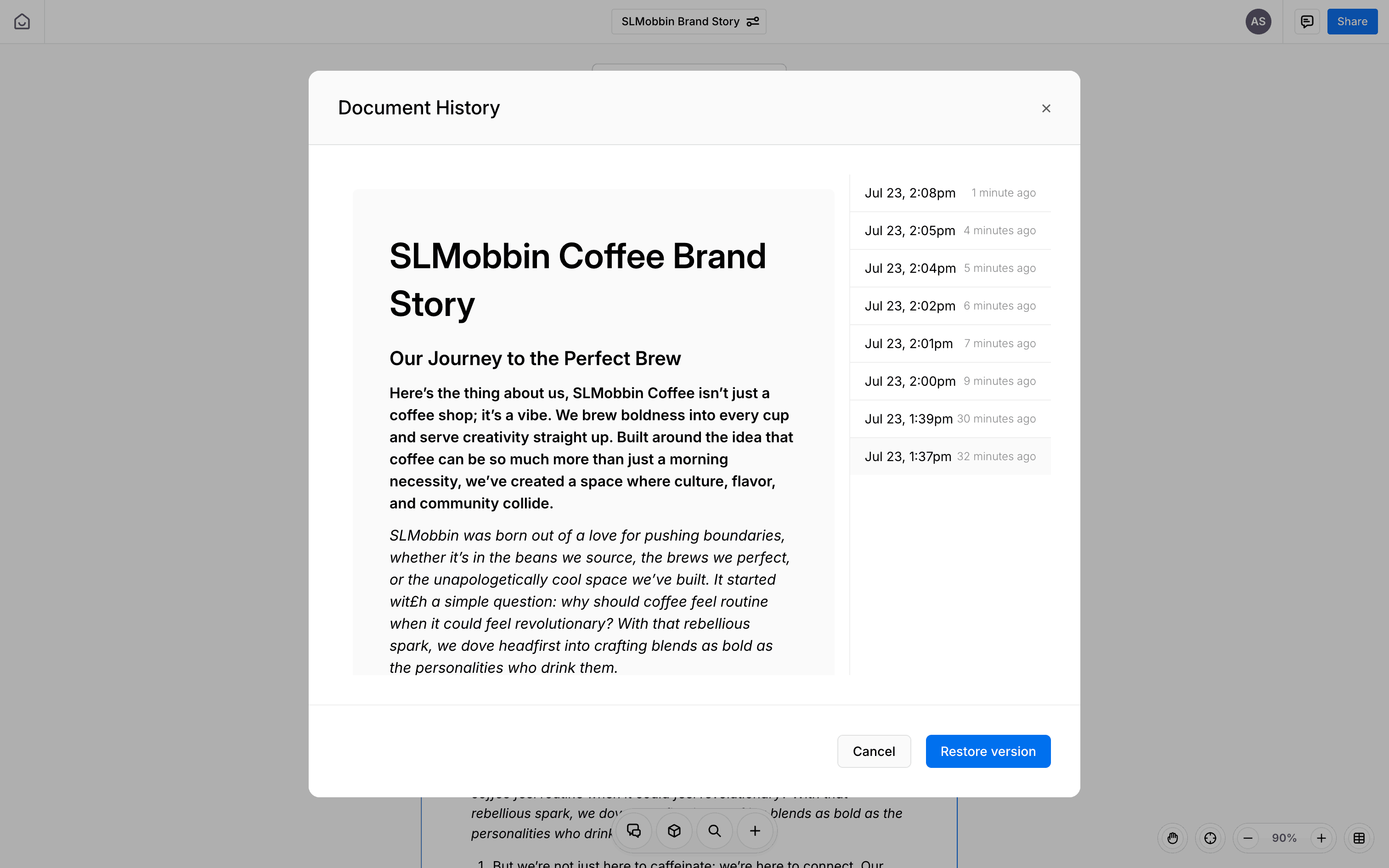 The user accesses the document's version history, selects a specific version, and restores the document to that selected version.