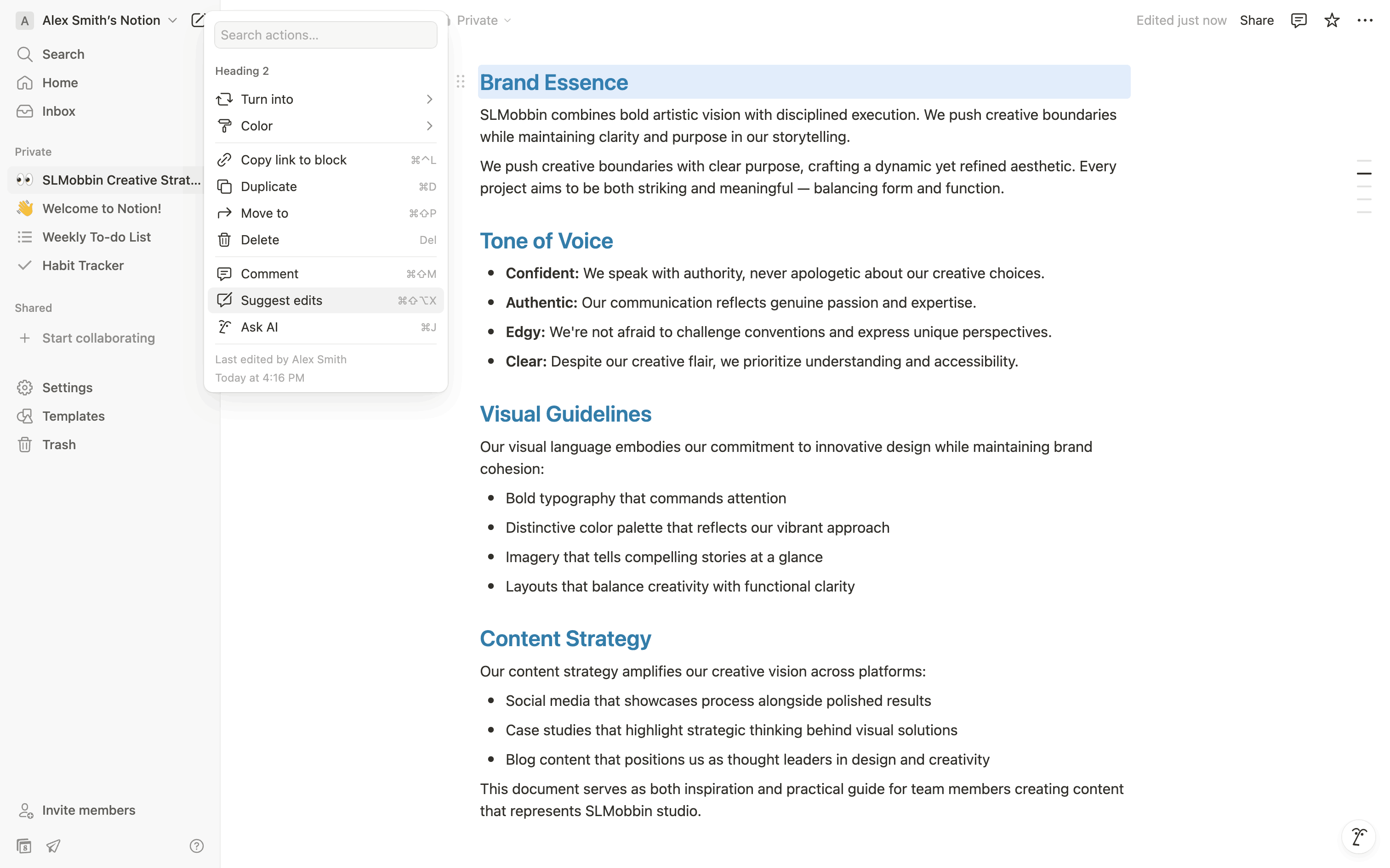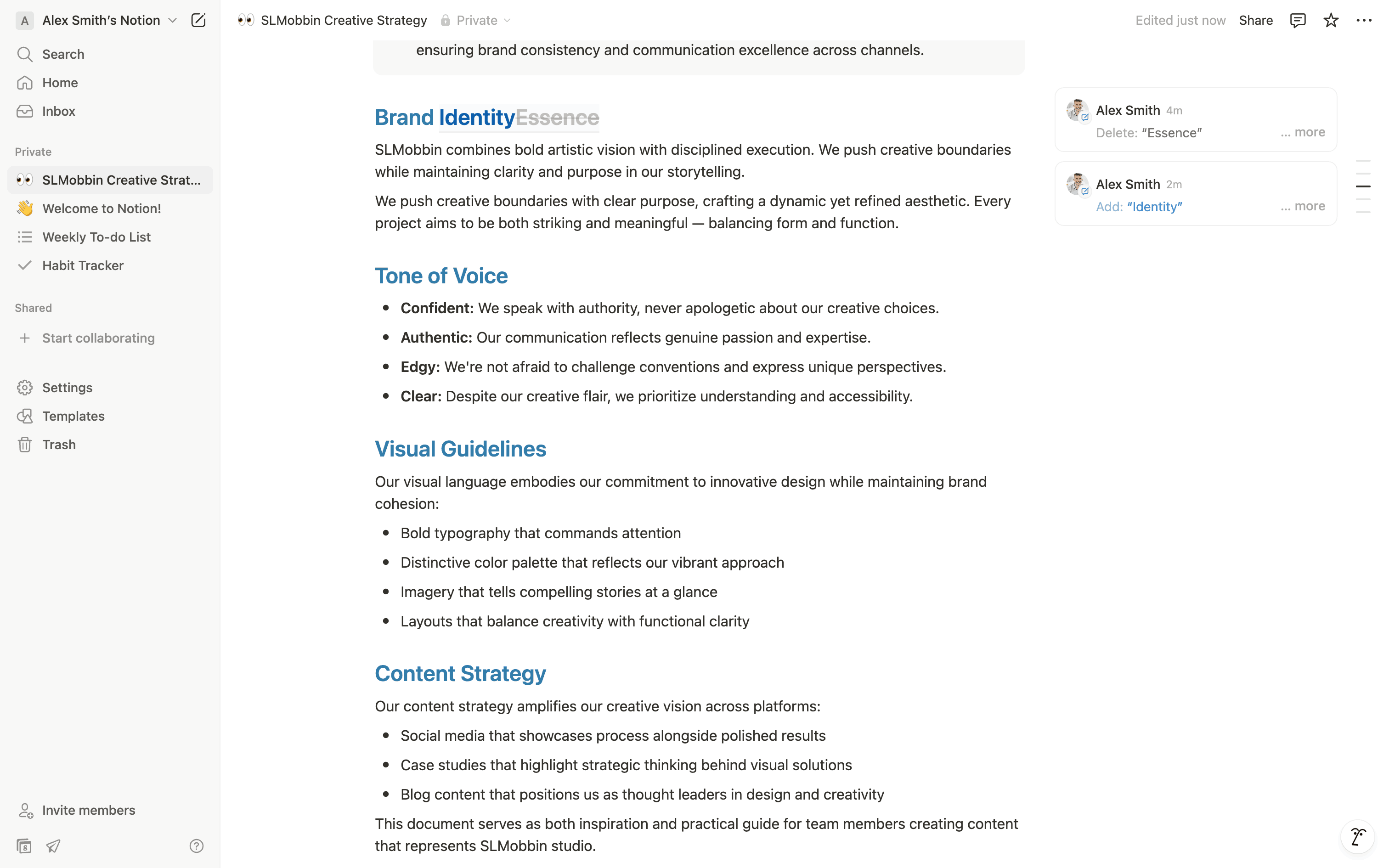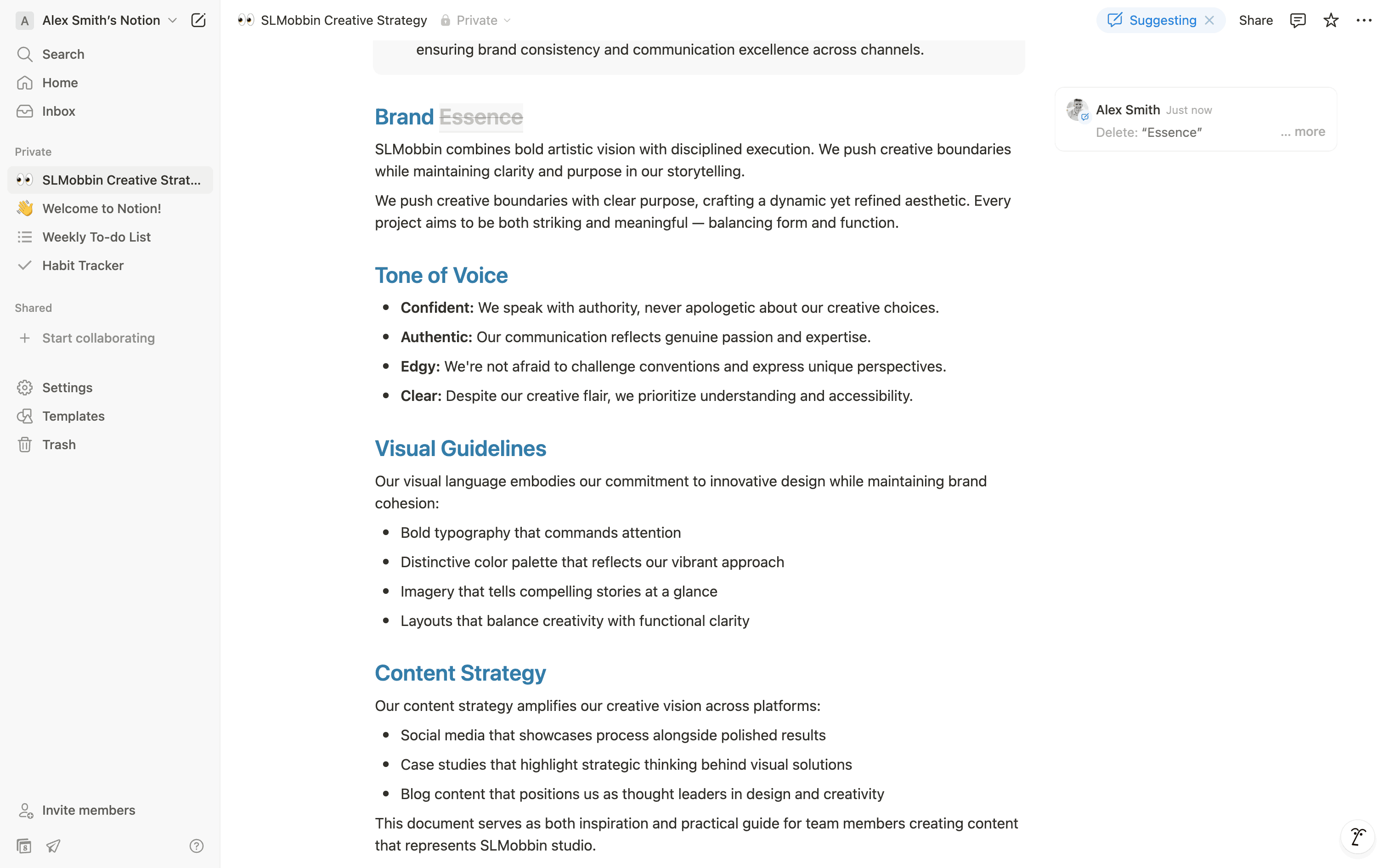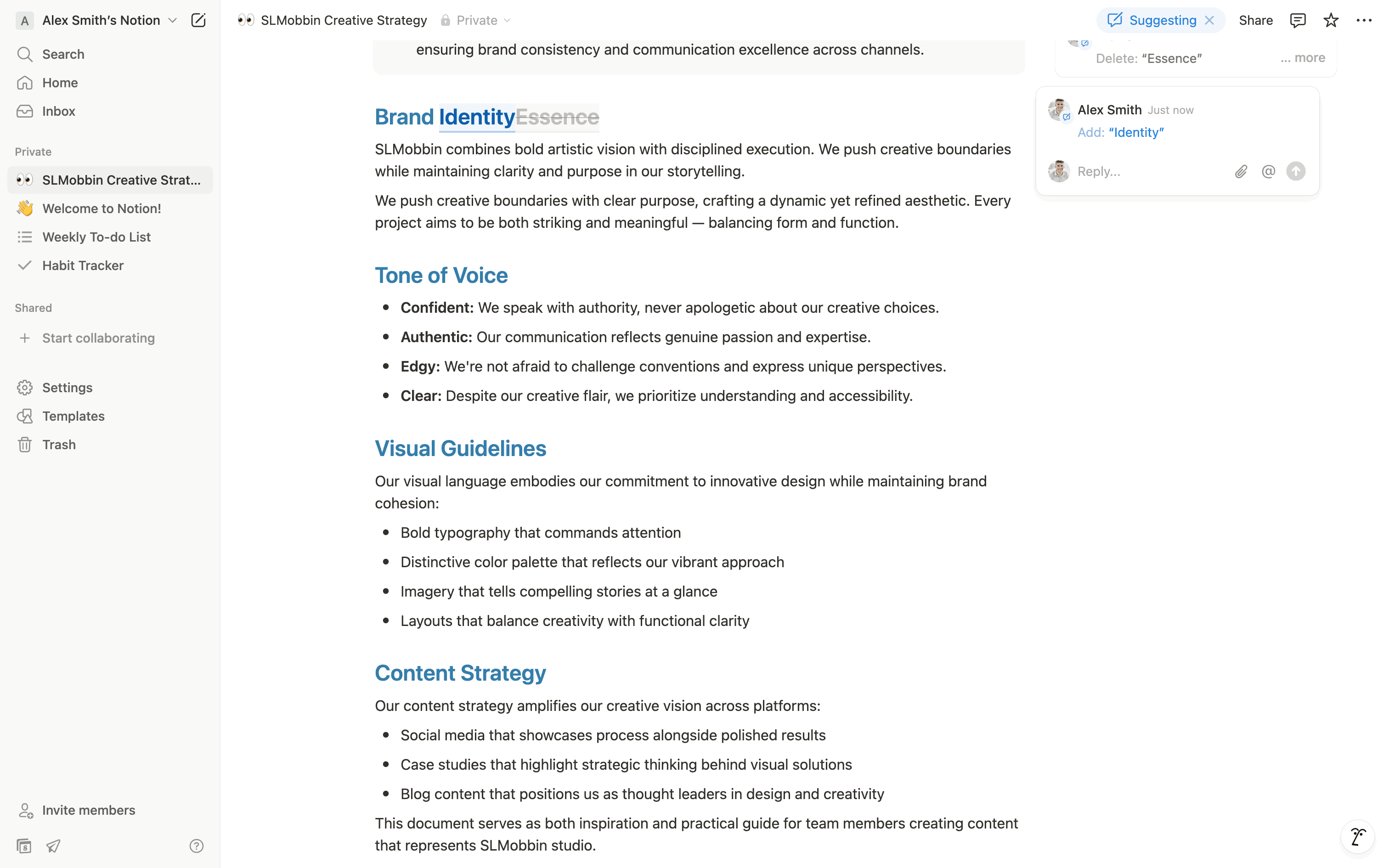 The user suggests an edit to a document by selecting text, proposing a deletion, and adding new text. The suggested changes are then displayed.