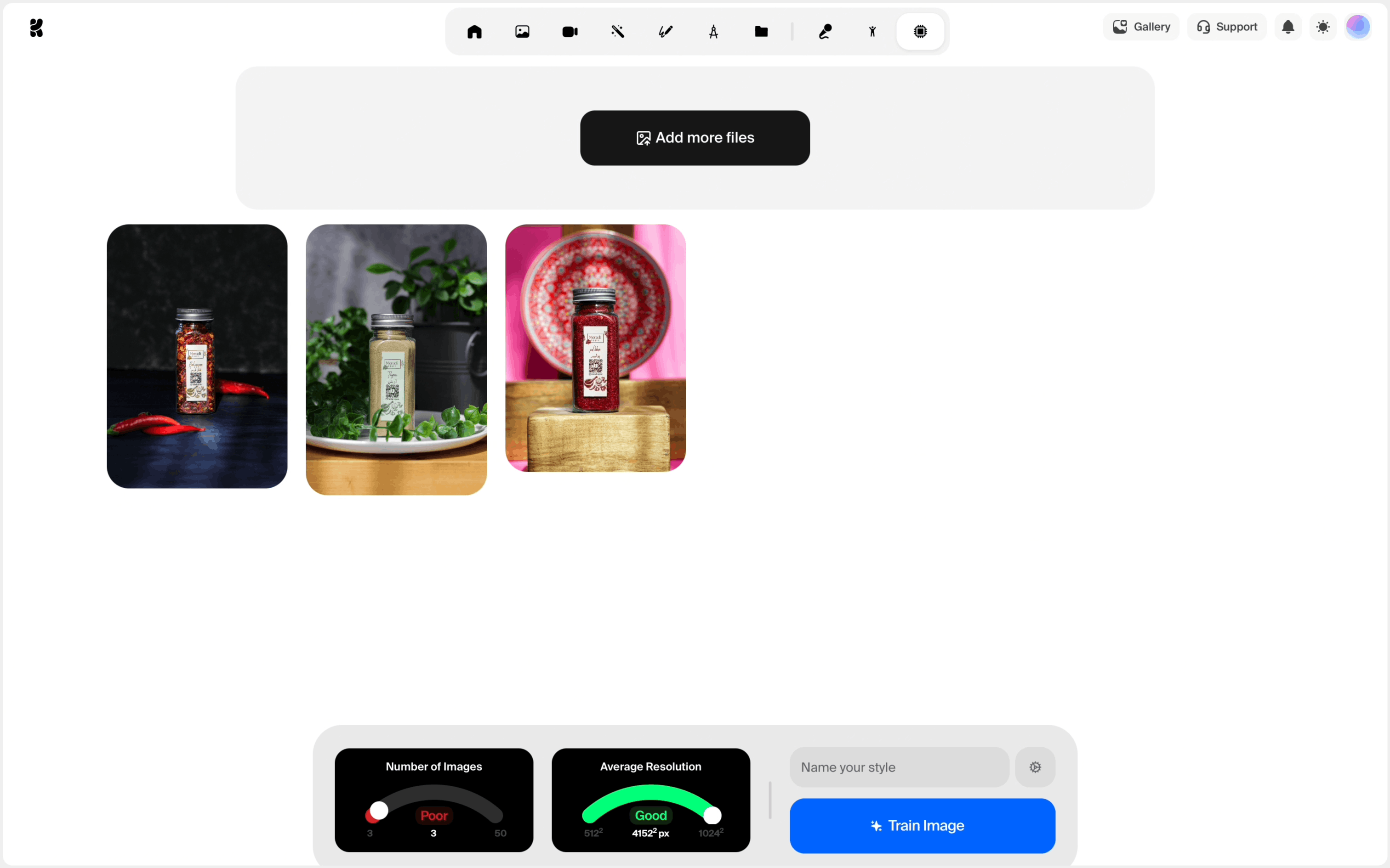 The user trains an image style by uploading images, configuring settings, and initiating the training. Finally, the trained style is applied to an image.