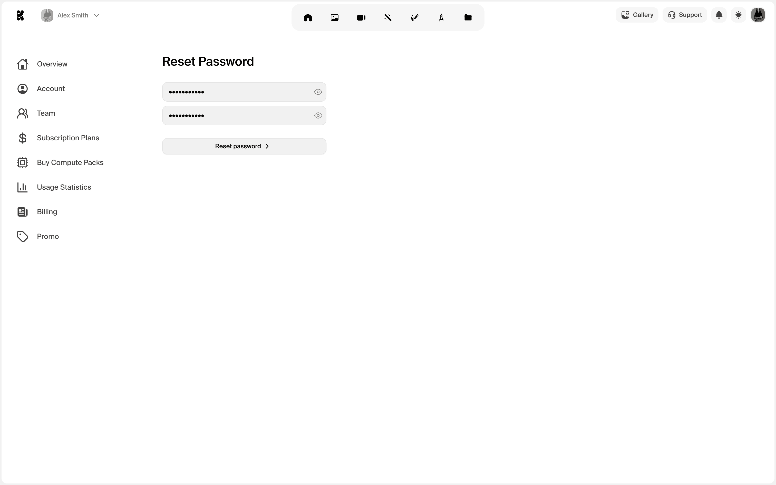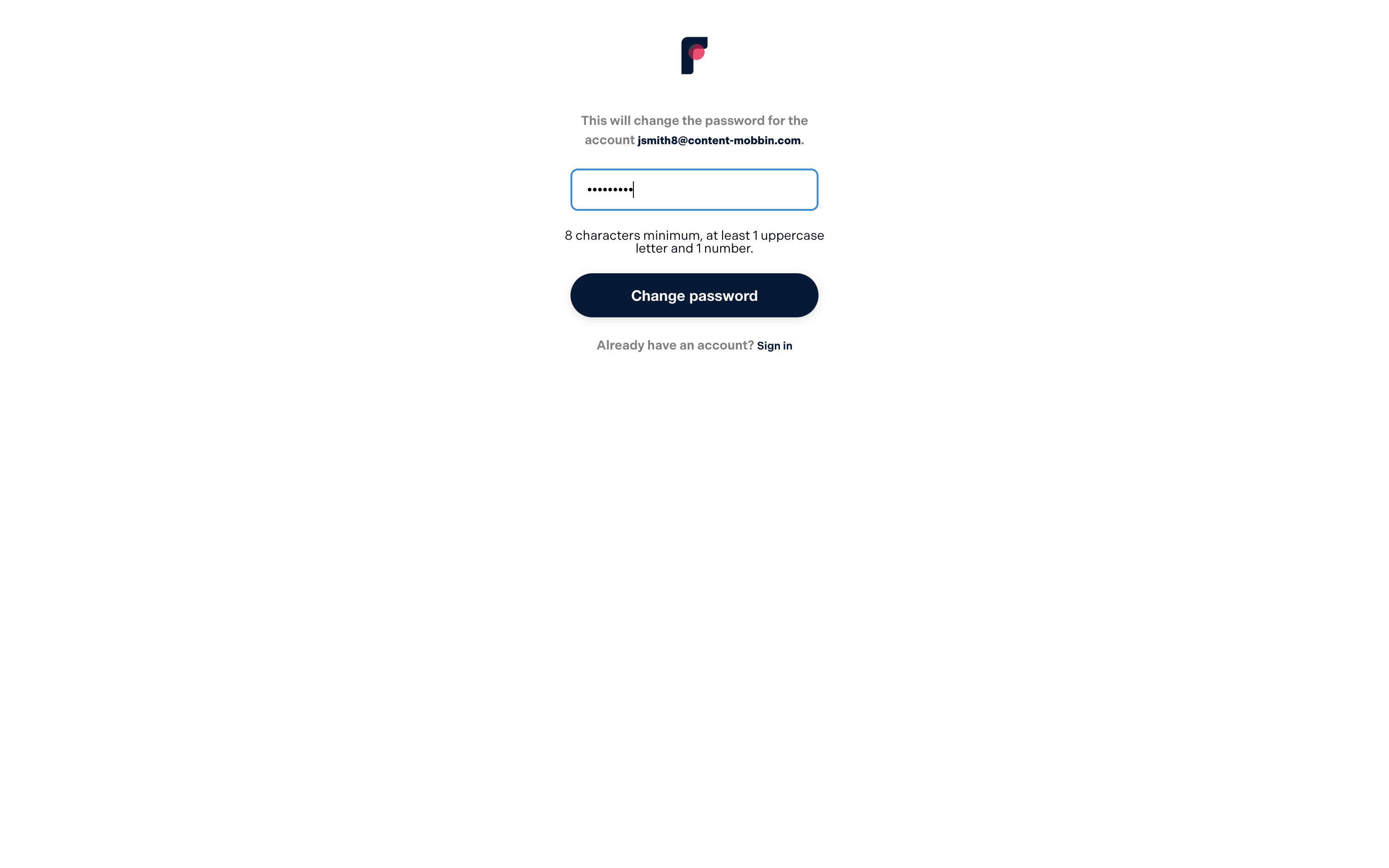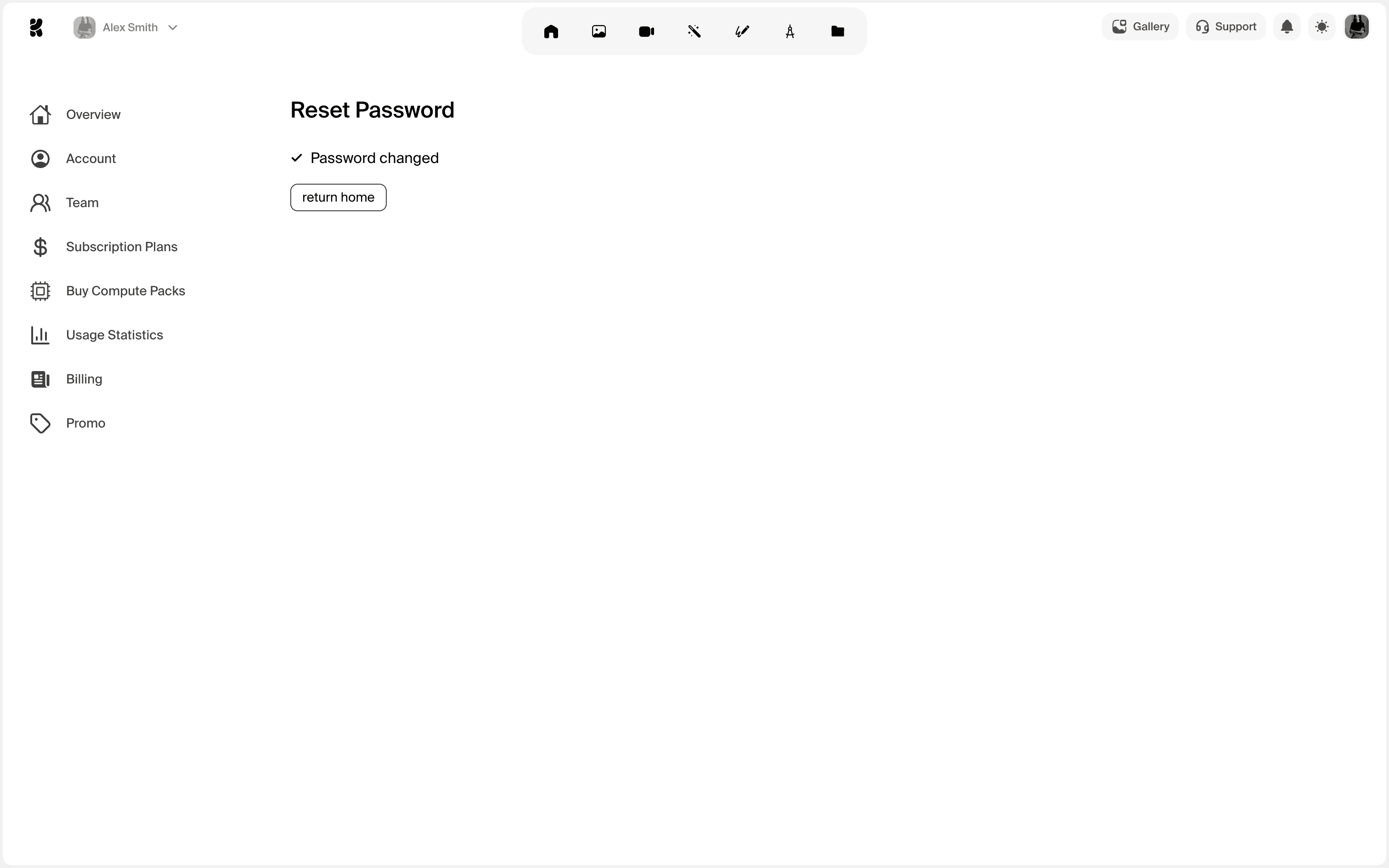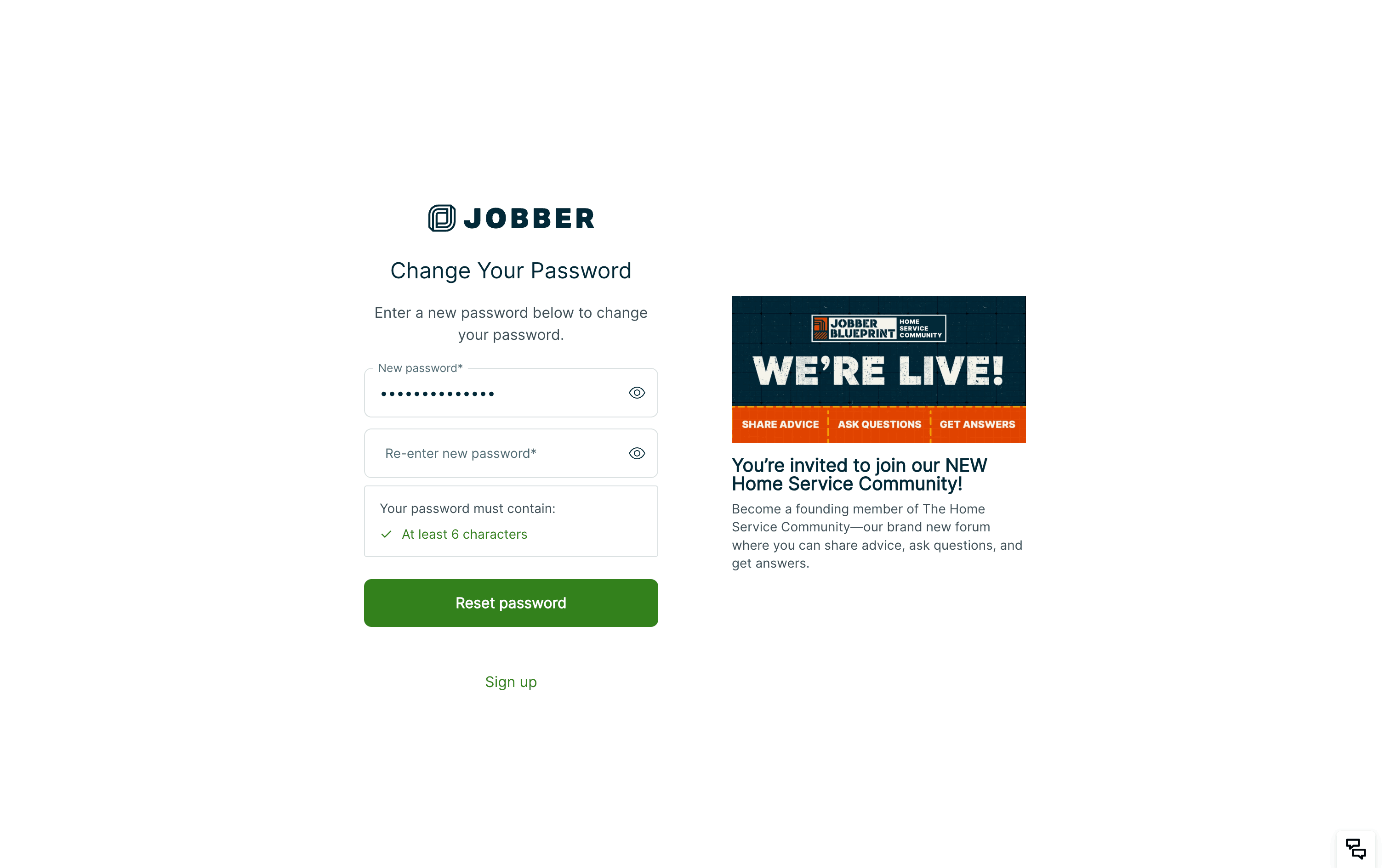 The user resets their password after initiating the 'forgot password' flow. They are then redirected to the main application interface.