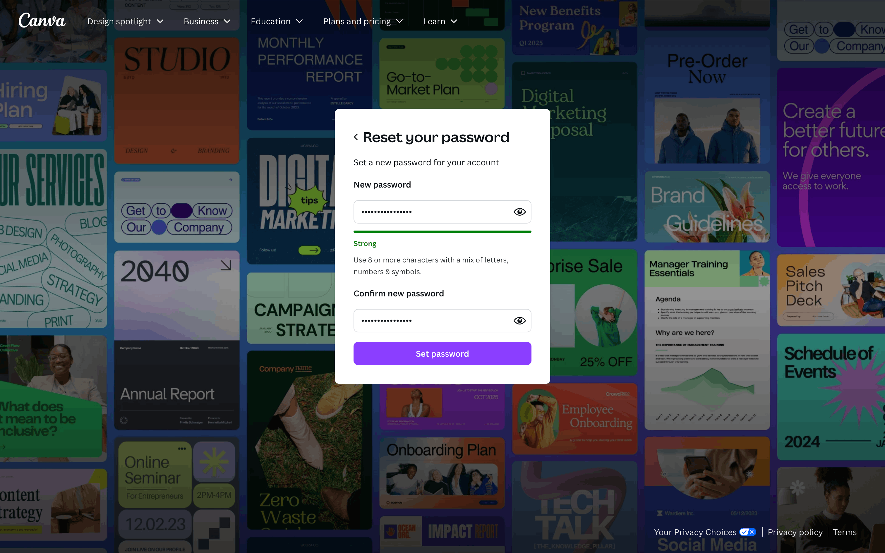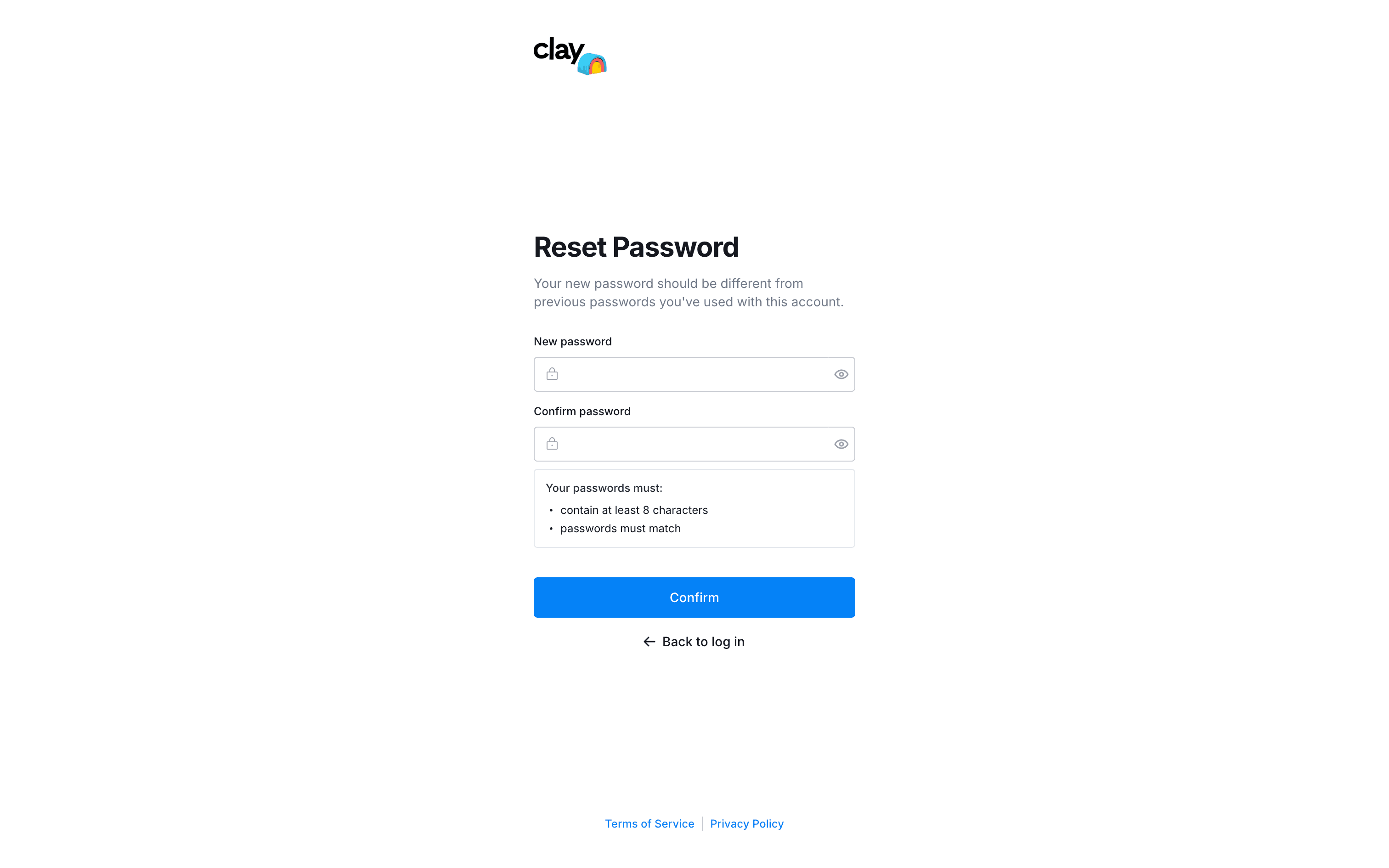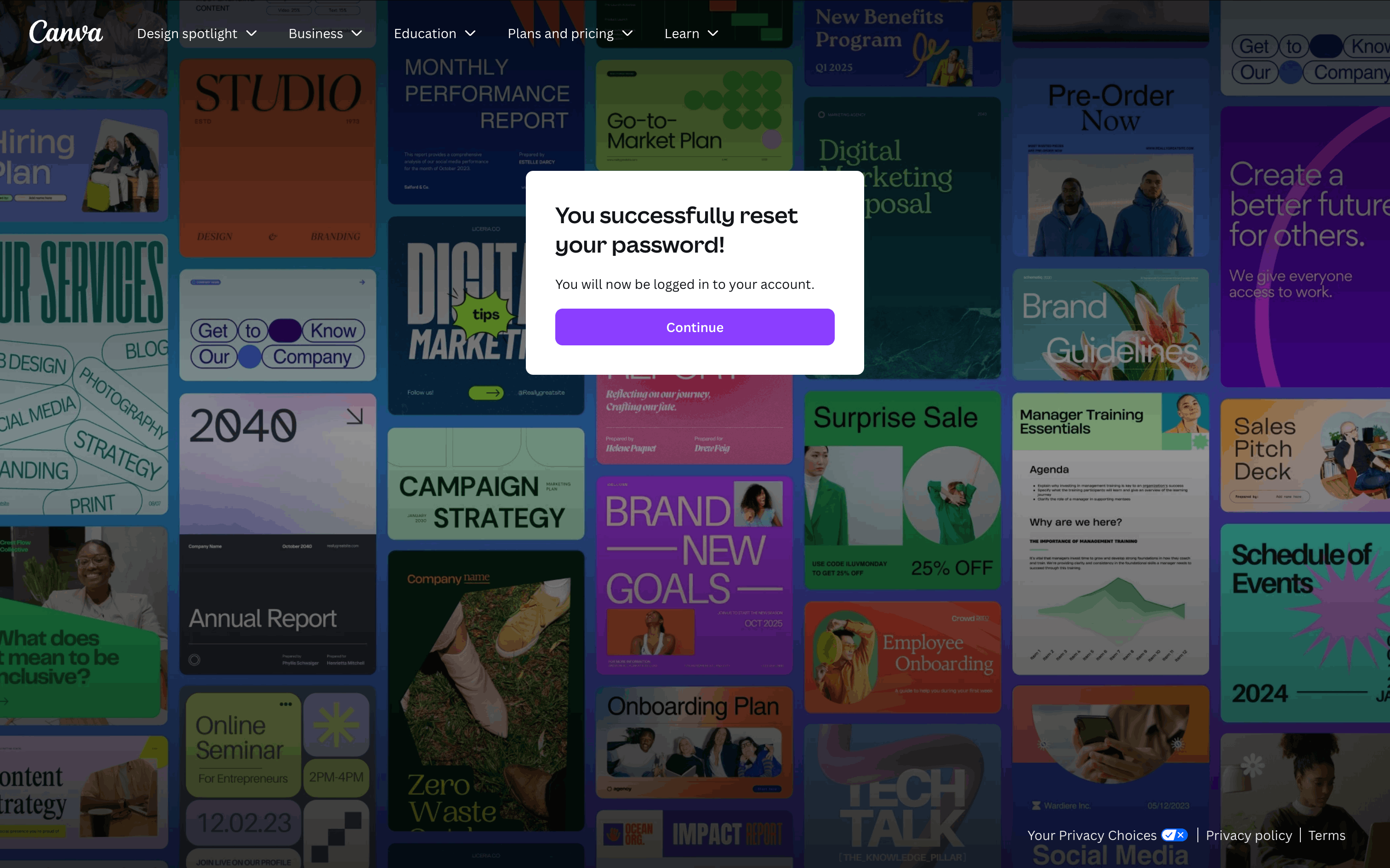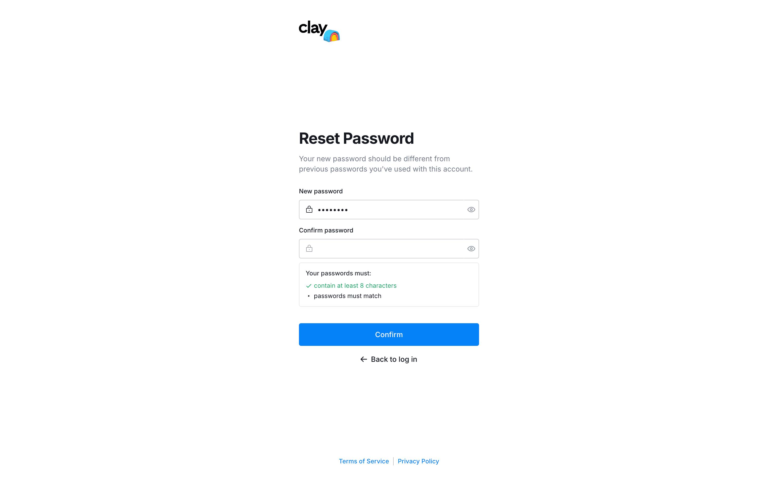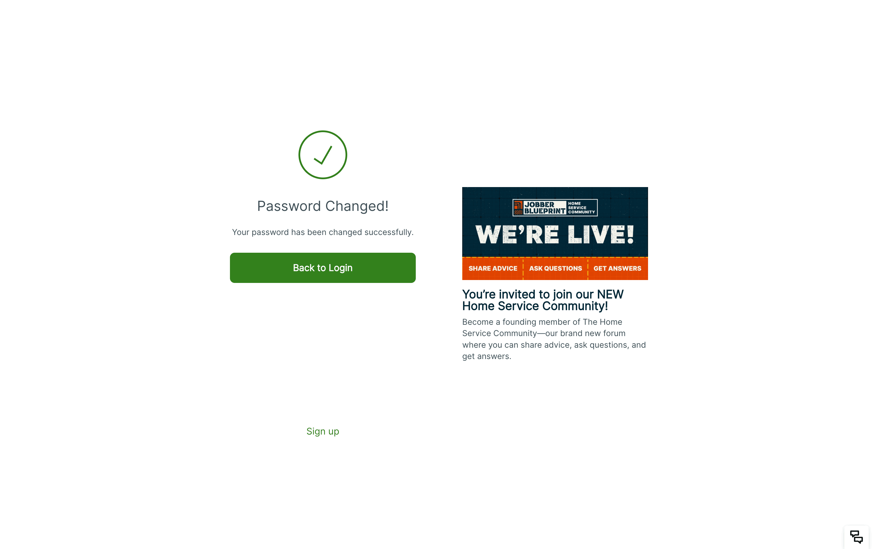 The user resets their password after initiating the 'forgot password' flow. They are then redirected to the main application interface.