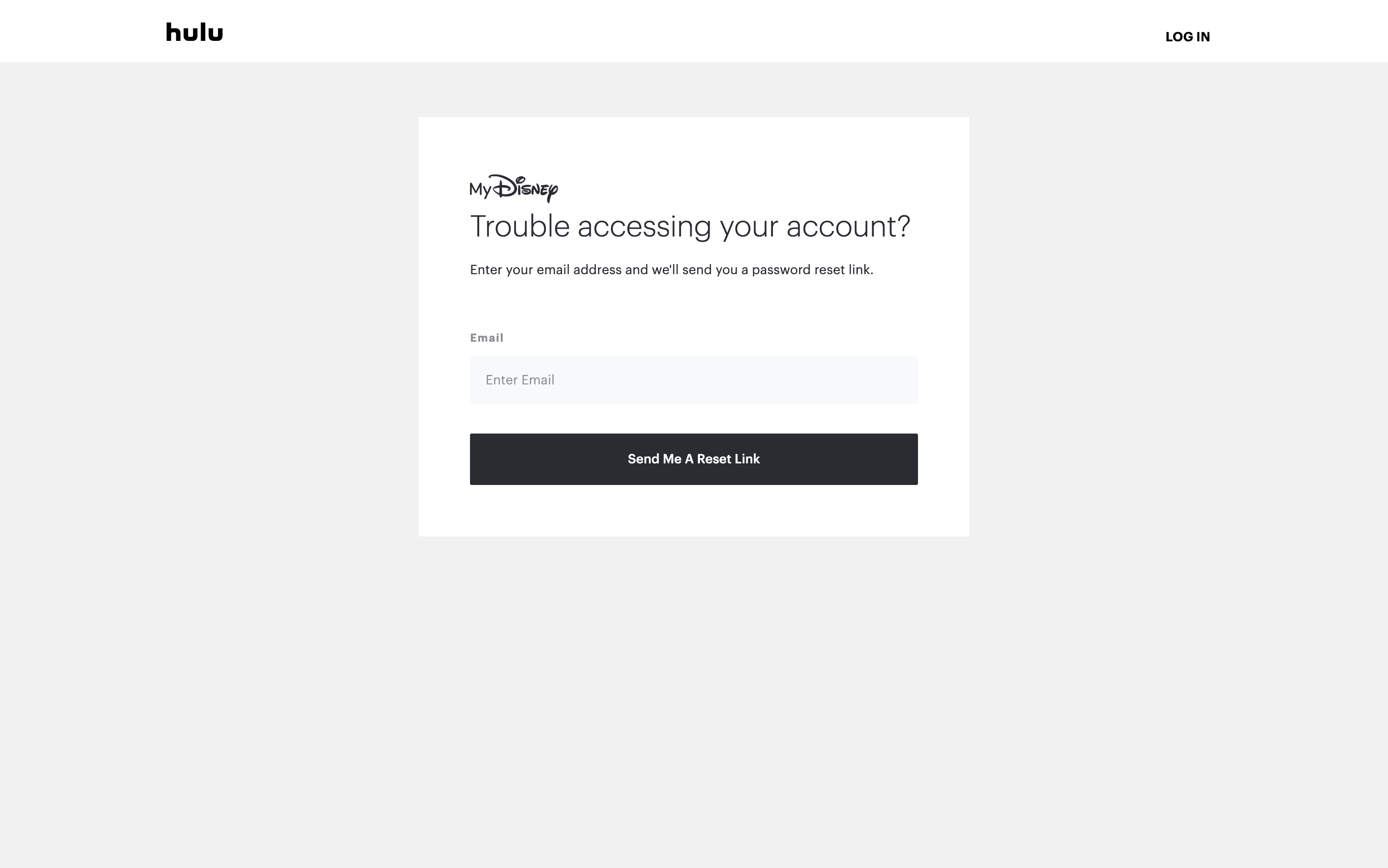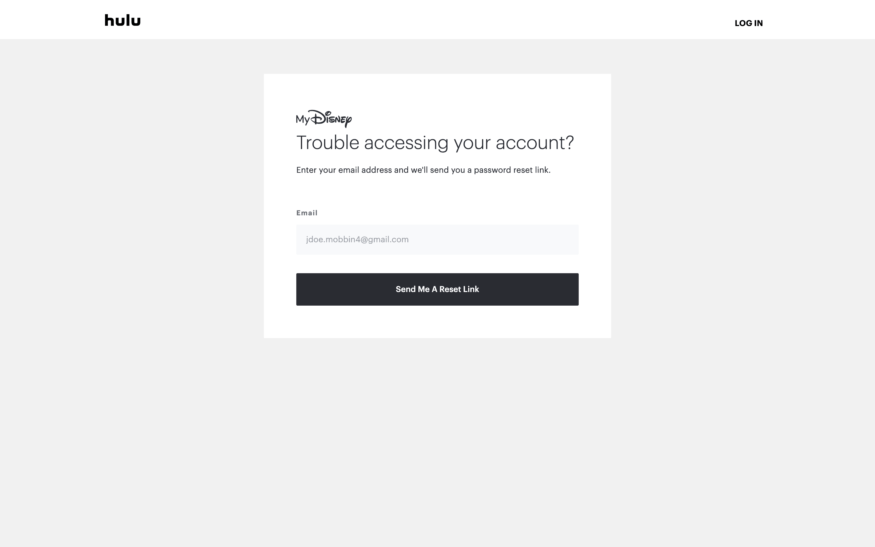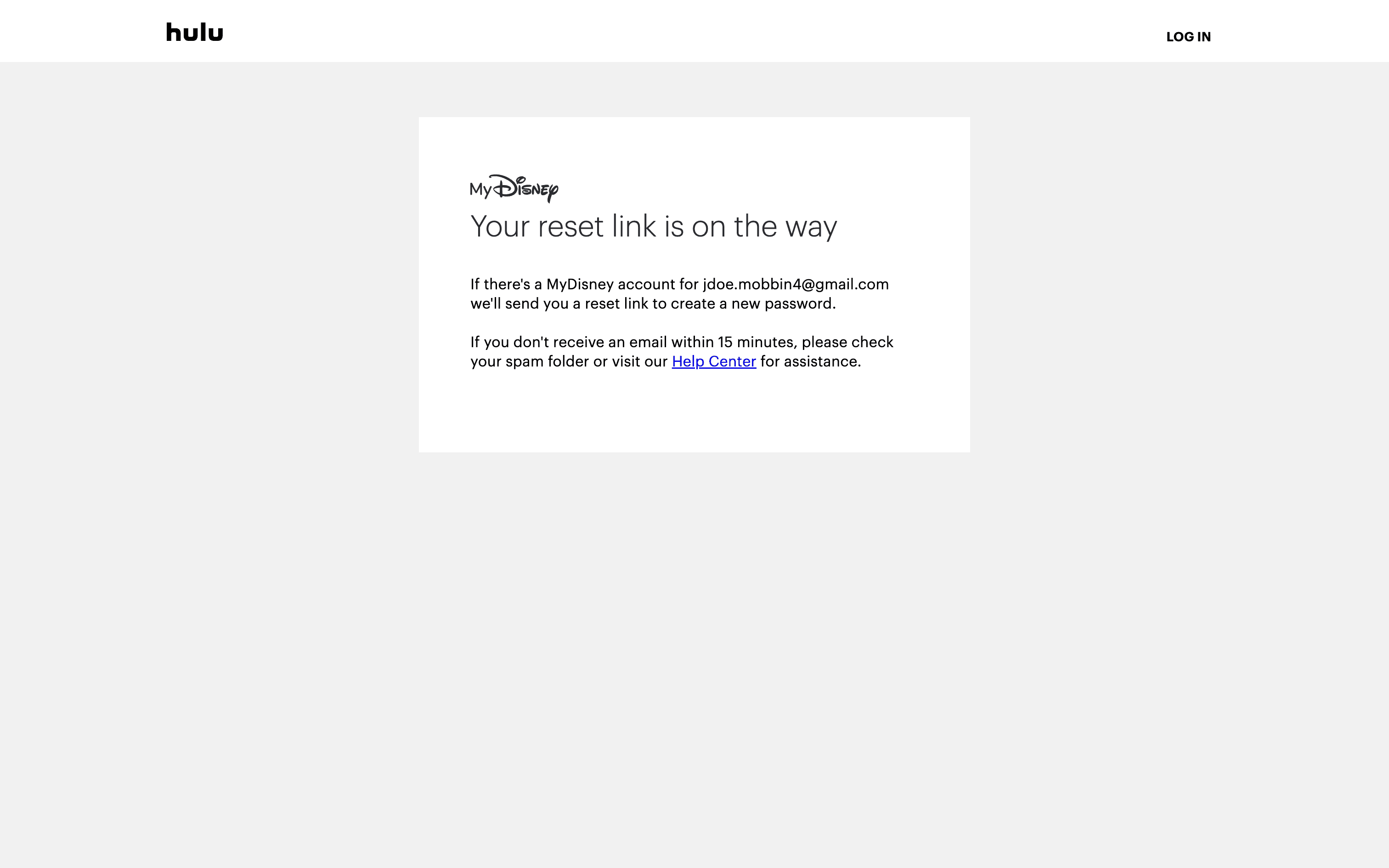 Users can reset their password by entering their email, receiving a reset link, creating a new password, and verifying their email. Successful password reset leads to the Hulu homepage.