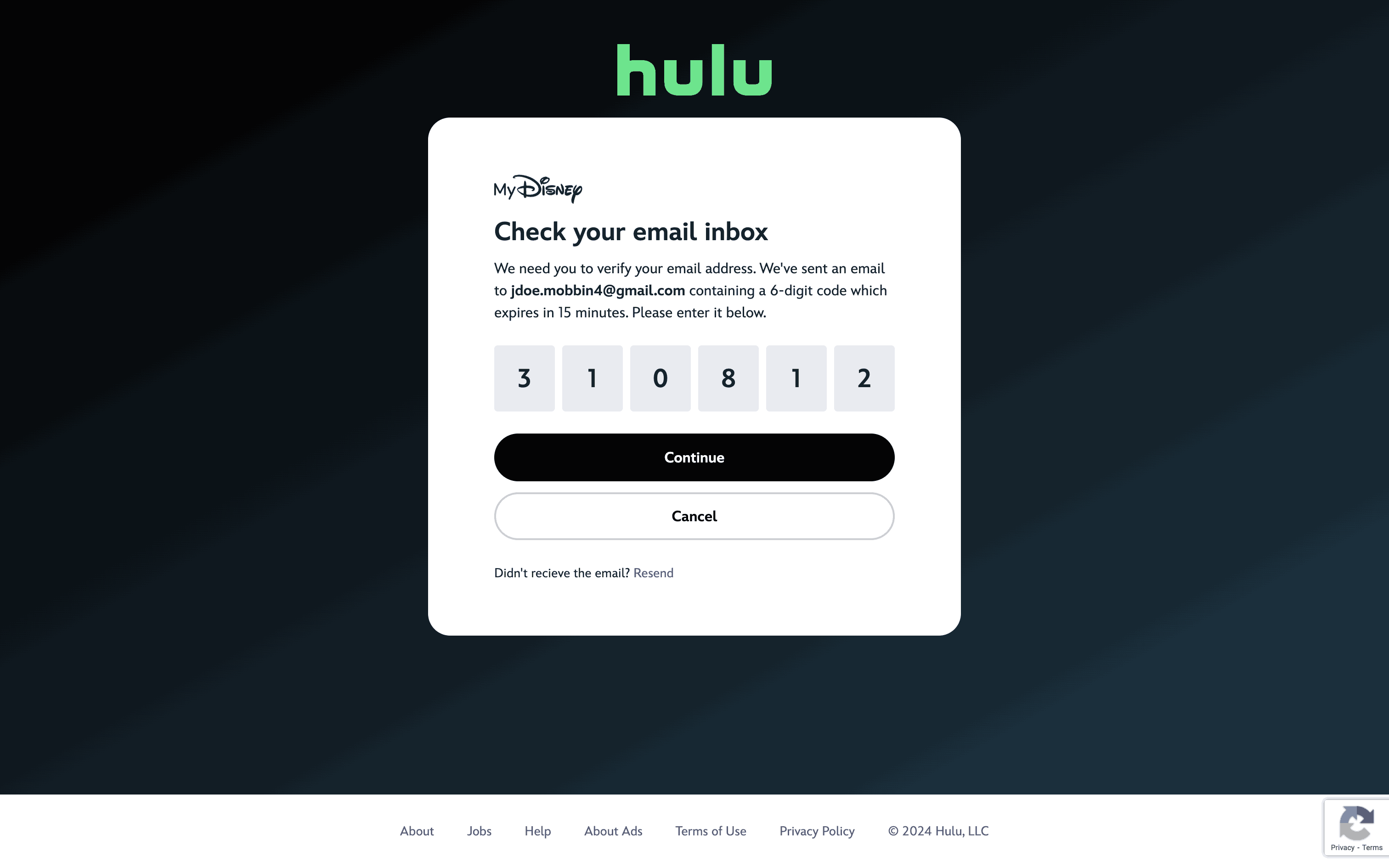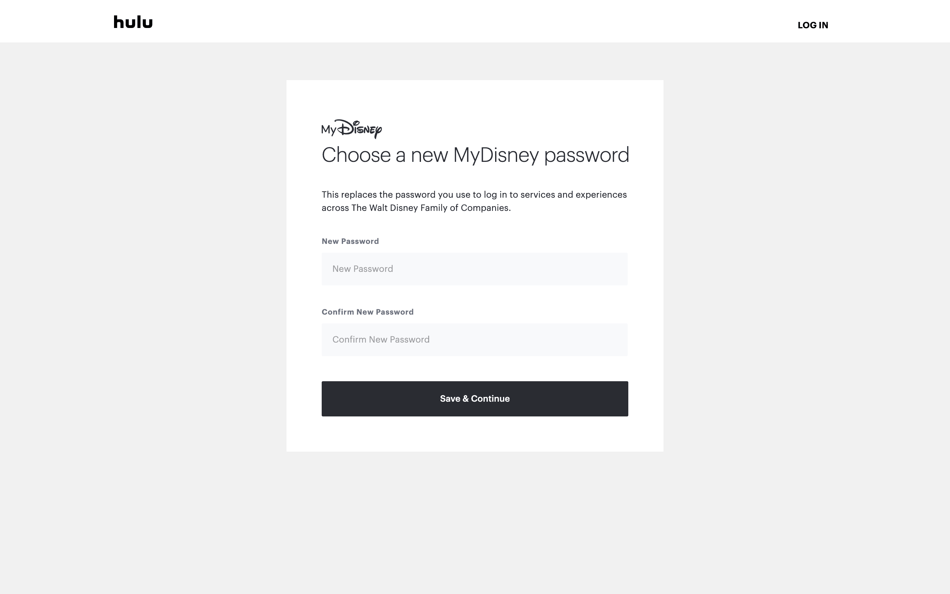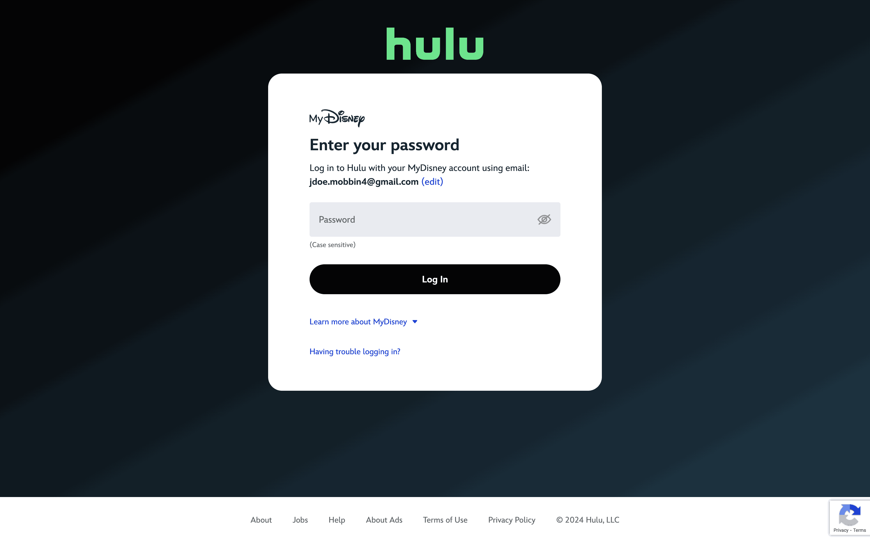 Users can reset their password by entering their email, receiving a reset link, creating a new password, and verifying their email. Successful password reset leads to the Hulu homepage.