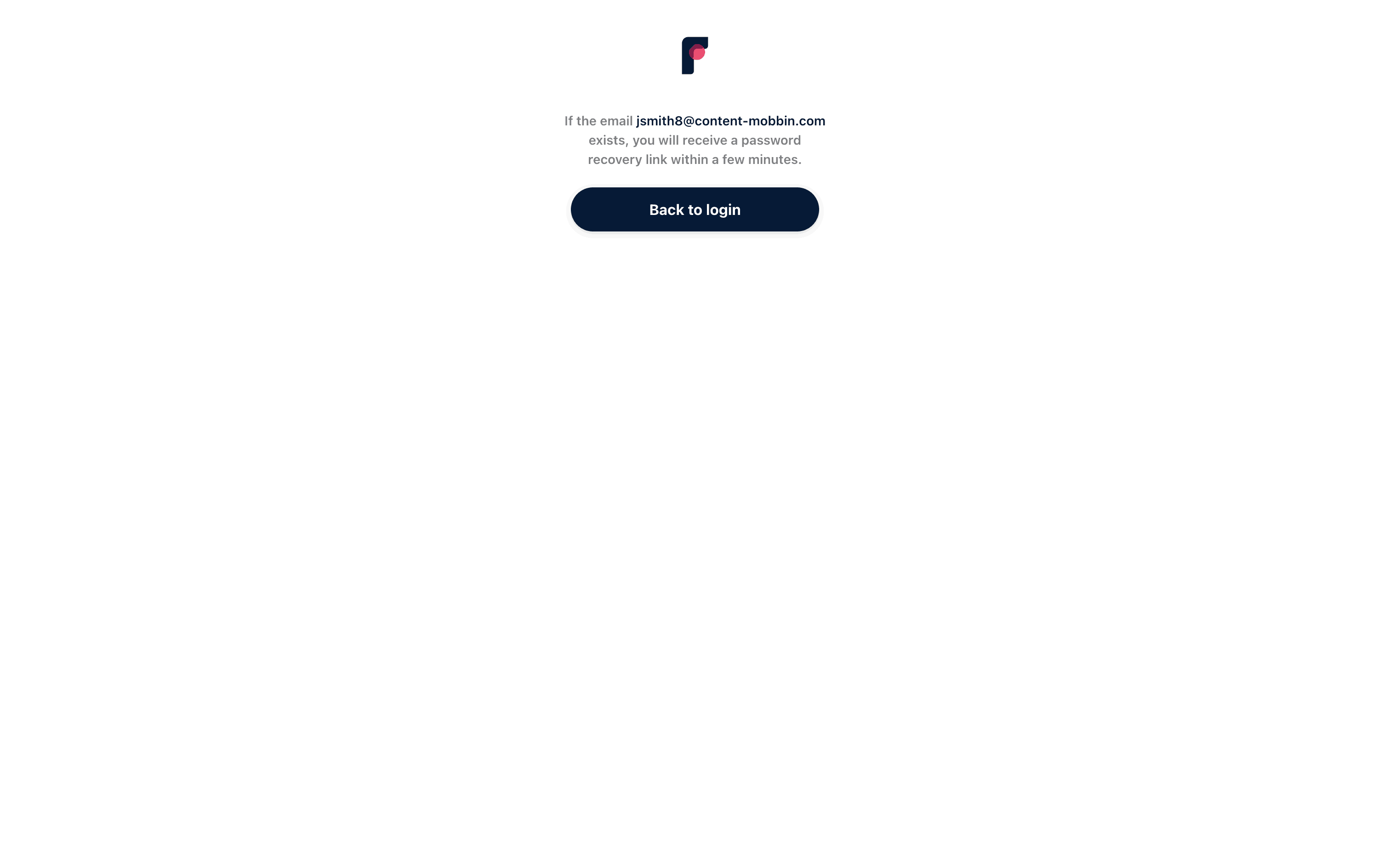 The user requests and completes a password reset flow. They enter their email, set a new password, and receive confirmation.