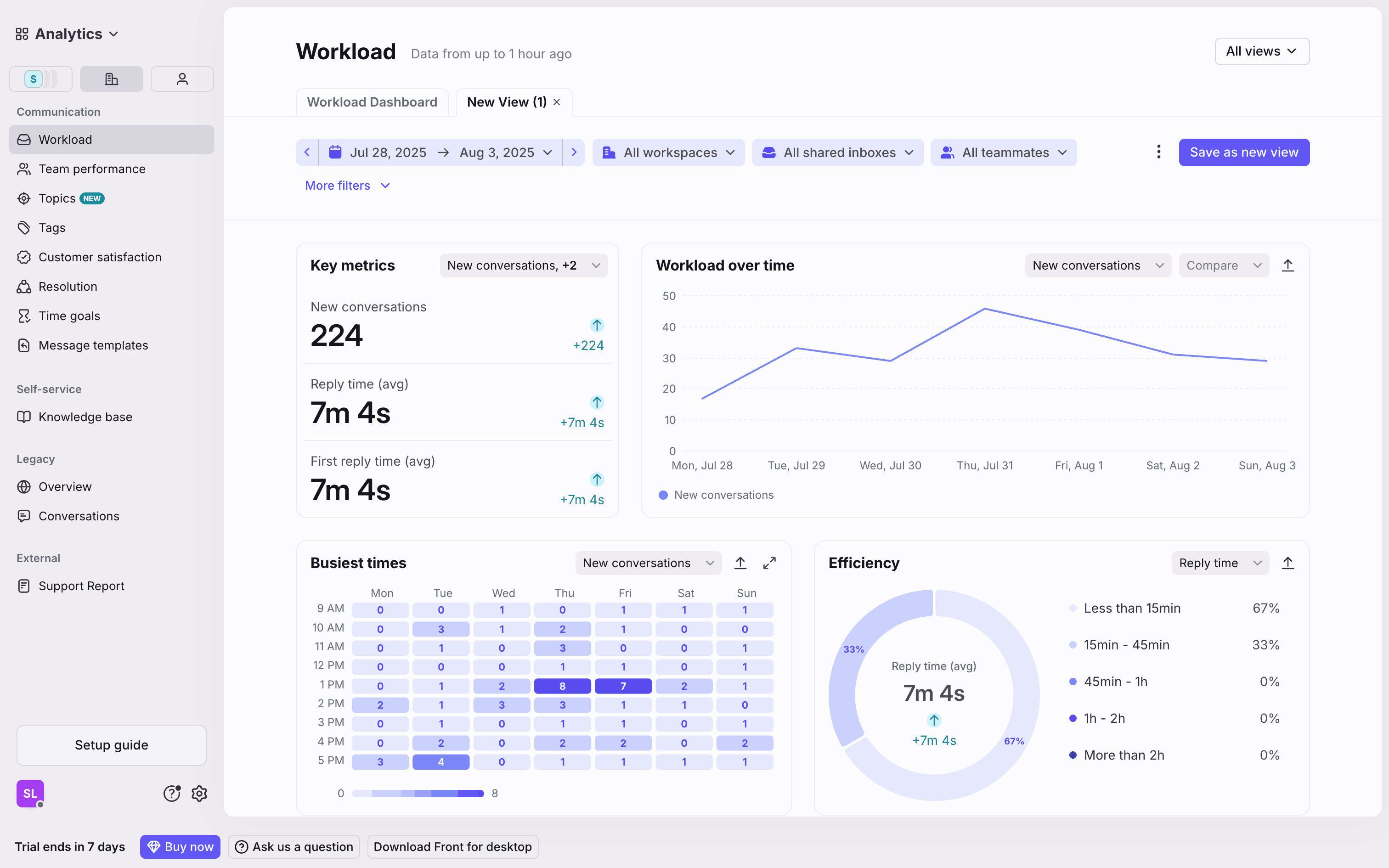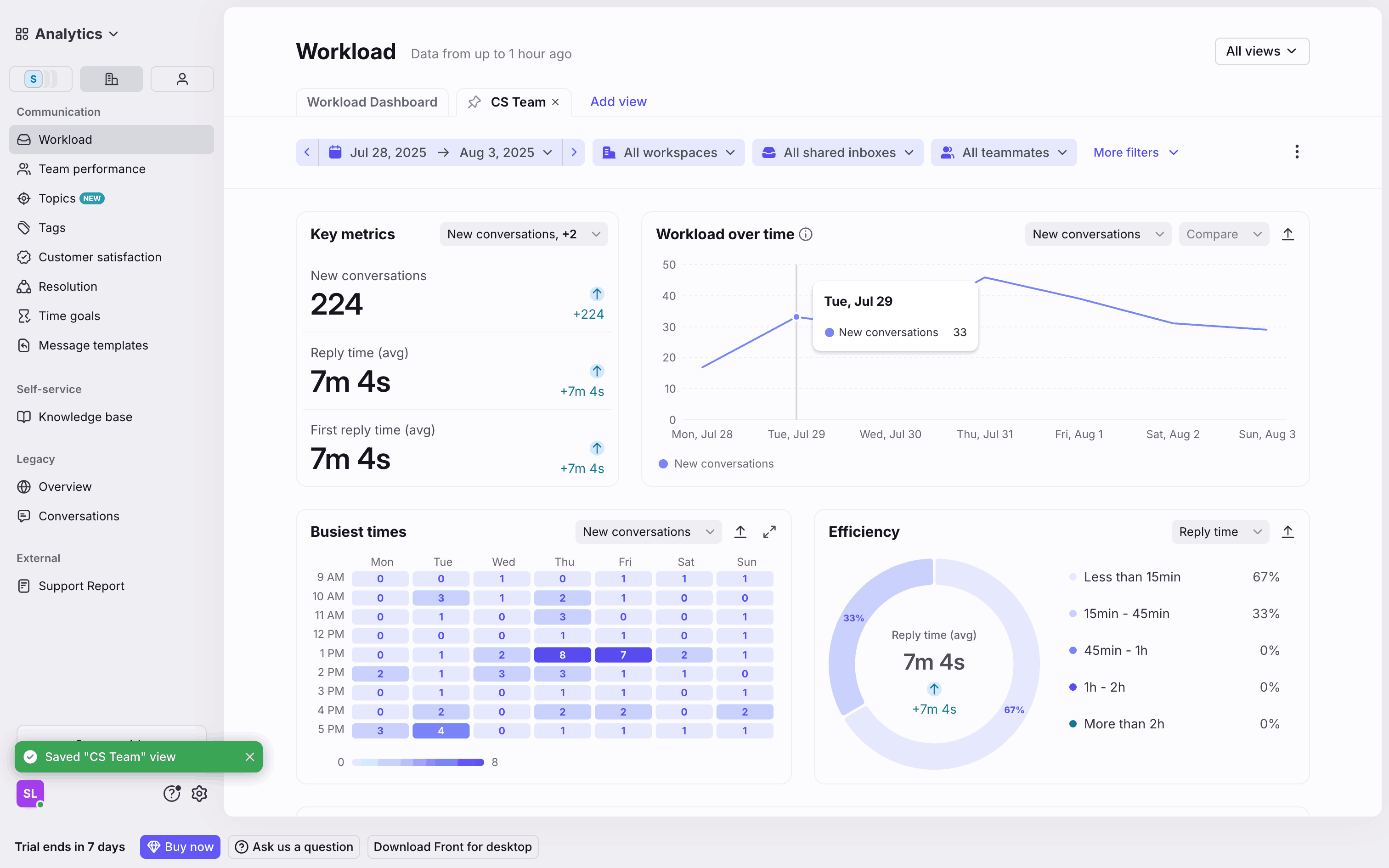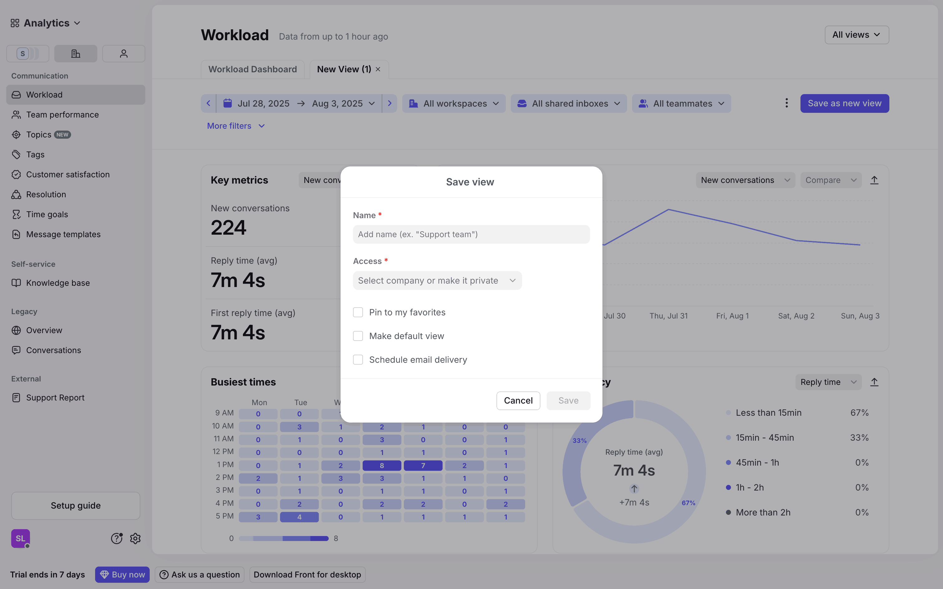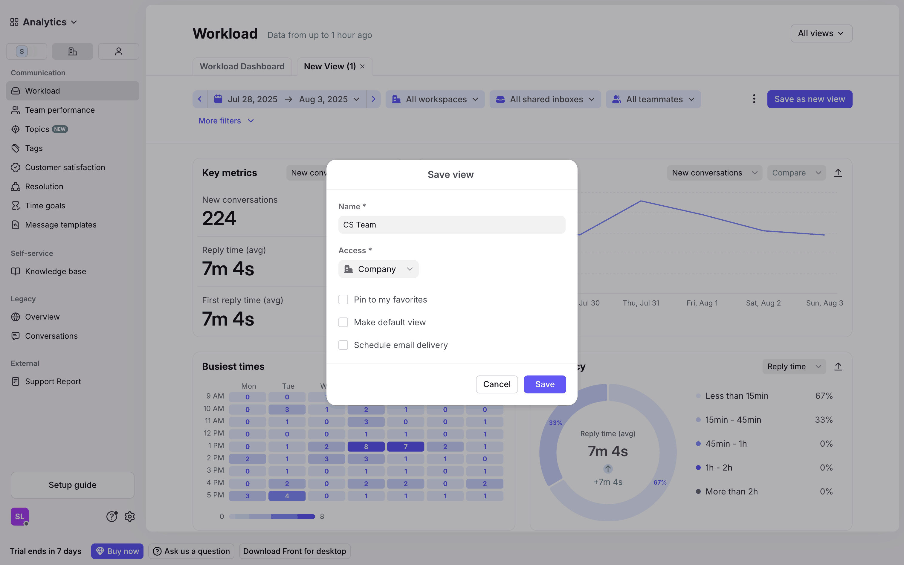 The user saves a custom workload dashboard view by configuring the settings and providing a name. The saved view is then displayed on the dashboard.