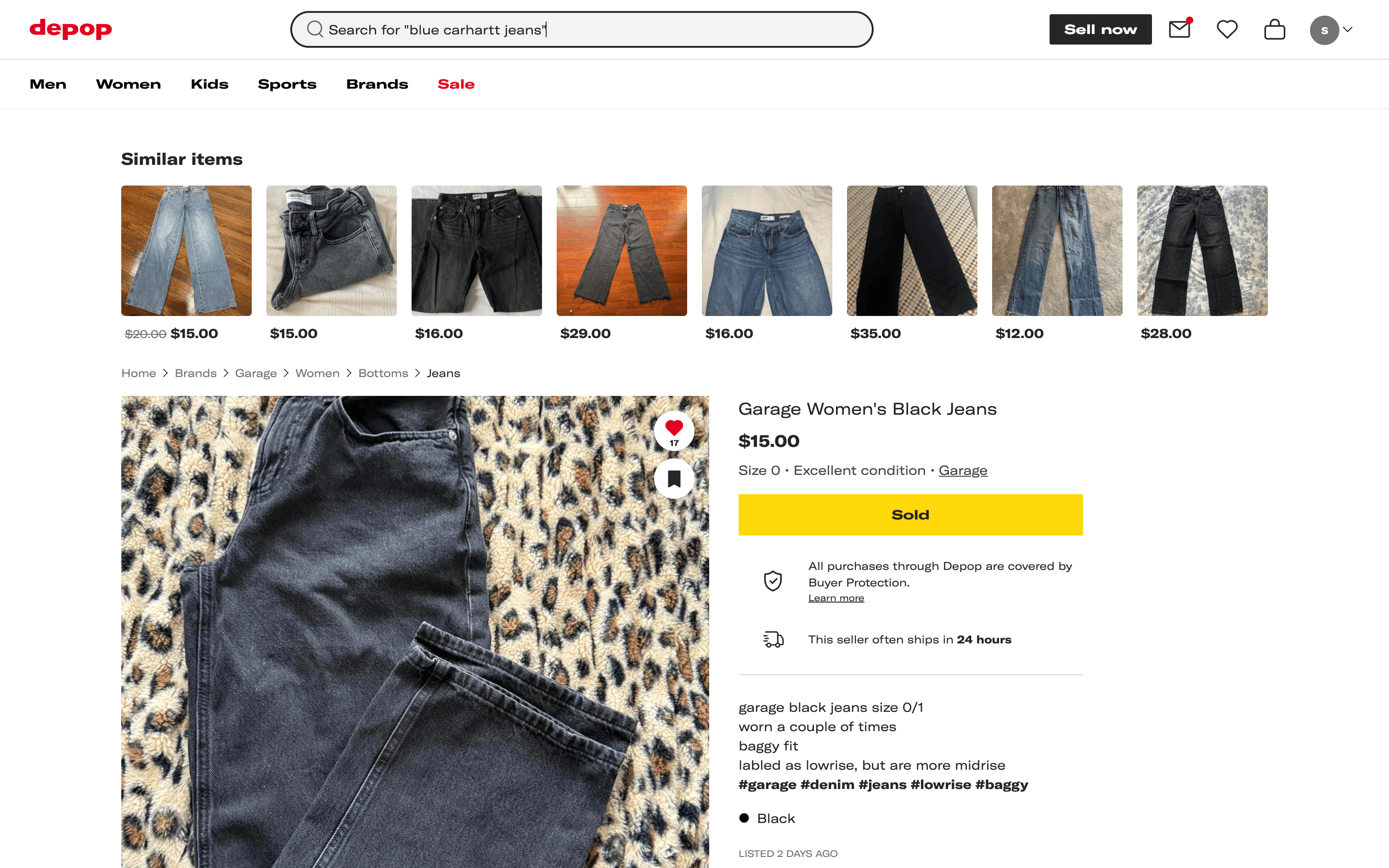 The user views a product listing, then views another product listing after performing a different search. The goal is to browse and view different products.