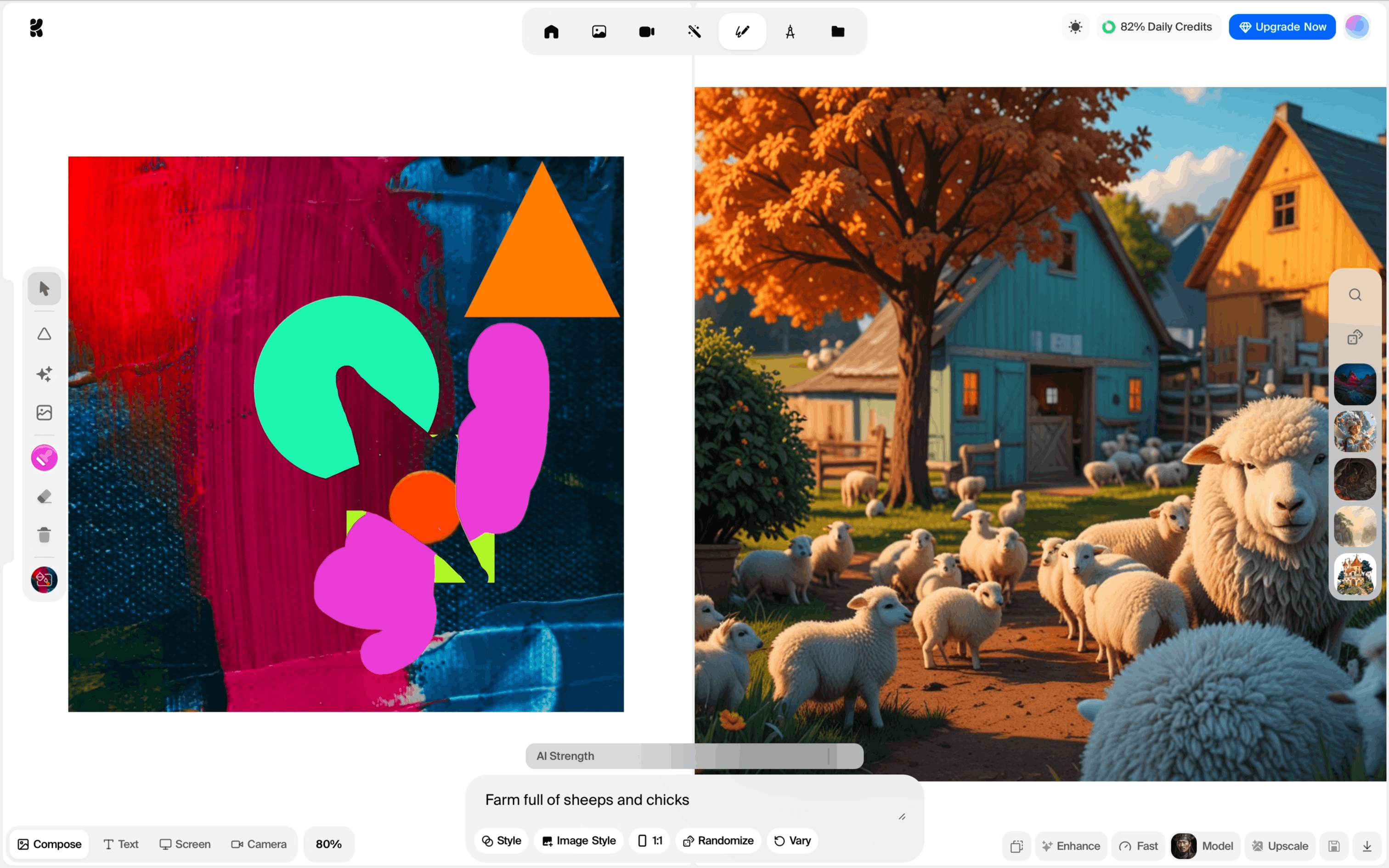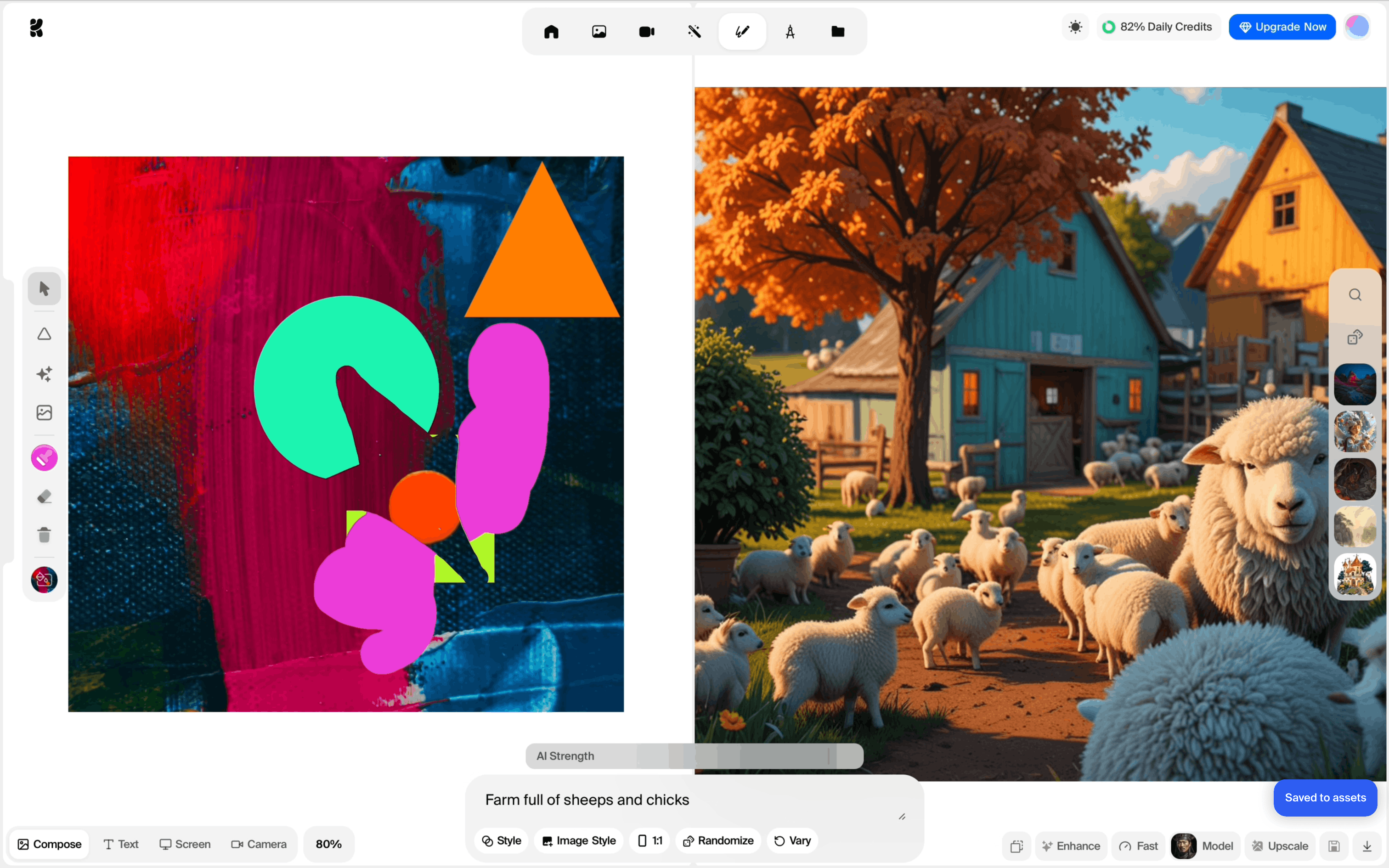 The user generates an image using a text prompt and then saves the generated image to their personal assets.
