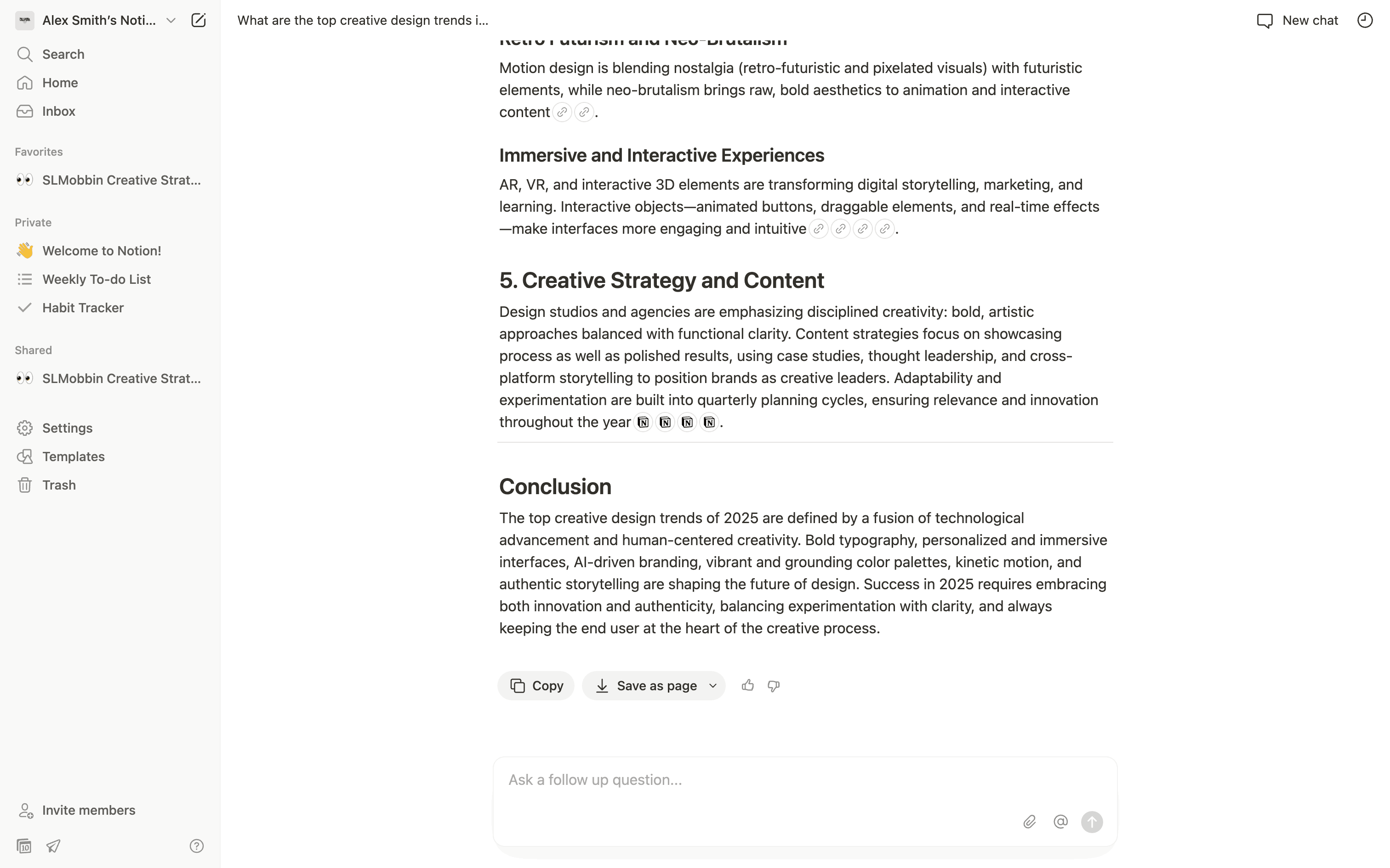 The user saves a document as a page and then views the saved page. The saved page is marked as private.