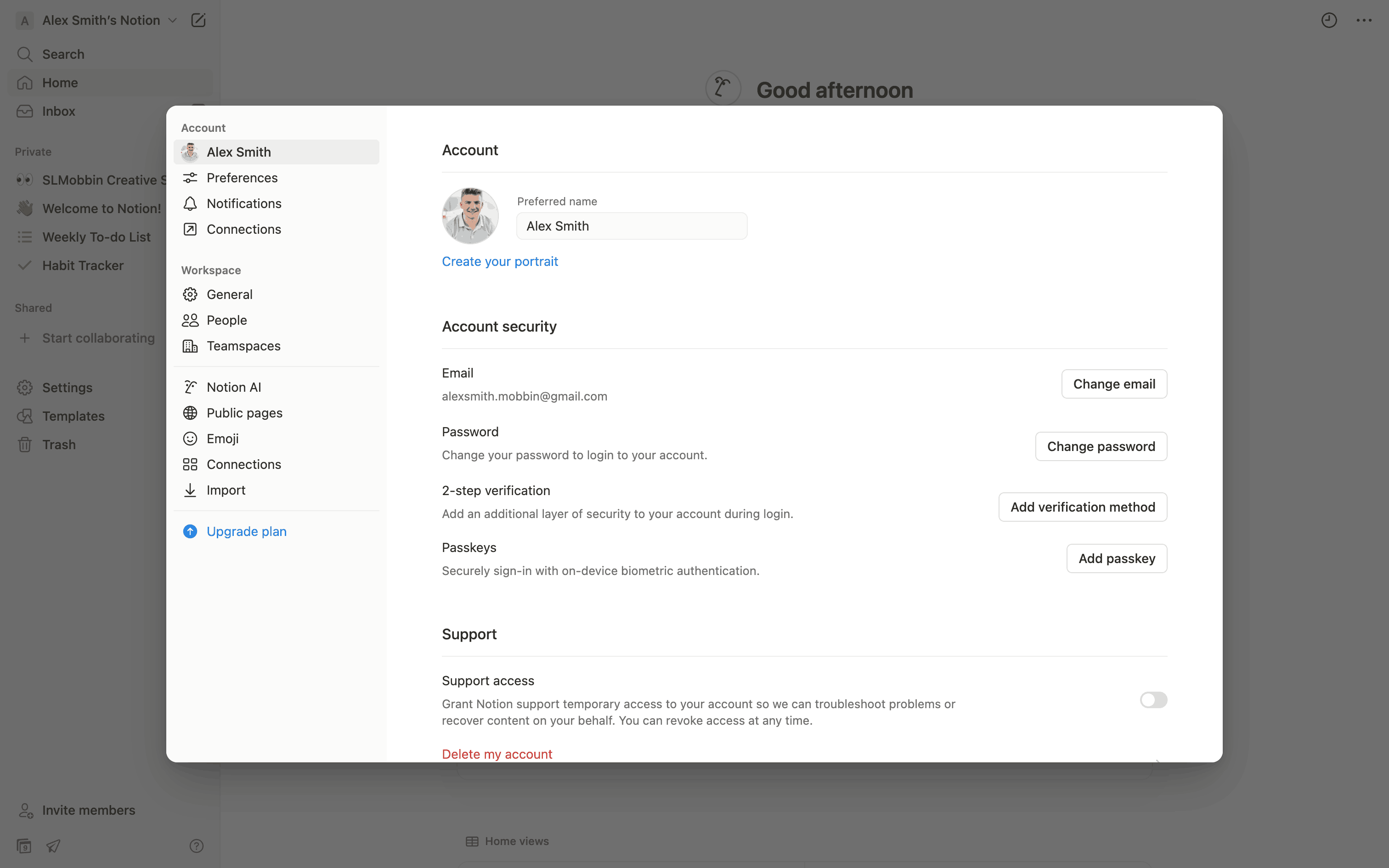 The user creates a new account by filling out a form and views the account details. The user also interacts with a setup panel to configure the account.