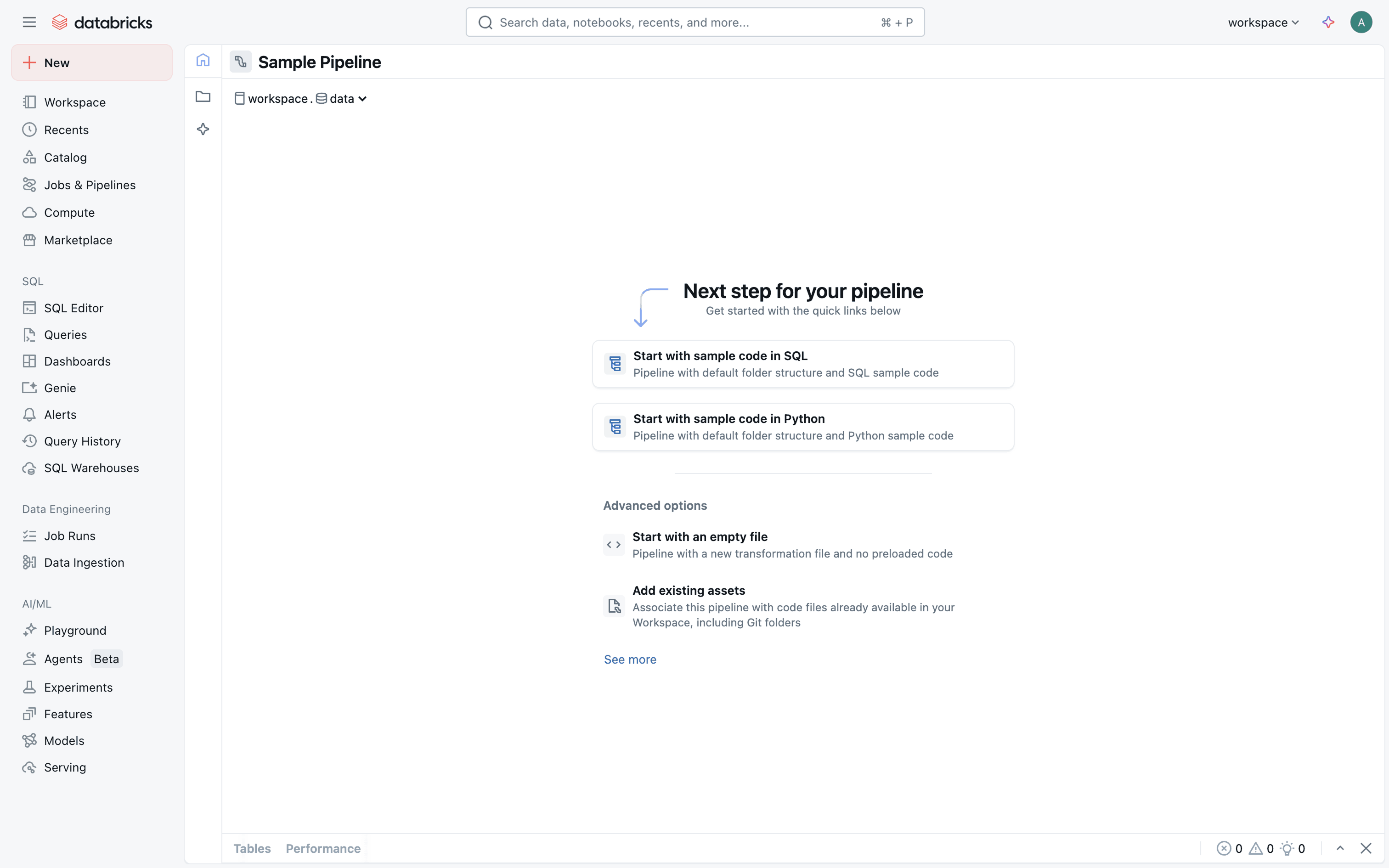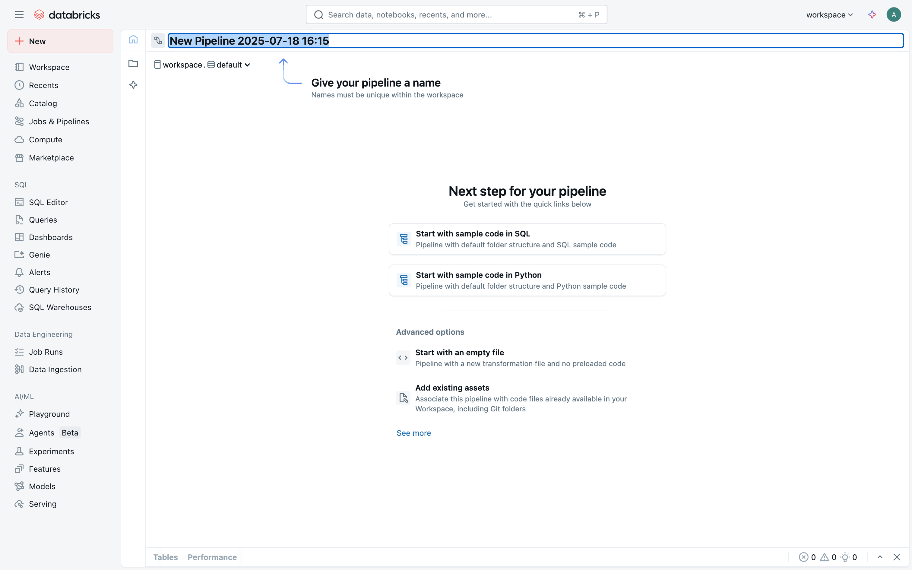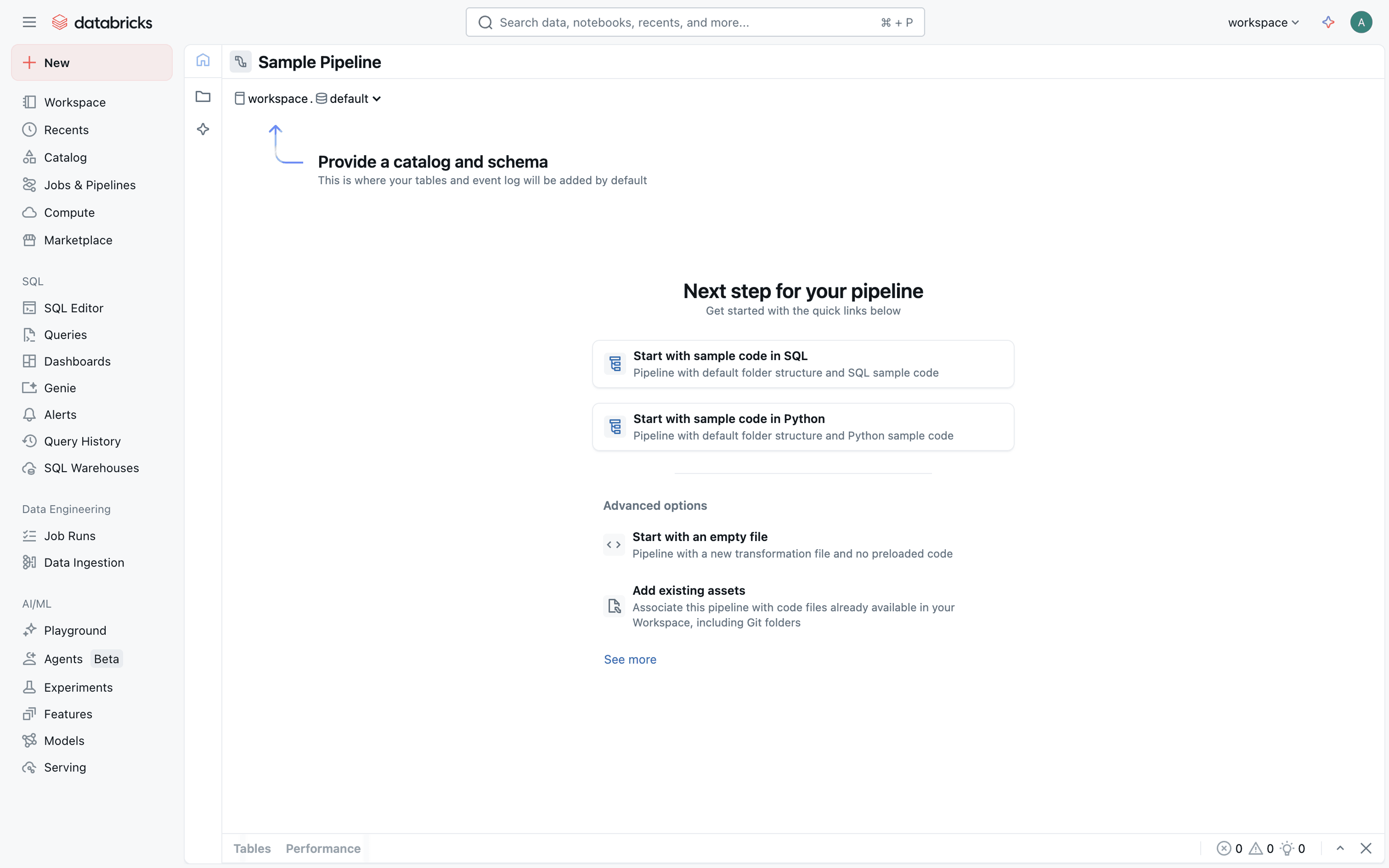 The user flow demonstrates creating a pipeline, configuring it, running it, and viewing the results and performance. It showcases the steps to build and execute a data pipeline.
