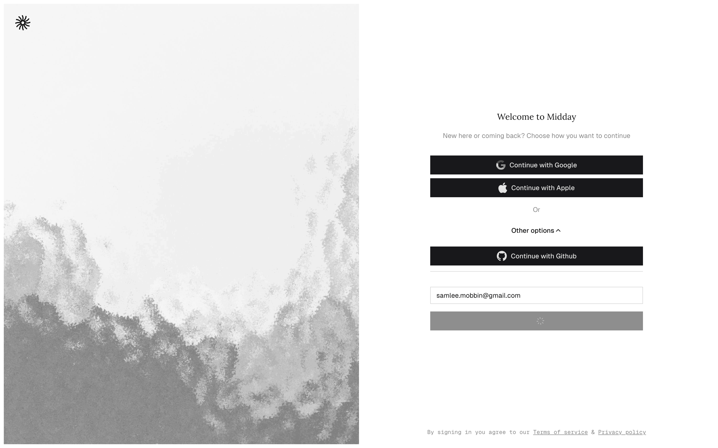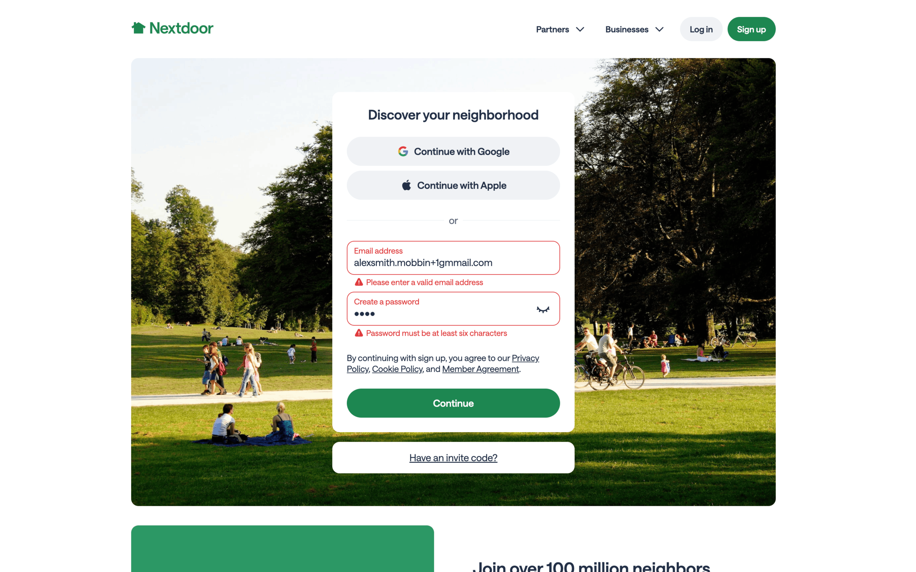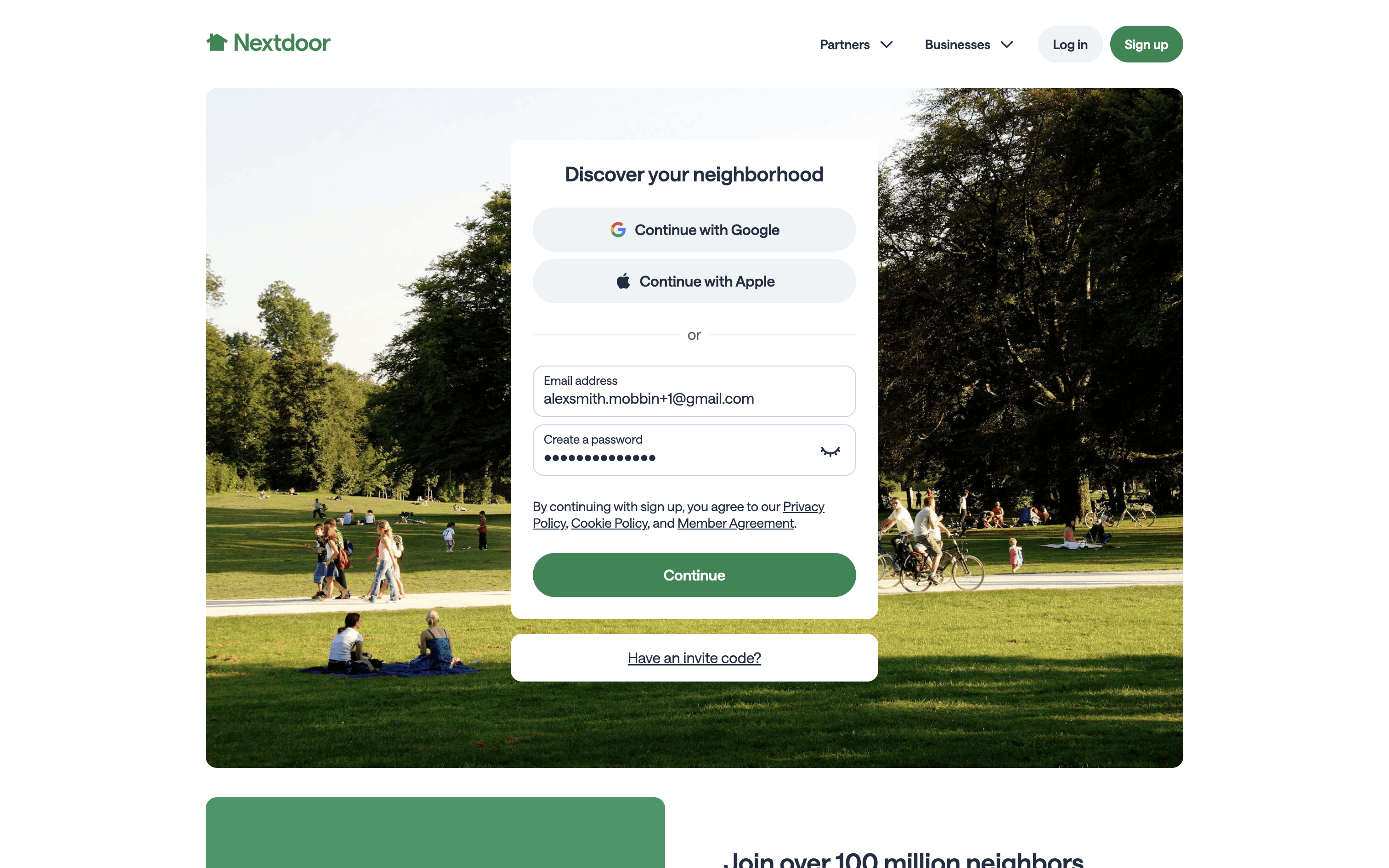 The user signs up for a new account by providing their email, creating a password, and verifying their email. Upon successful verification, they are logged in and redirected to the homepage.