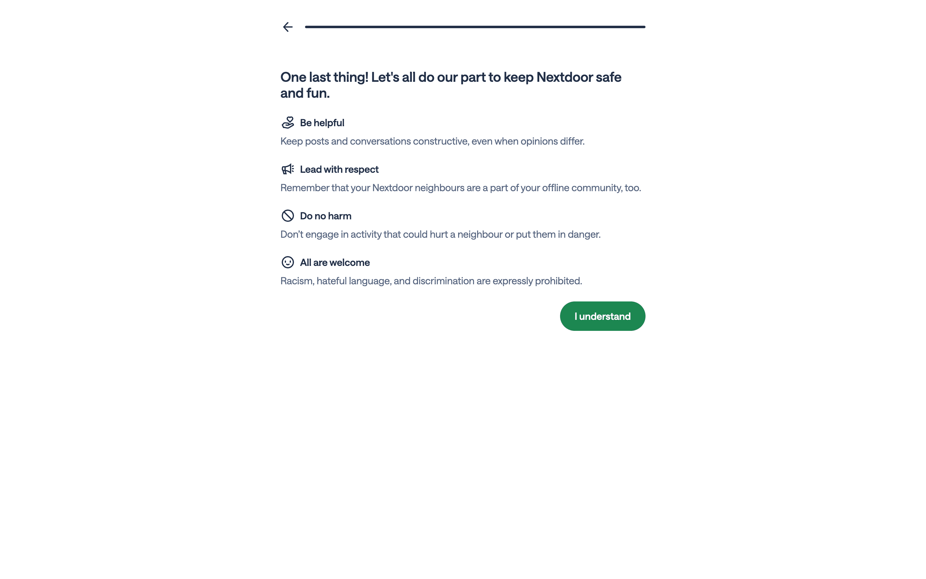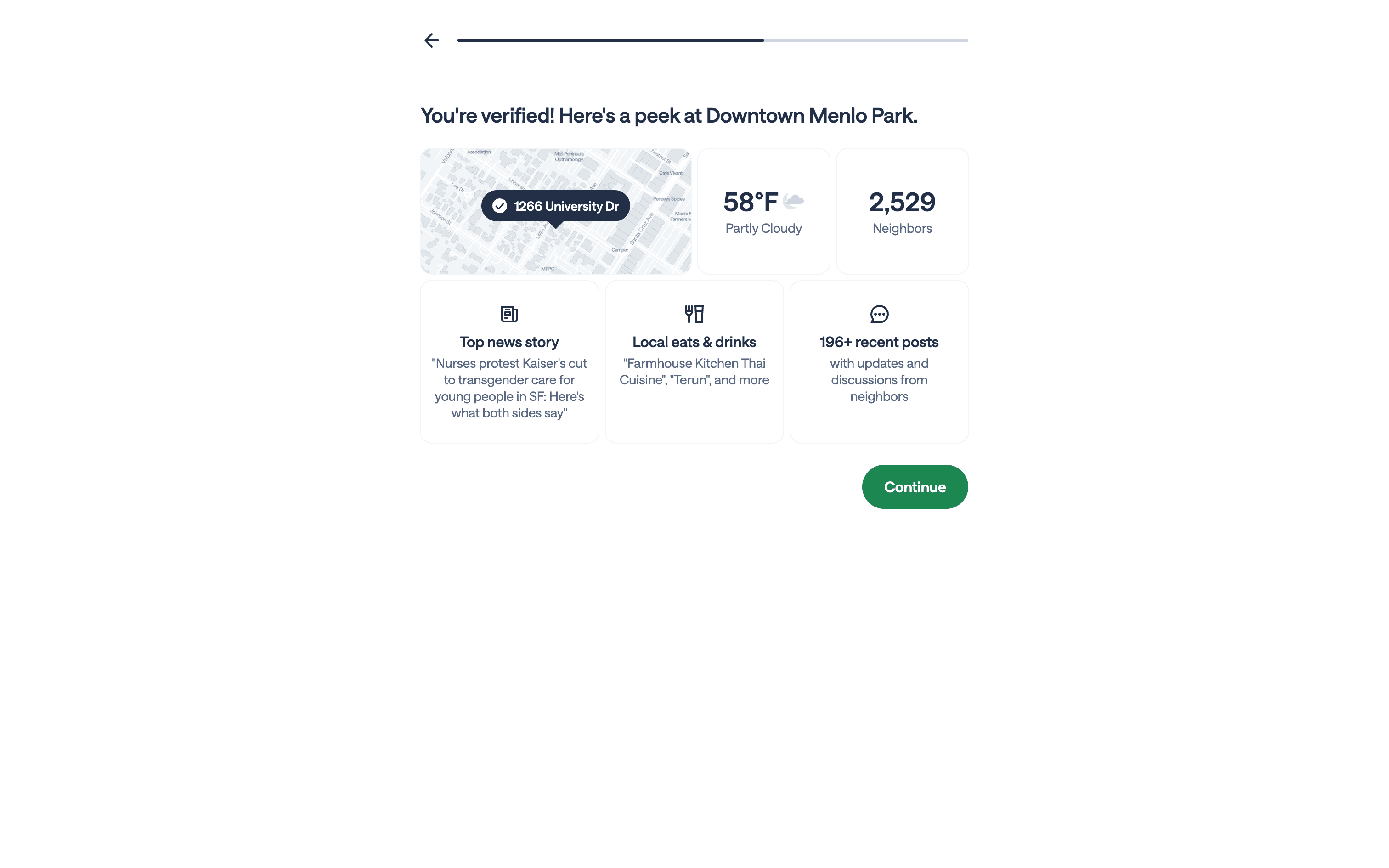 The user goes through the onboarding process, which includes account creation, address and phone verification, and initial customization. Finally, the user is prompted to introduce themselves.
