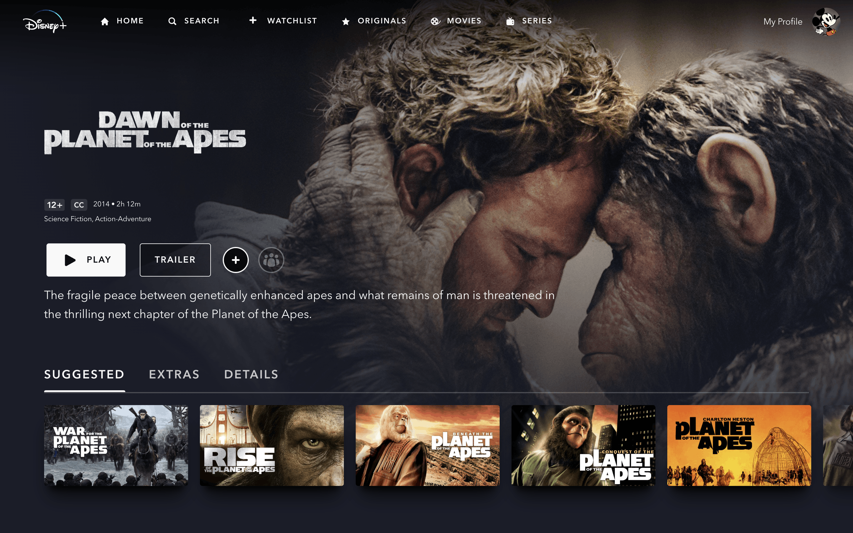 The user selects and watches a movie, then receives a suggestion for a similar movie. The flow includes casting options and playback controls.