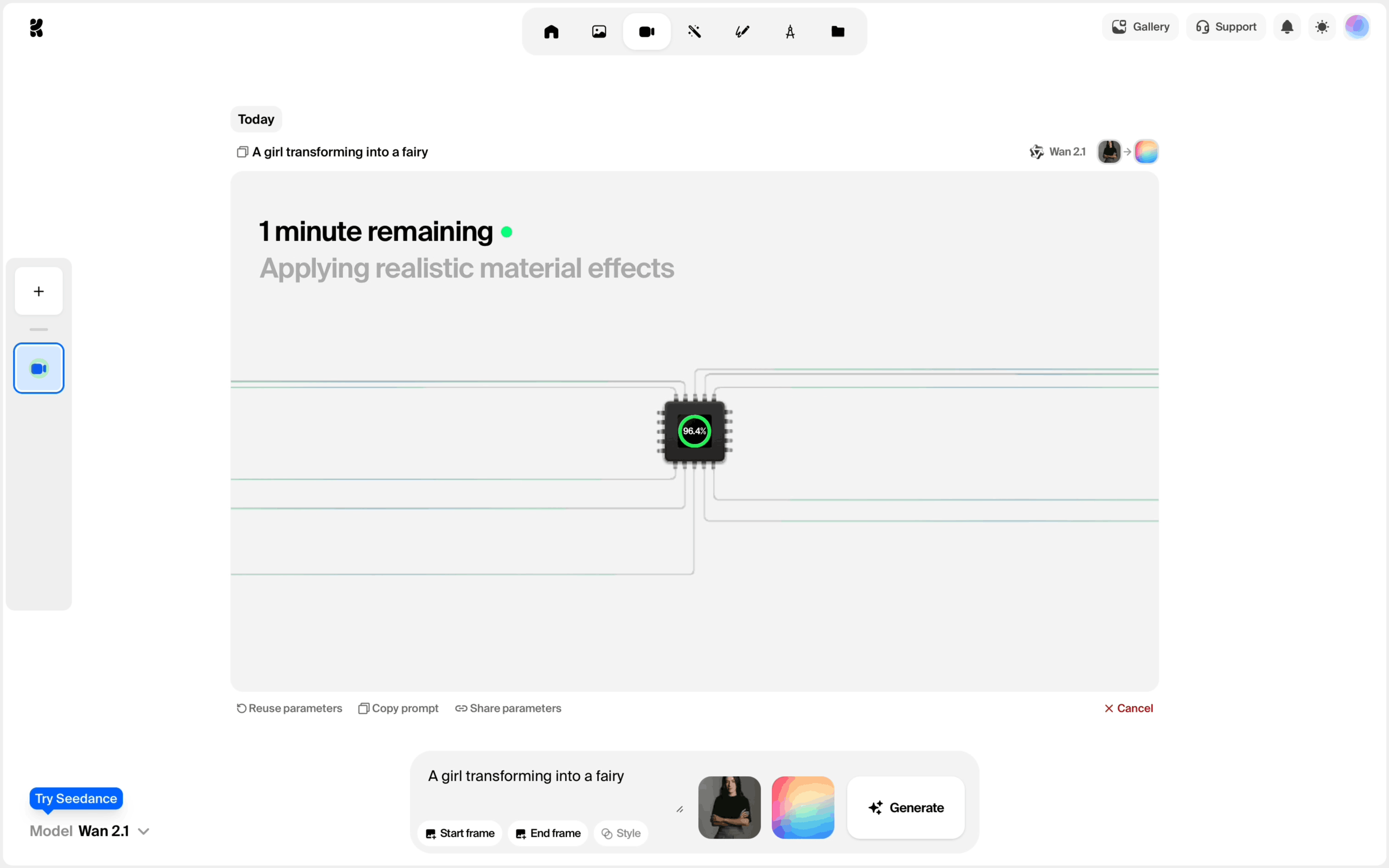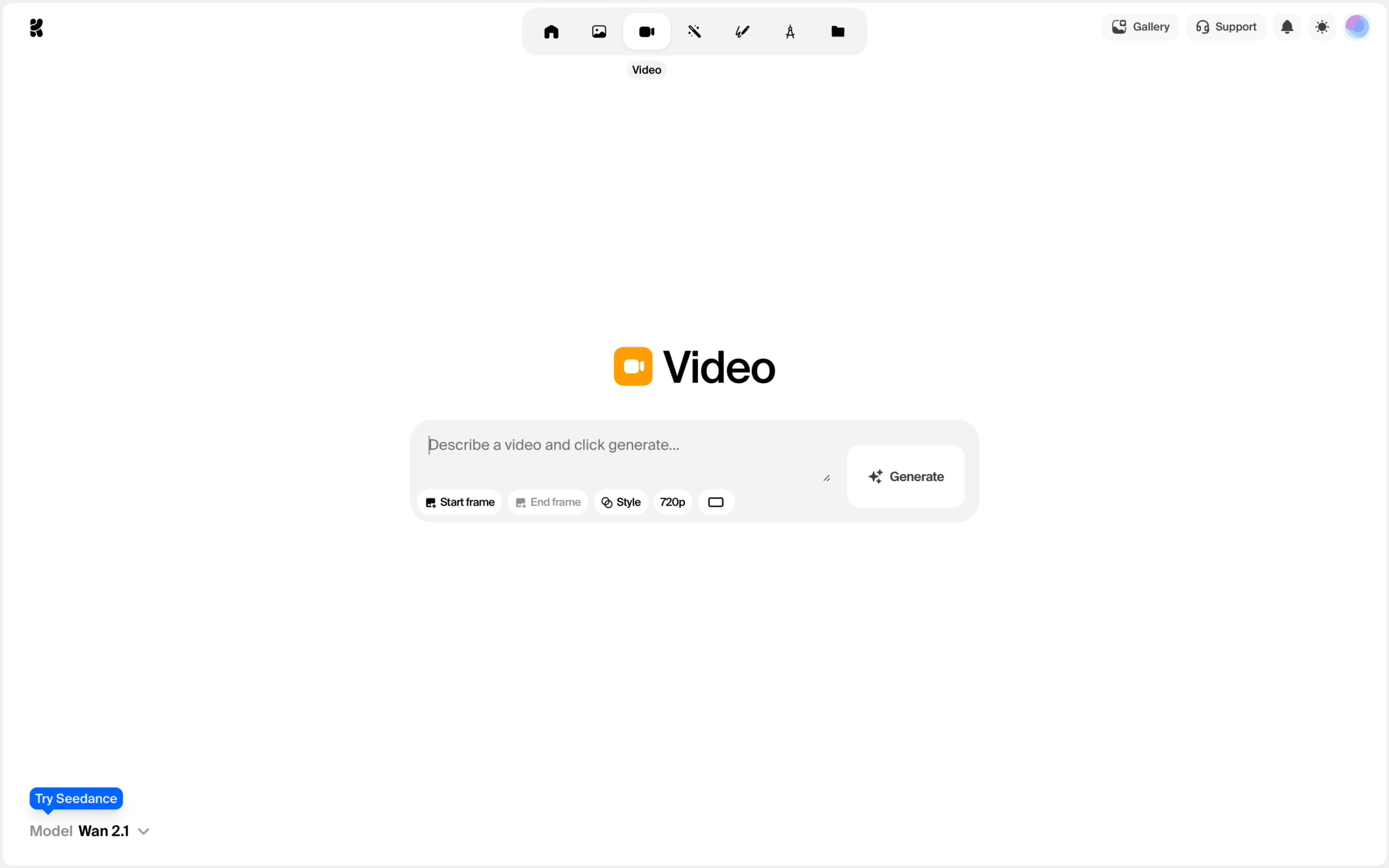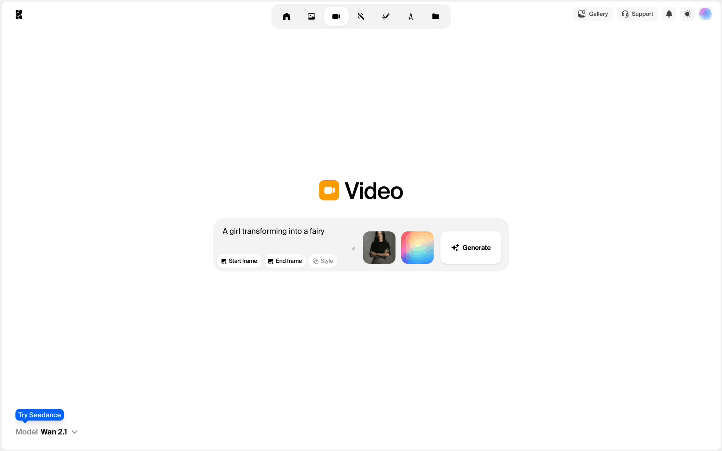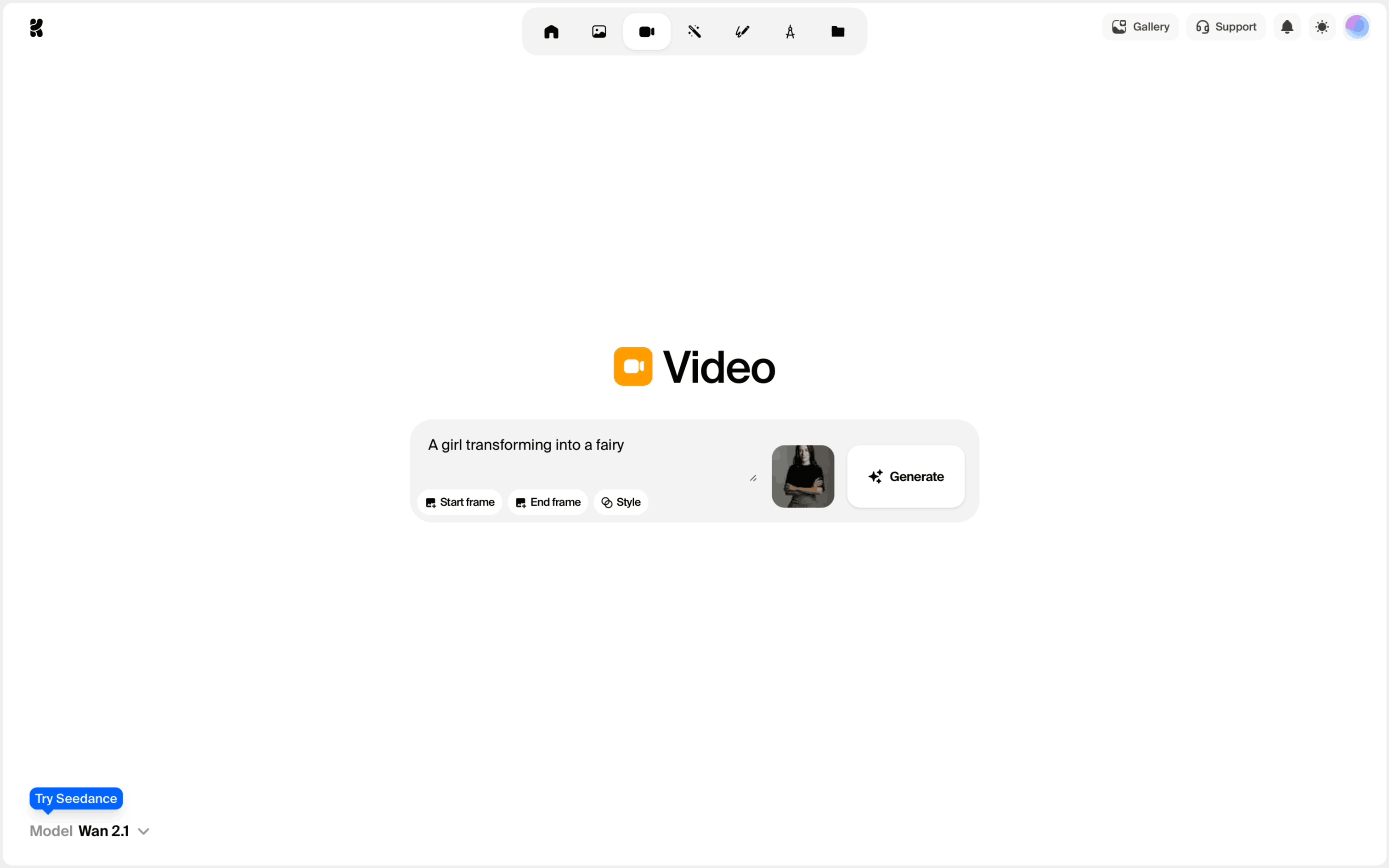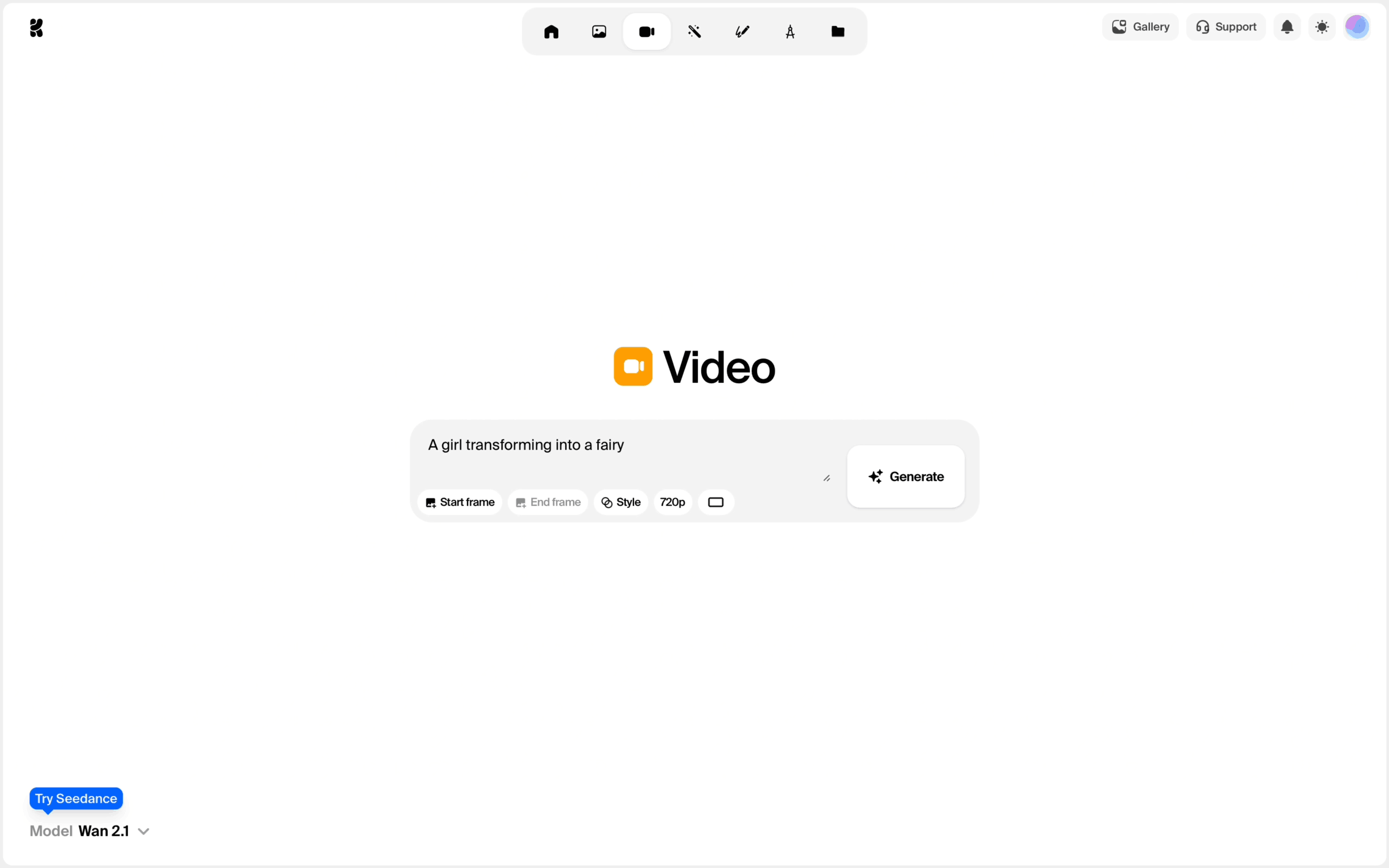 The user generates a video by providing a text prompt and then viewing the generated video. The flow showcases the video generation process from start to finish.